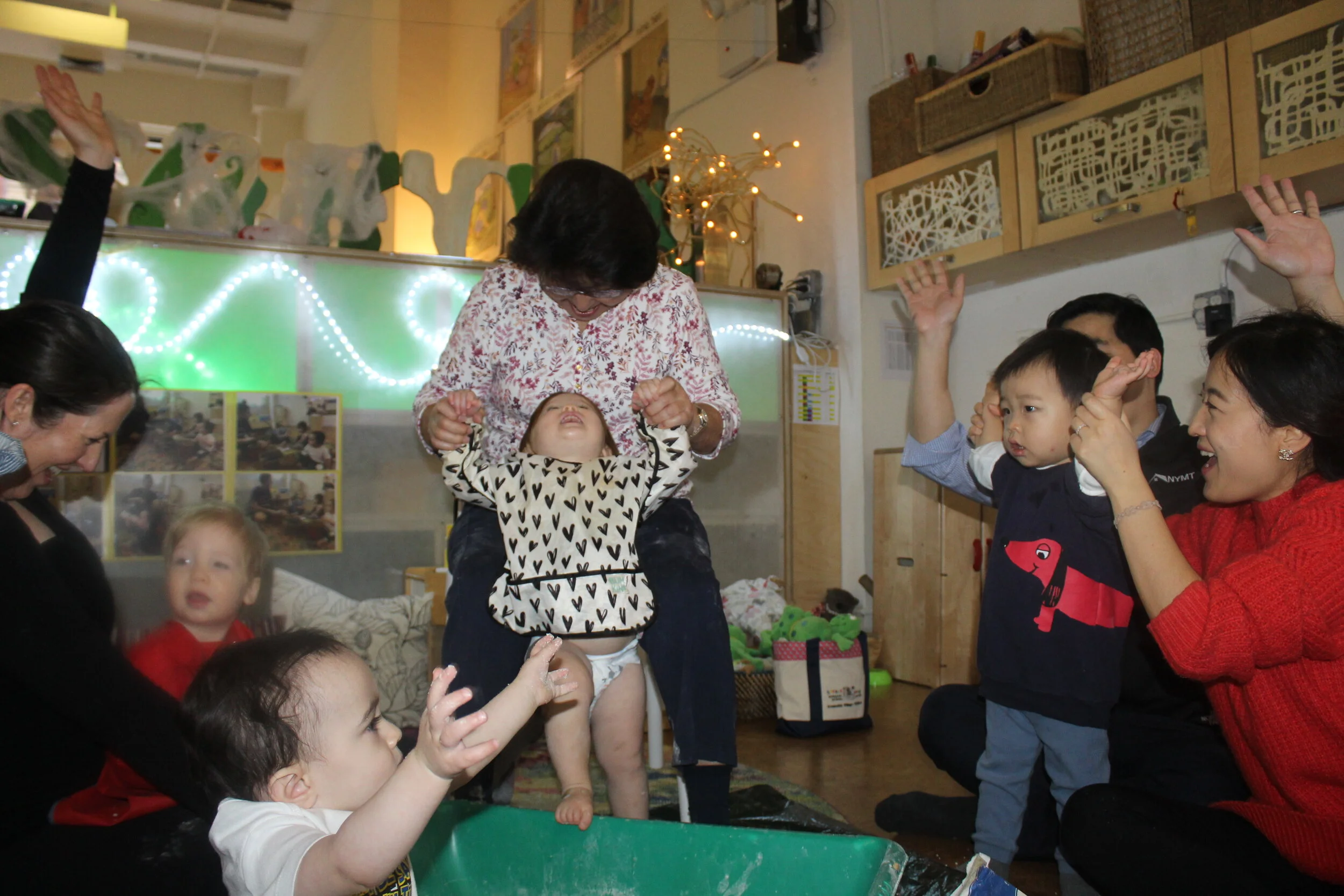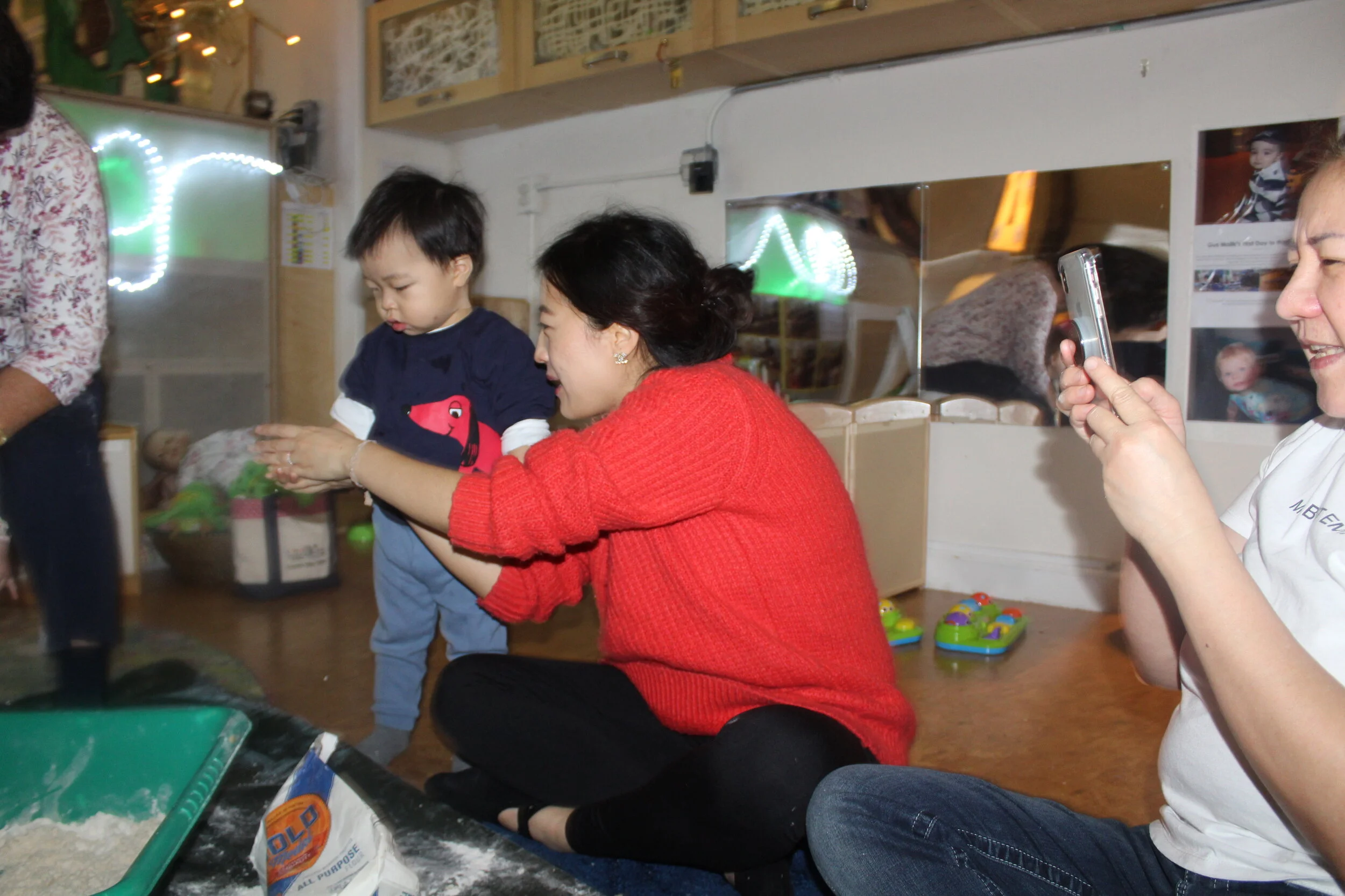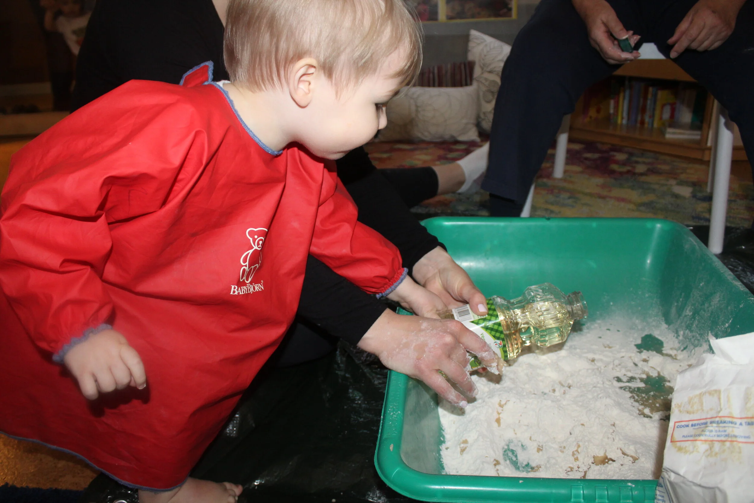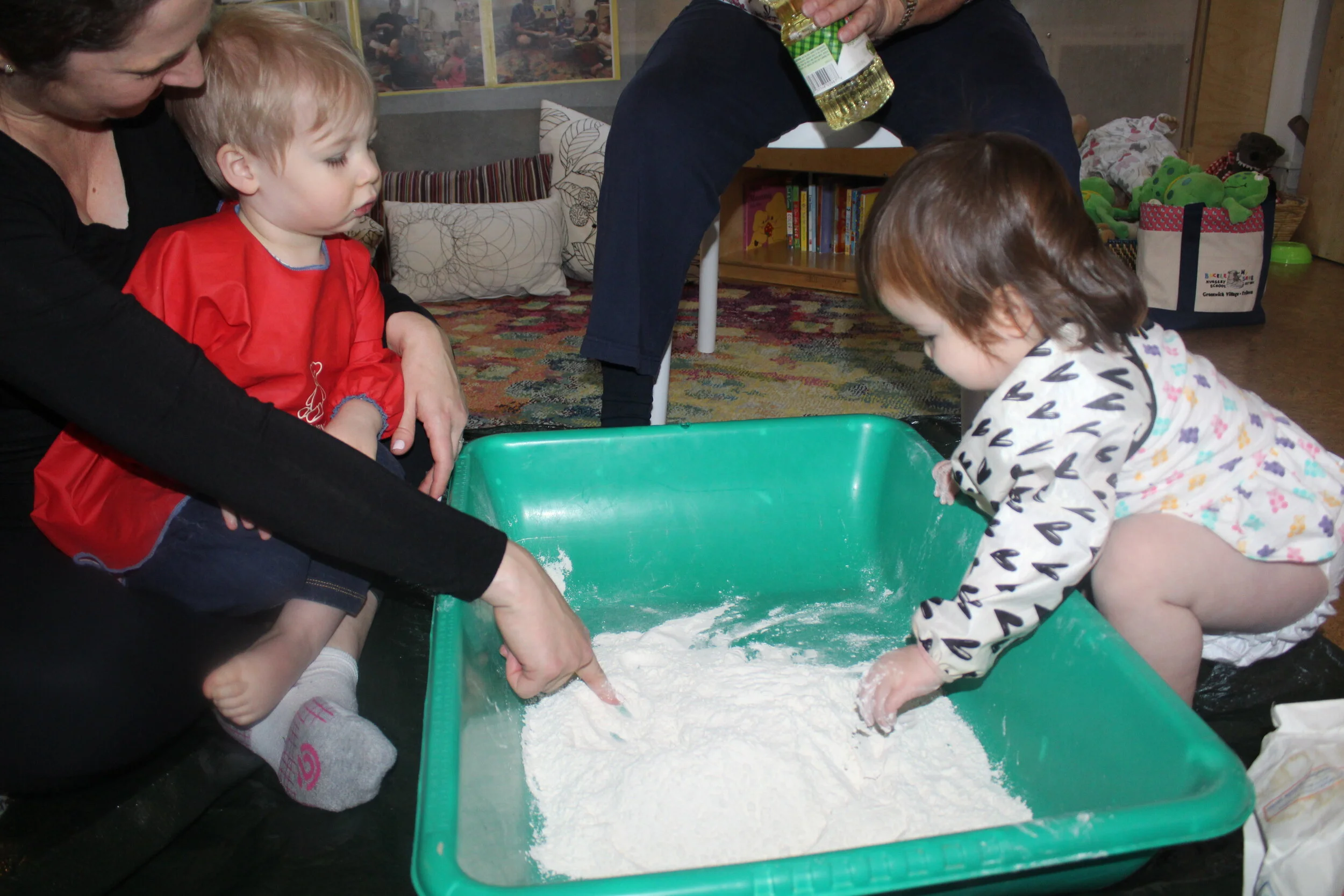 This week the 1A class has had its first curriculum celebration of the school year- focusing on sensory exploration. The 1A children and their parents were given the option of making and exploring a sensory material ( Paint, oobleck, cloud dough, water, or clay), and they all chose cloud dough.