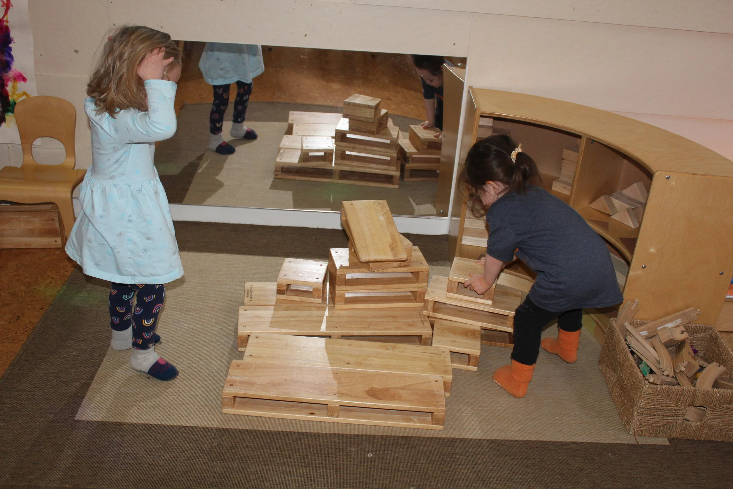 Their height is part of their identity. The children develop, grow taller, and they each grow differently. We began measuring their height using unit blocks in September. We will all count how many blocks are needed to determine his/her height. They are also building knowledge as they count and learn the shape that is being used to identify their stature. We are measuring their height in January and their last measurement will be in May.