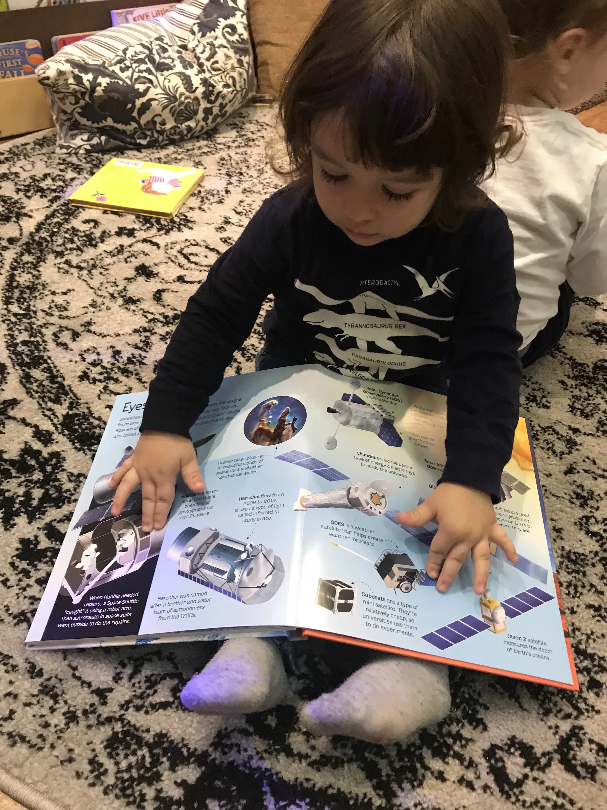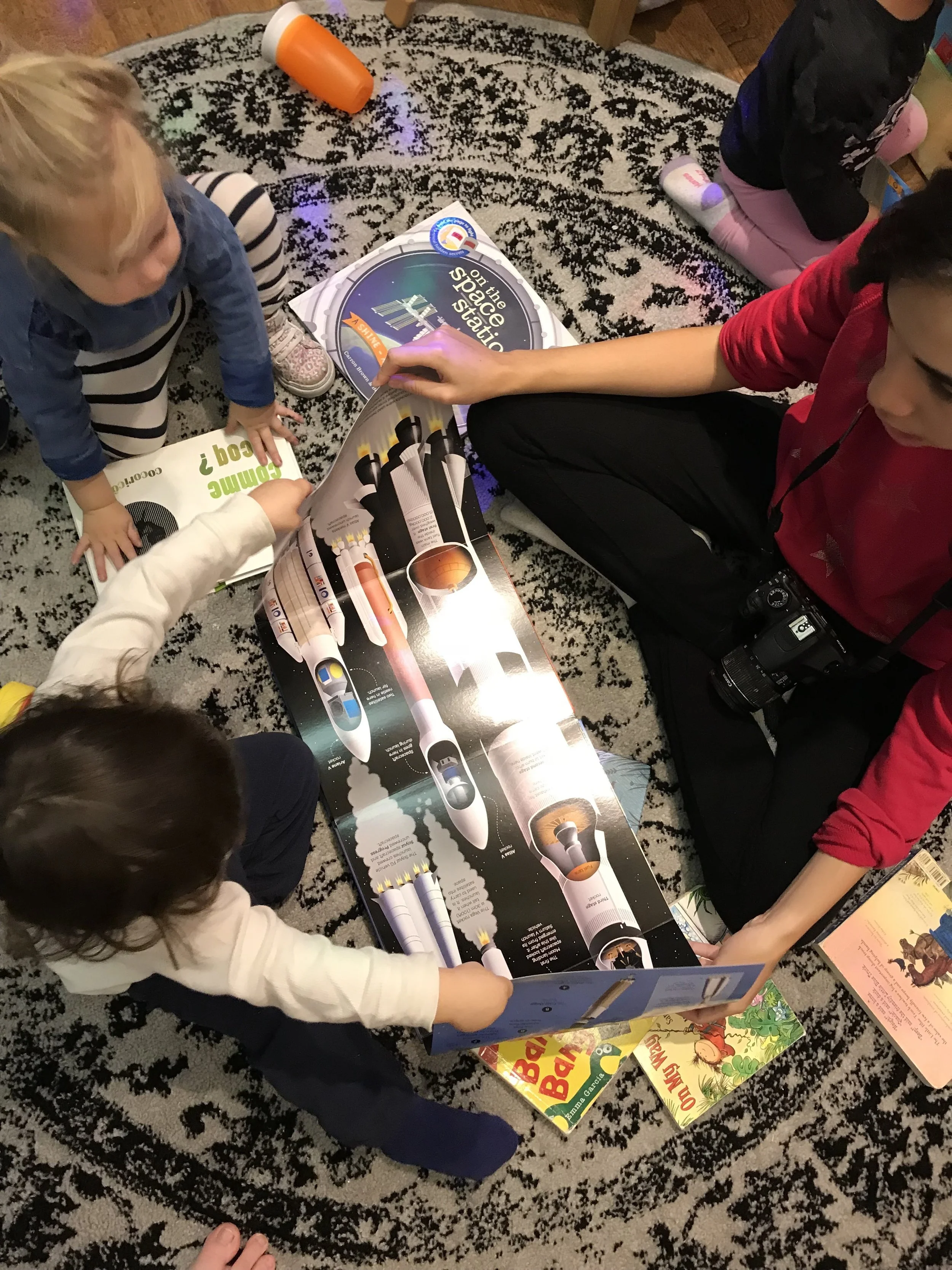 A few new stories in our classroom have sparked even more conversation about space and the vehicles needed to get there. One book has little flaps to lift up and discover how astronauts can function while they are traveling through space. Another has really amazing images of real rocket ships, robotic arms, satellites, and everything else you can think of relating to space travel.