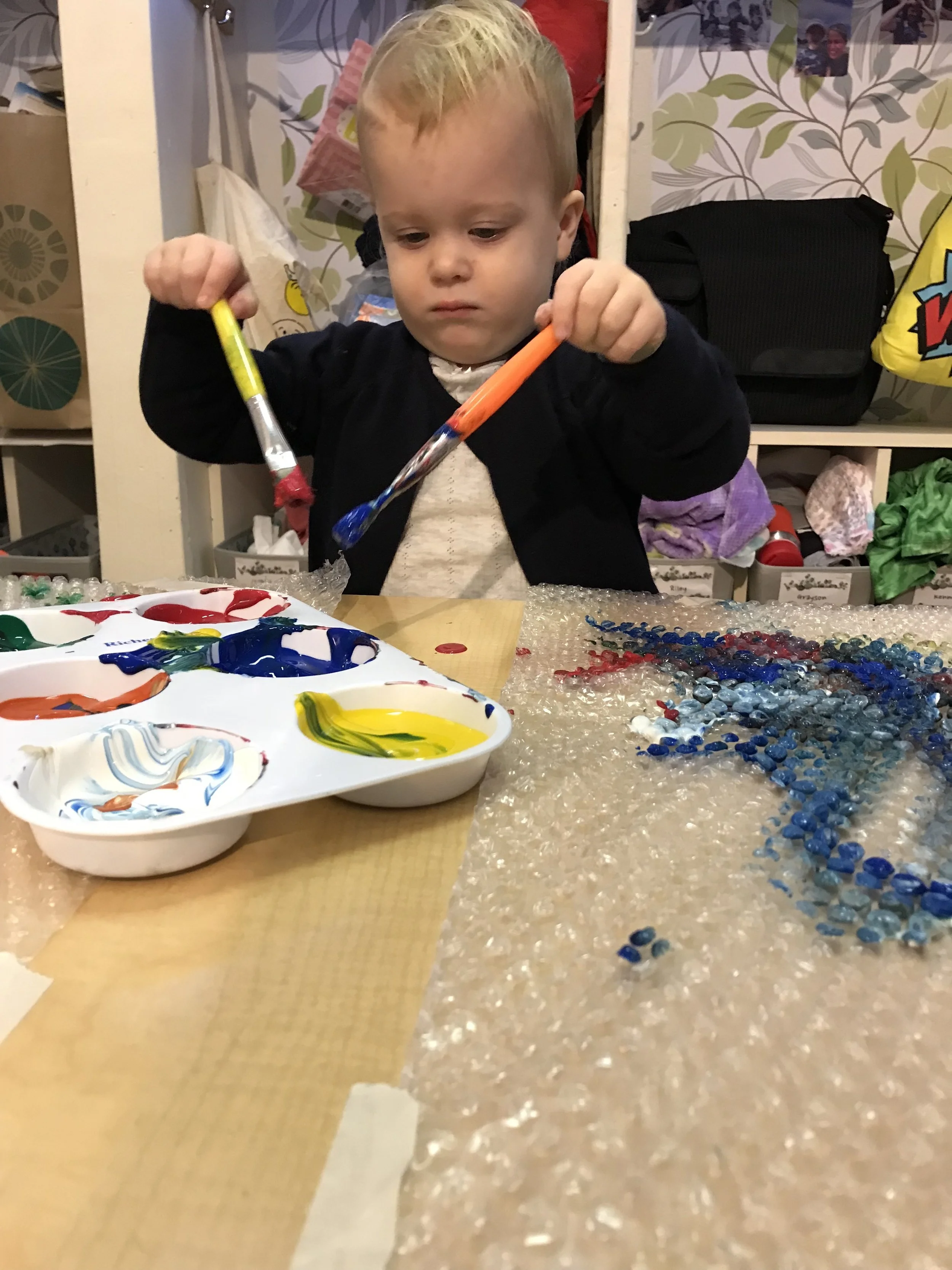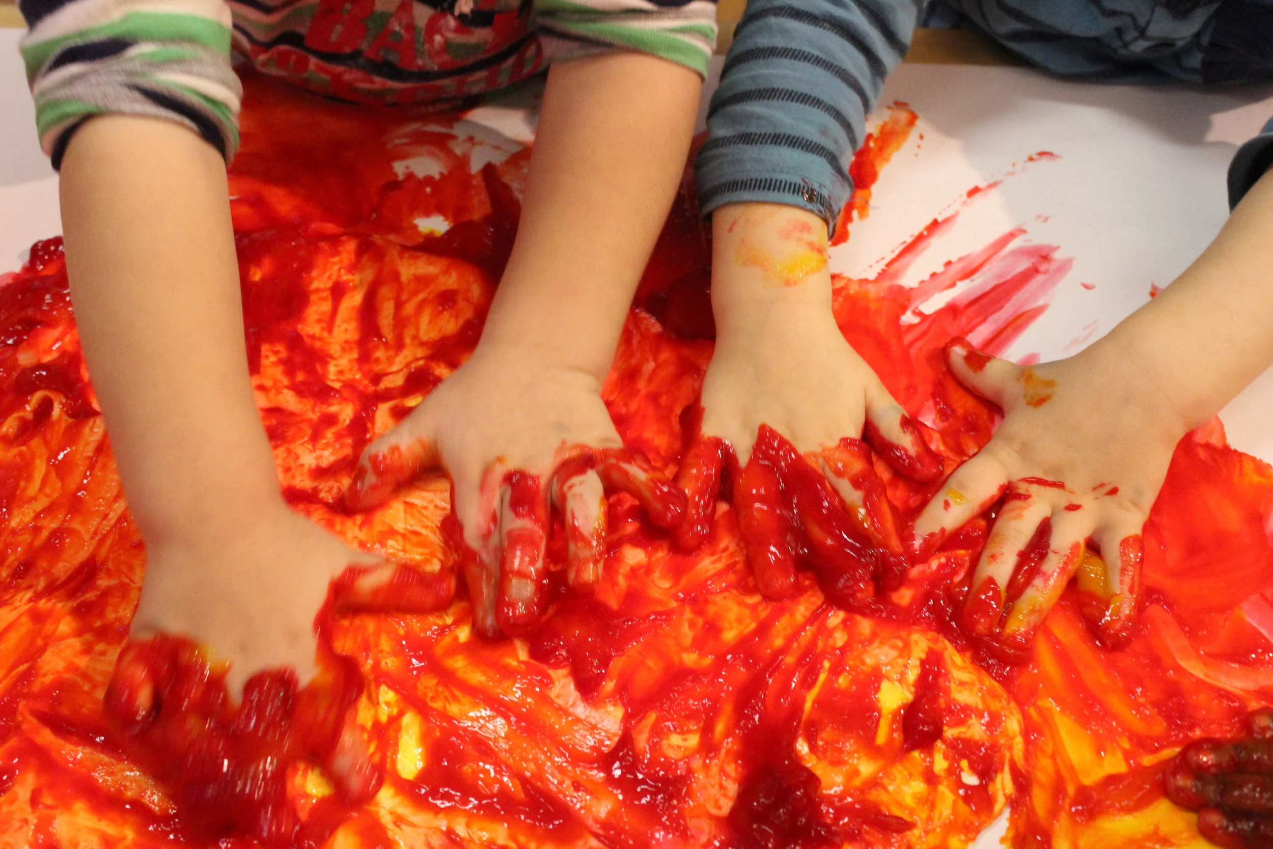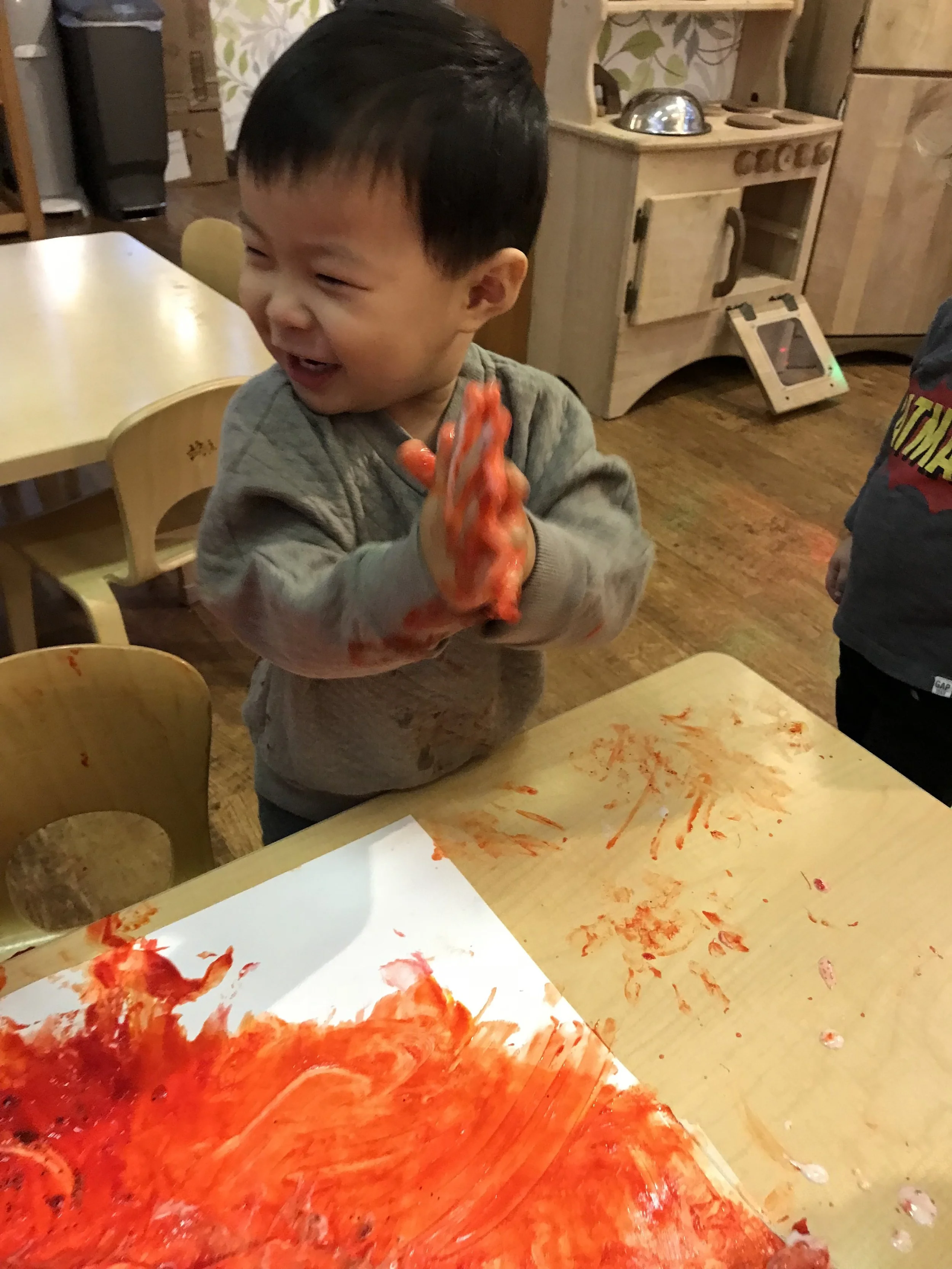 One recurrent theme that pops up while painting is that it creates emotions - a lot of children are very happy while they are painting, and a few are horrified if their hands or bodies get dirty in any way. Some children are focused and quiet, while others are fast and loud and laughing. We have made a point to follow the expressions on the children’s faces to help us capture more about the emotional connection we have to paint.