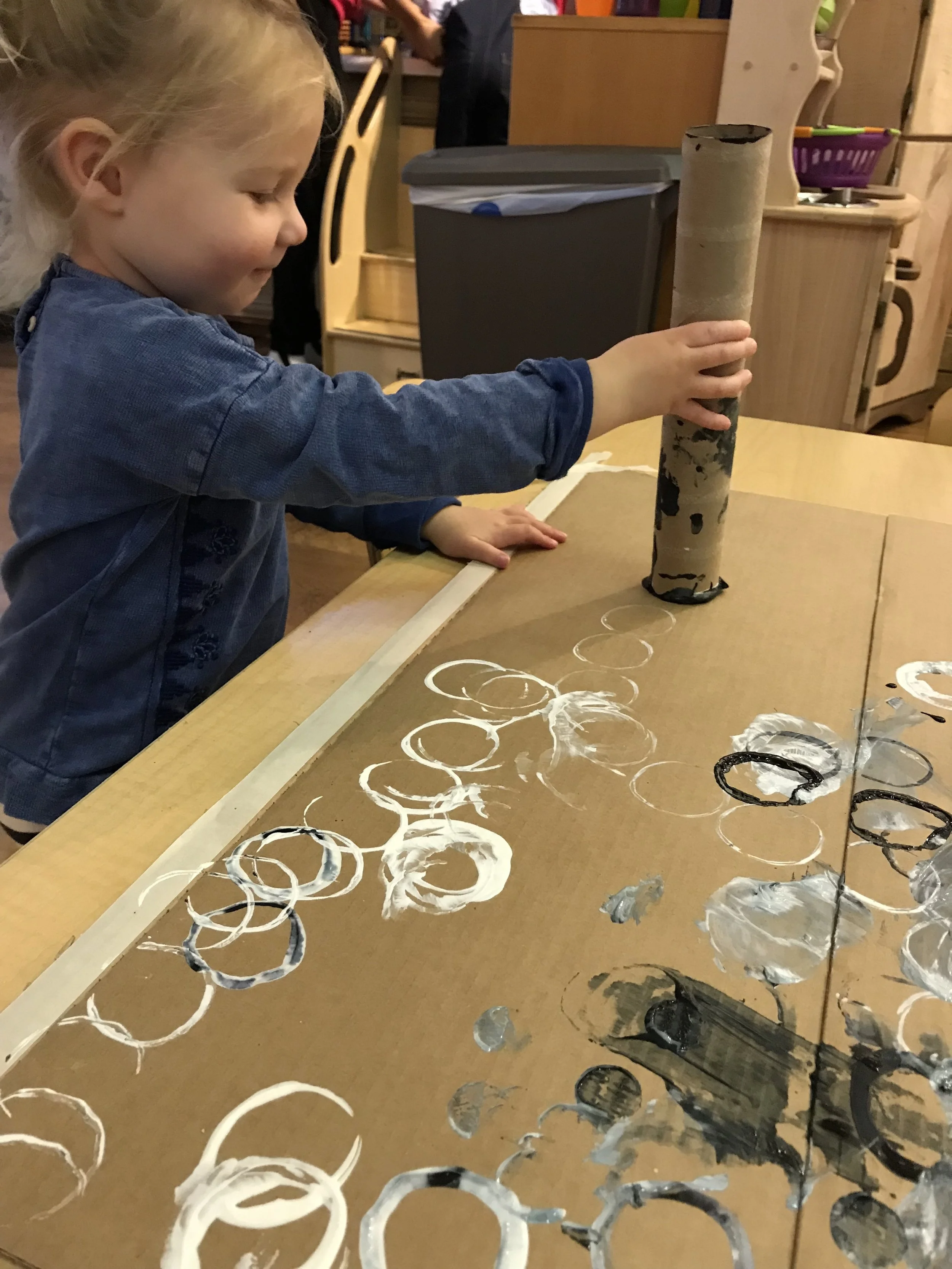 The past two weeks we have been getting deeper and deeper into our project work. Our costumes are finished, we’ve done a lot of fall and Halloween related activities, but now we’re also working on expanding our ideas about rocket ships and outer space, along with many painting provocations to help us get started as we build our own definition for paint.