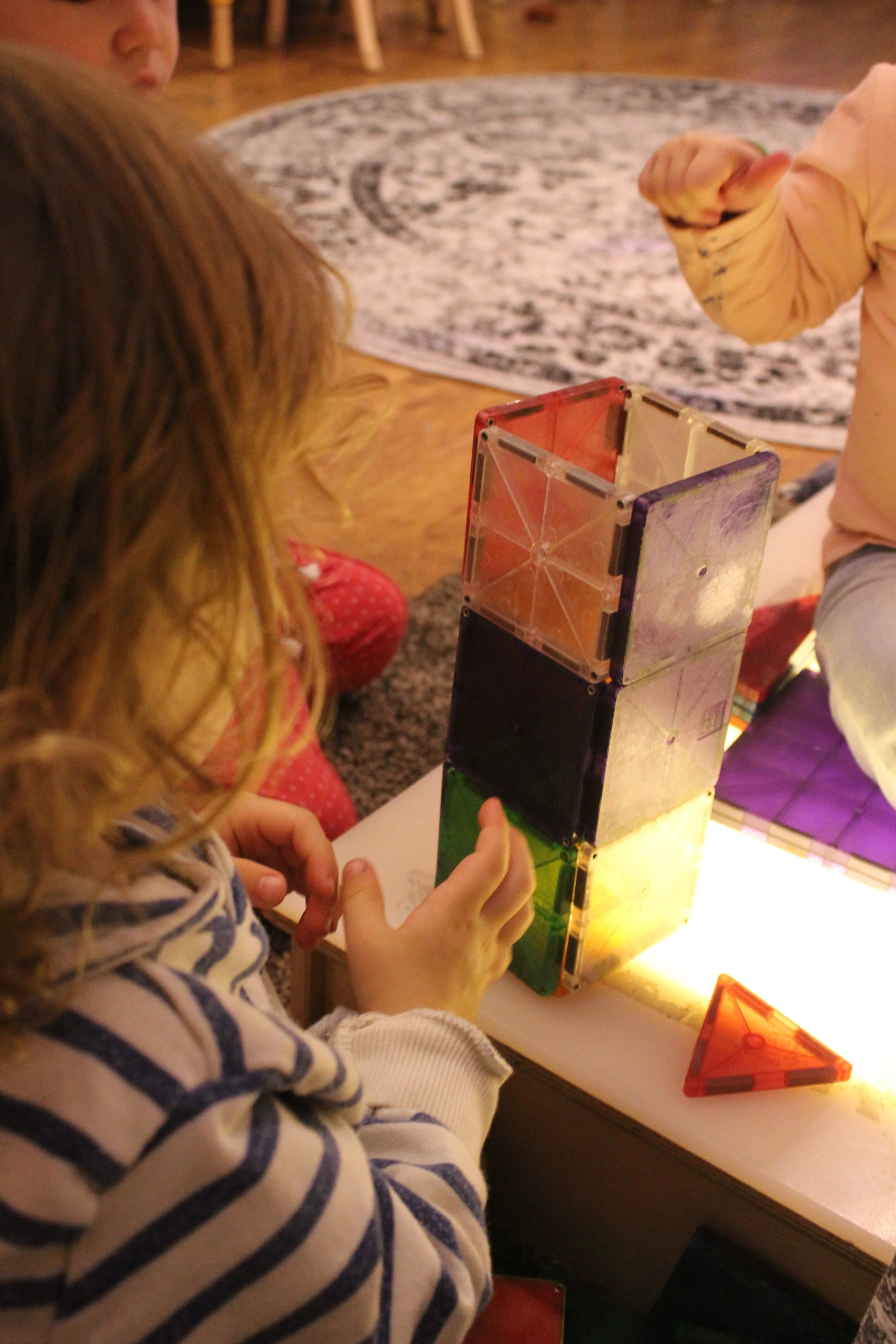 Building continues to be a very big interest in the class. The bristle blocks were especially interesting this week, and became a whole fleet of different boats and submarines! We also used magna-tiles to create more rocket ships!
