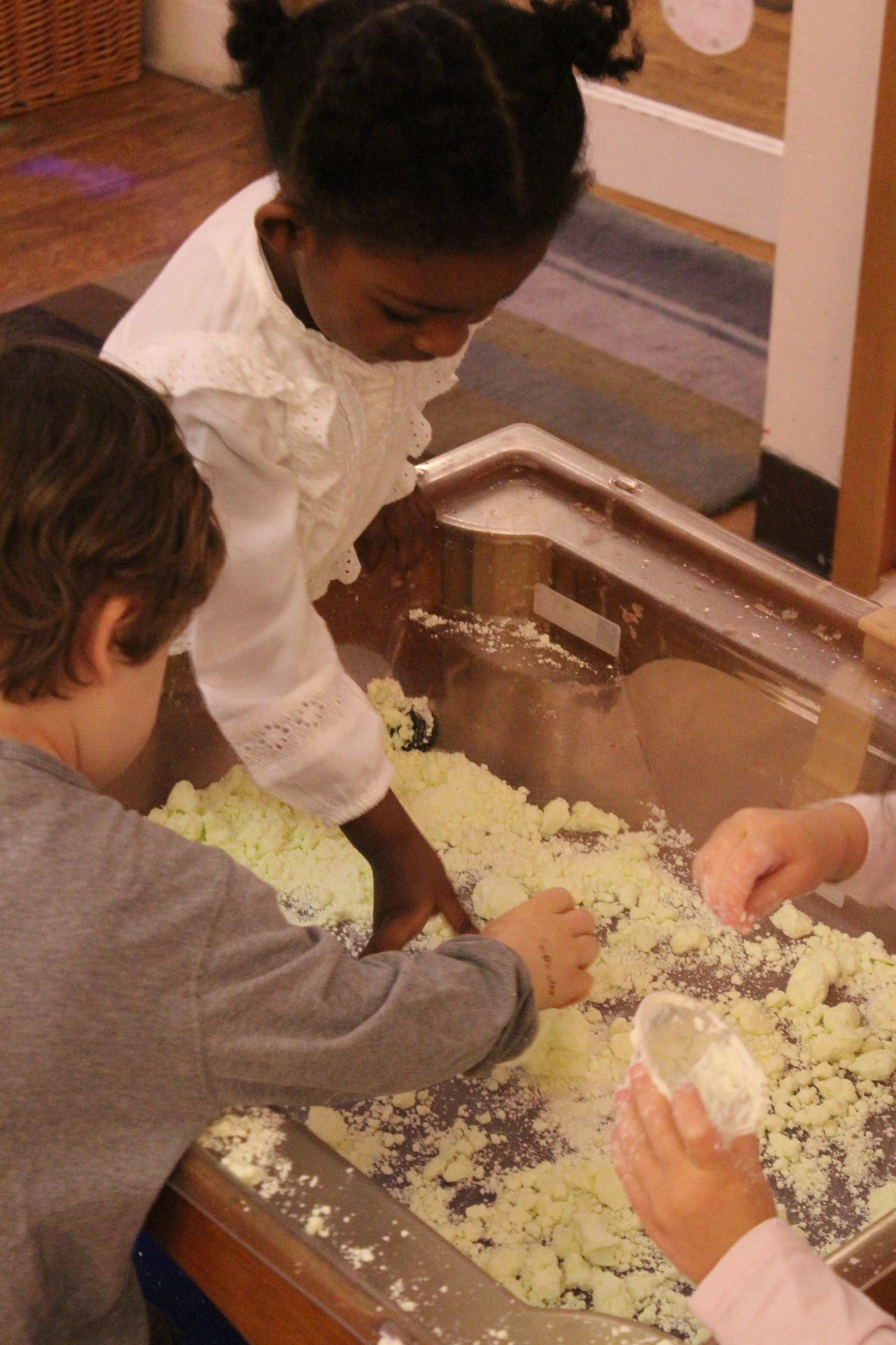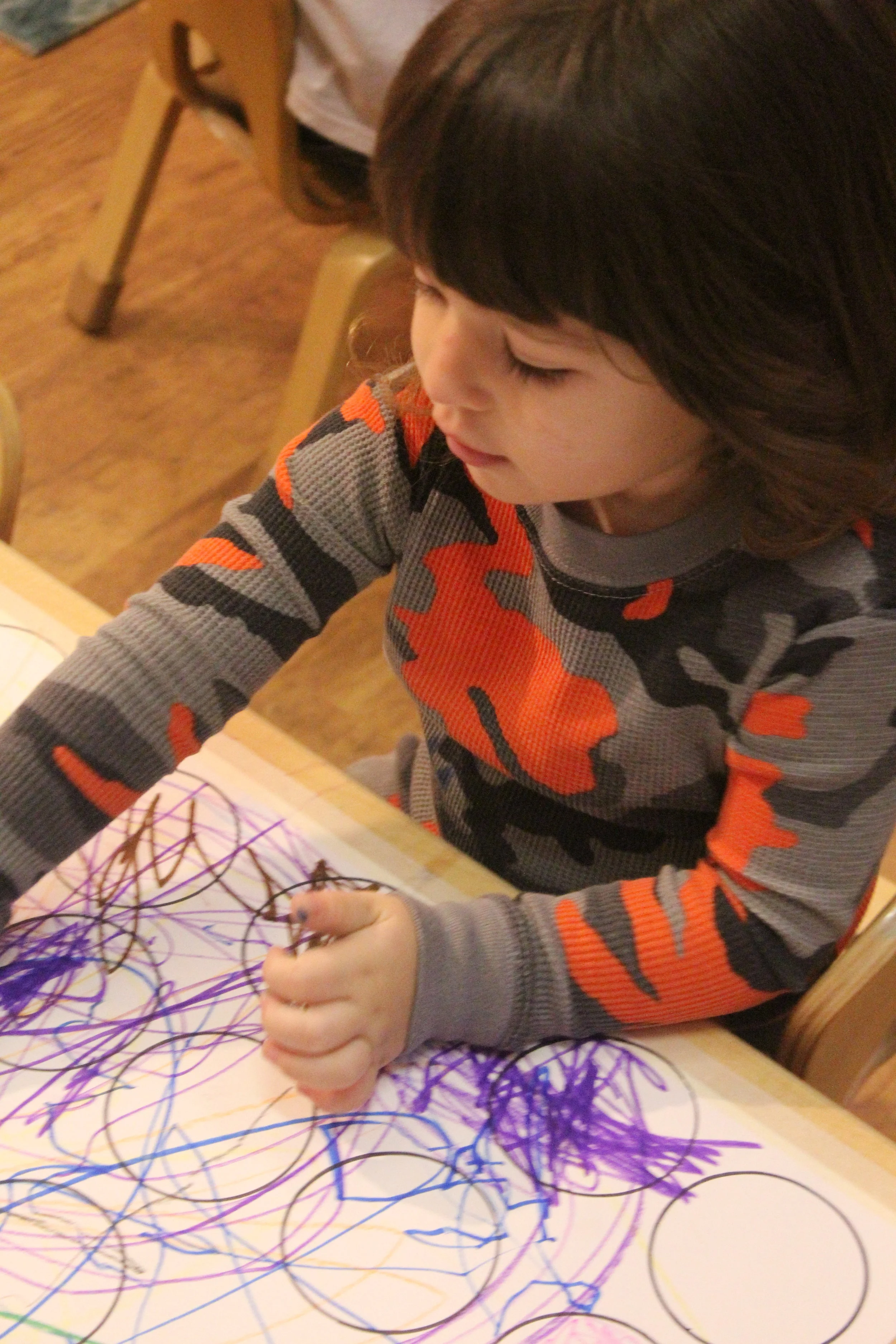 The past two weeks have been very exciting. We are seeing so much growth and language development from the children. We are moving past some of our behavioral issues, and seeing so many moments of cooperative play and purposeful sharing between the children. As a result, we have been adding quite a few pom-poms to our Kindness jar. Everyone is eagerly awaiting the moment when the jar is full and we can have a special party! Now we are not only adding pom-poms for group cooperation, but also for individual kindness moments. For example, Sloane decided that even though she hadn’t used any magna-tiles she would clean all of them up! And Finn handed out collage materials to each of his friends as they sat down to work on their cork circles the other day. We are so proud of everyone!