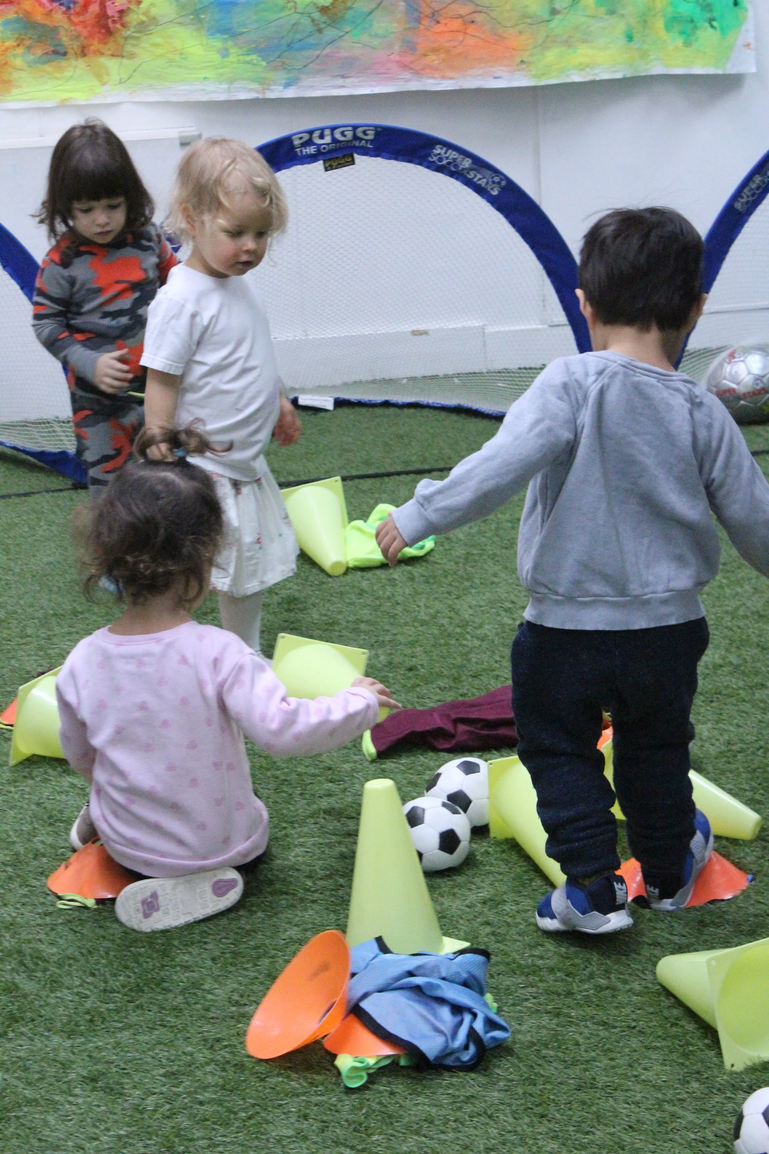 Coach Jojo had us building snowmen with the different soccer materials, and we practiced a lot of kicking!