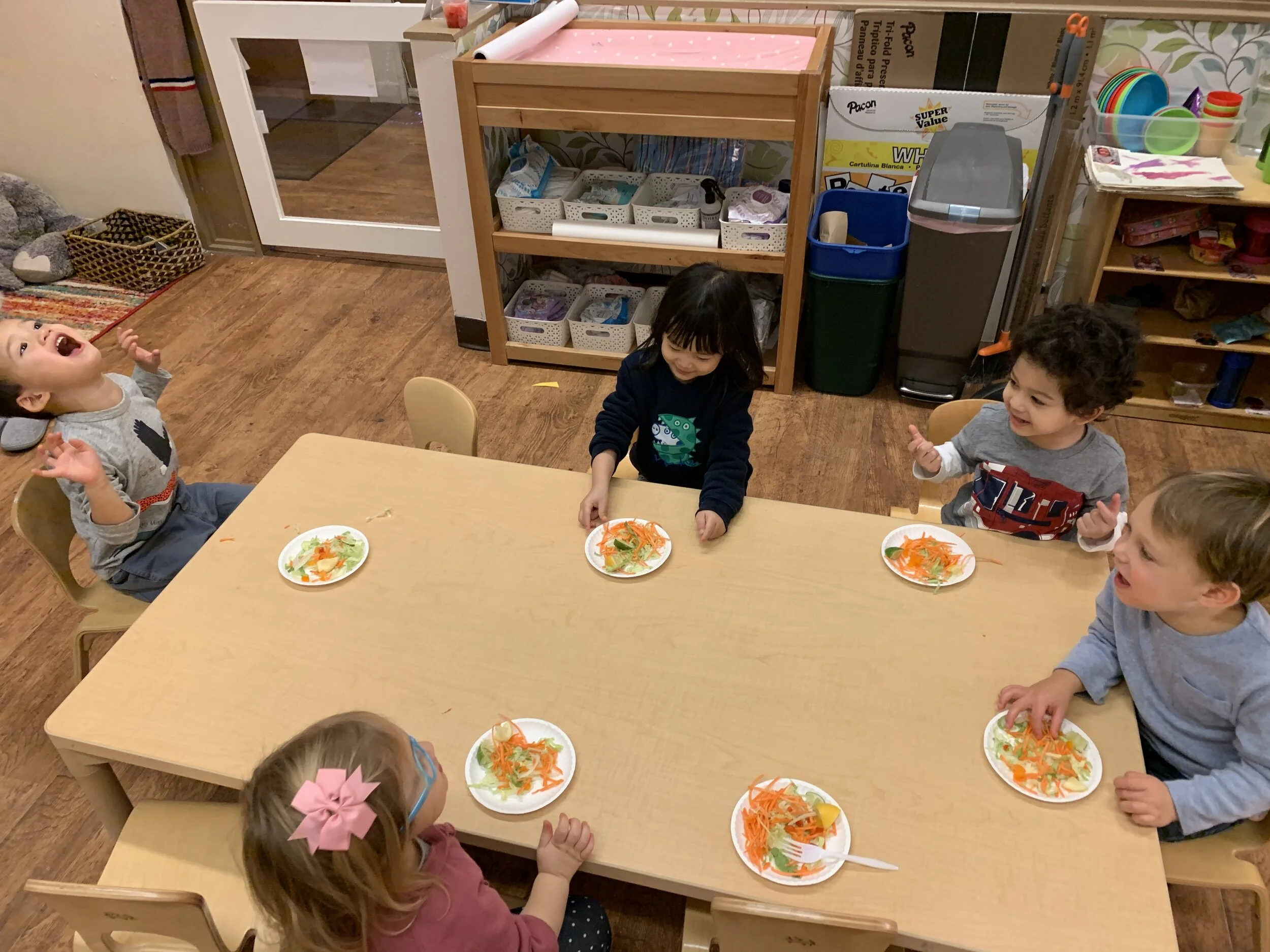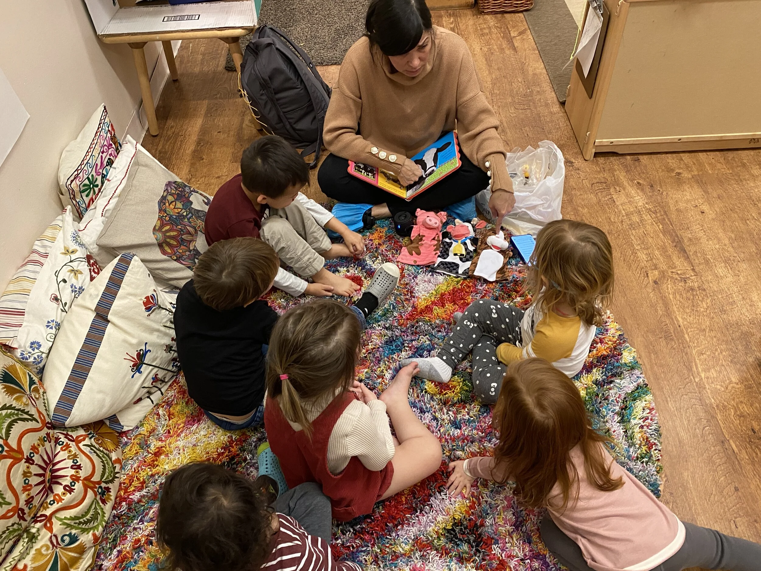 Spanish - we sang “Cinco Patitos” (Five Little Ducks) and “Viejo Macdonald” (Old Macdonald). We practiced counting and went over farm animals in Spanish.