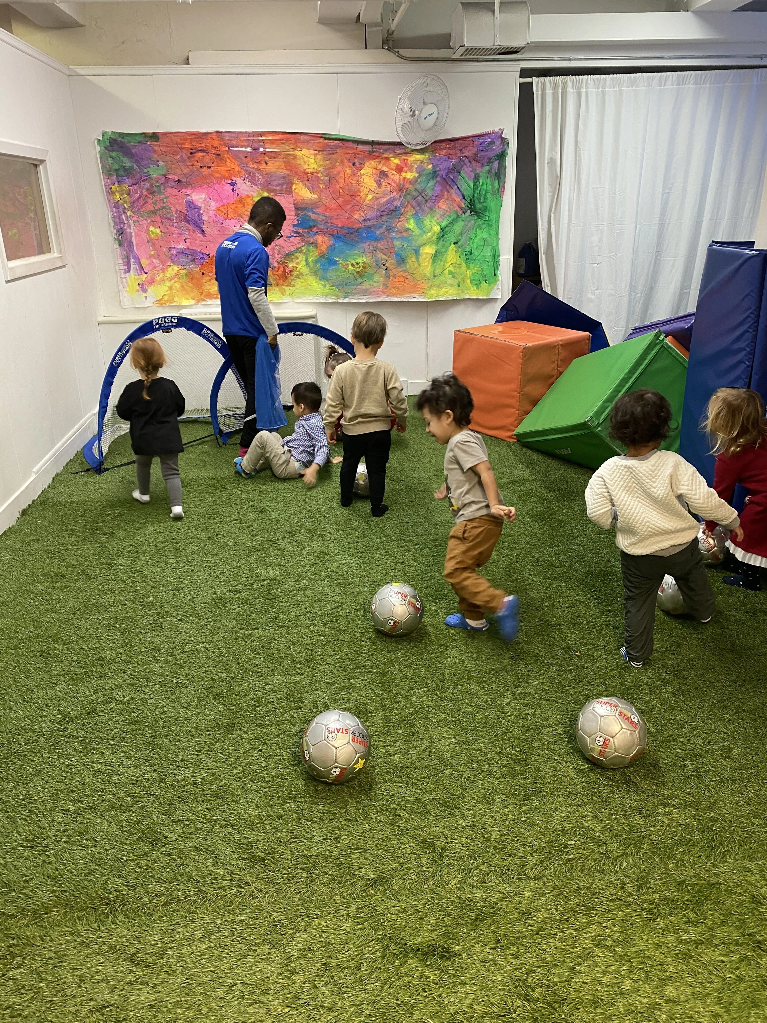 Soccer - we played an “ice cream cone” game where the children had to do little kicks to get the traffic cone in the saucer cone.