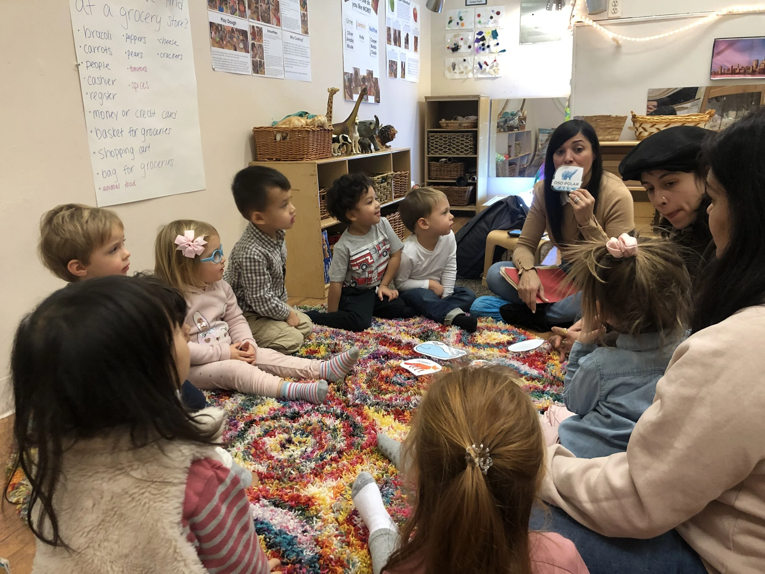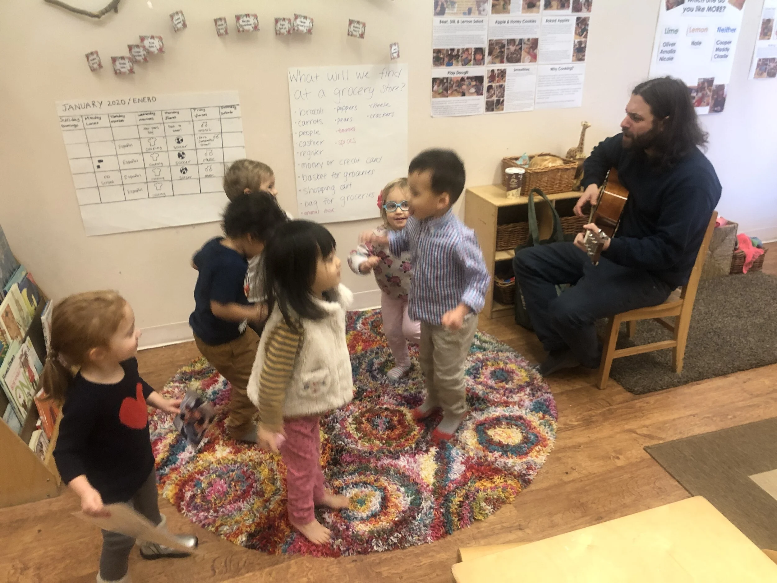 The children love to engage in imaginative play in the kitchen: finding ingredients, cooking, setting the table, and eating meals together. In order to extend this play and further our cooking curriculum, we decided to create a classroom grocery store. In order to figure out what we needed, we took a trip to the store to do research. We decided on all the materials and items we would need, built our store, and began to play! The children took on the different roles of the grocery store: customers and cashiers. We talked about our real life experience in grocery stores, such as choosing and paying for items, waiting in line when we check out, counting money, and being kind to other customers and workers. The children practiced turn taking, role playing, patience, counting, and a little bit of Spanish!