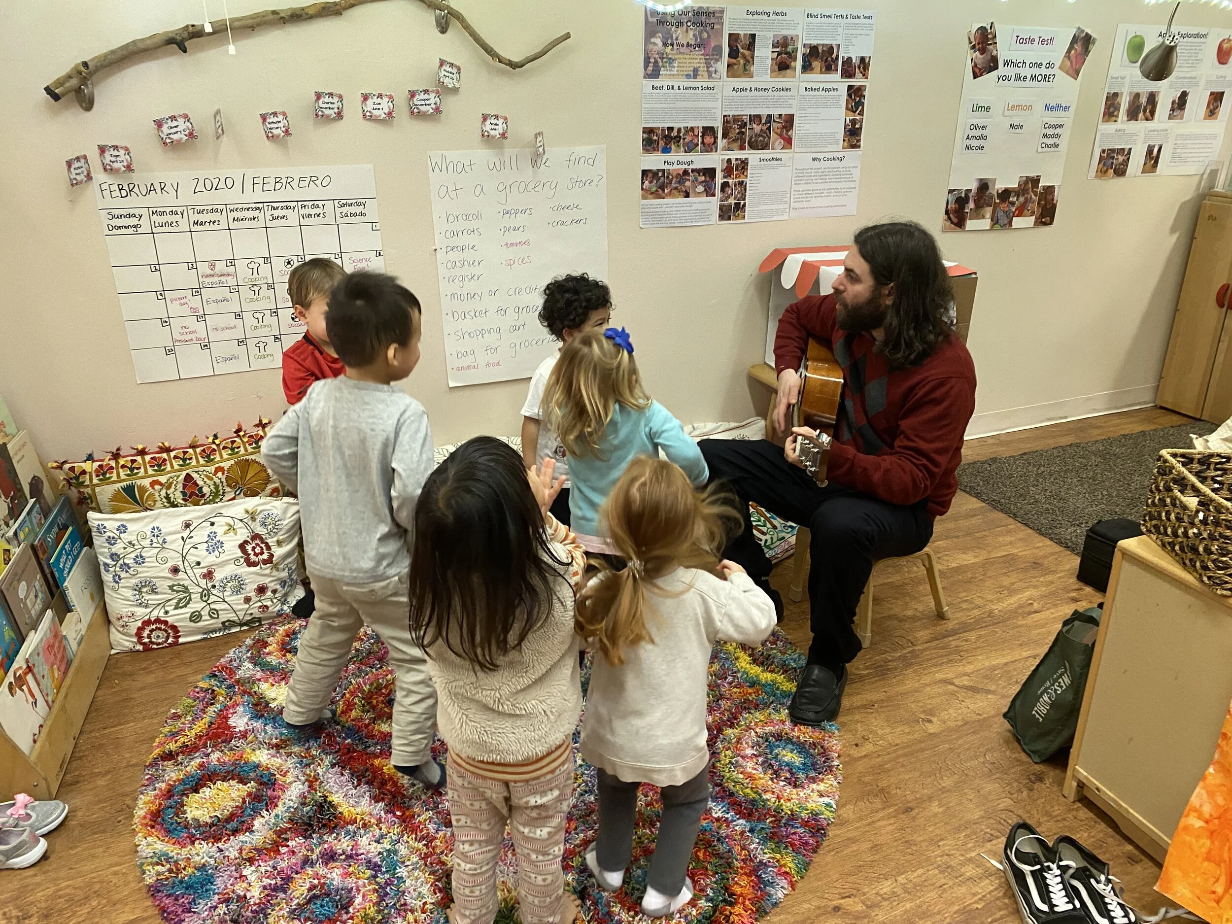 On Monday, we took a trip to the park! On the way there, we named things we saw in Spanish (carro, blanco, amarillo). At the park, the children had so much fun running around, going on the slide, and climbing the jungle gym. We’re excited for the weather to warm up soon so we can continue our park adventures!