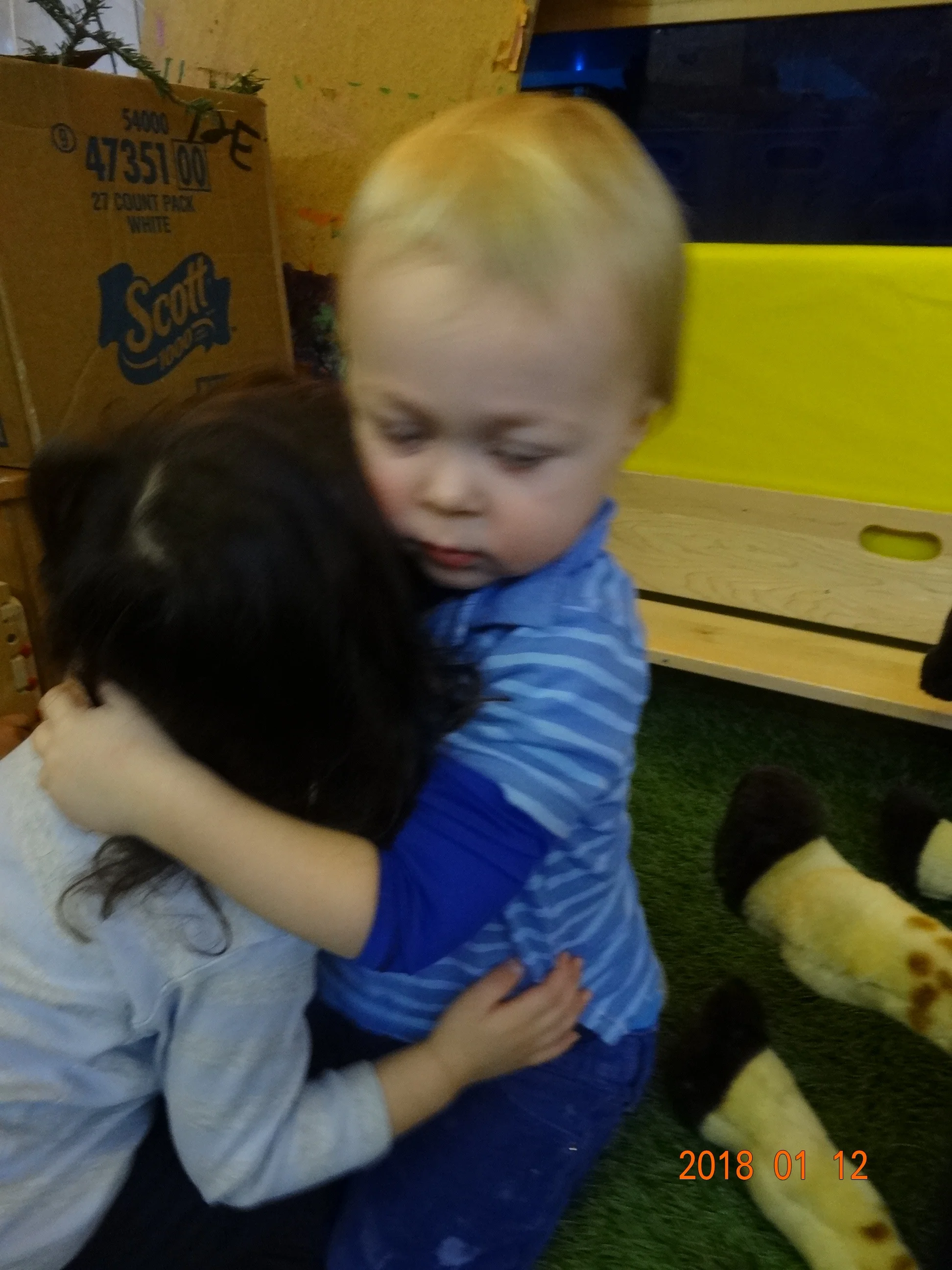 As a group this week, we made shaving cream art which was so cool. "It looks like a rainbow!" said Jude and Devin P. said "It smells good can I eat it?" We also painted the box that we use to play store and sometimes use as a cave to sleep in. It is so fun being creative in our art and play, and it's even better to share our imaginative expression with friends. Let's see where it takes us in the future!