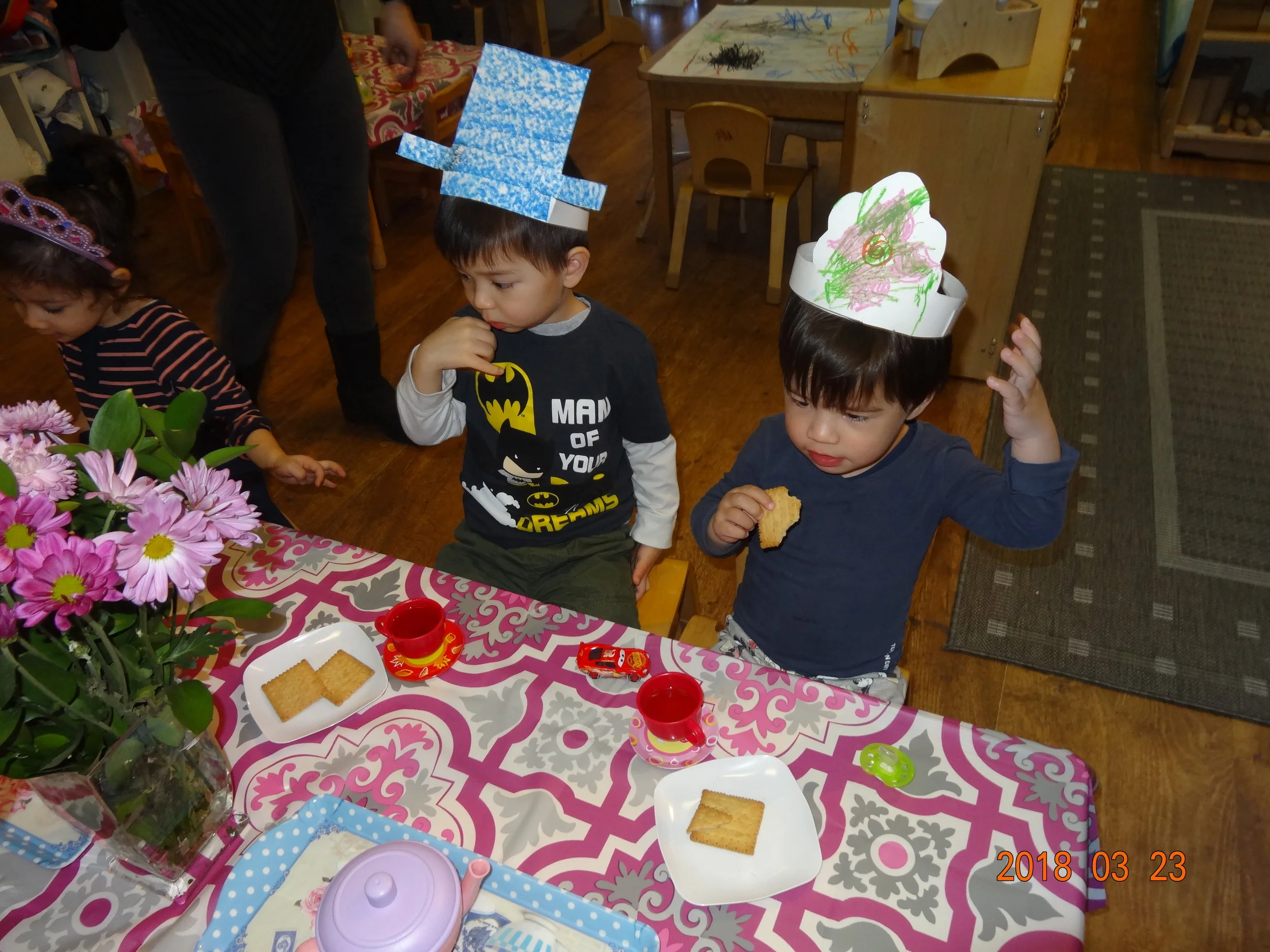 This week was special for a few reasons. Despite the snow day, spring is upon us and it is a big milestone for our older two's. In the big picture, we celebrated Literacy Week with story reenactment, learning the difference between stories and poems, engaging in critical thinking and discussion about our favorite books and characters, and a very sophisticated tea party. In the small picture, our friends are continually developing empathy and complexity in their personalities, interpersonal relationships, and preferences.