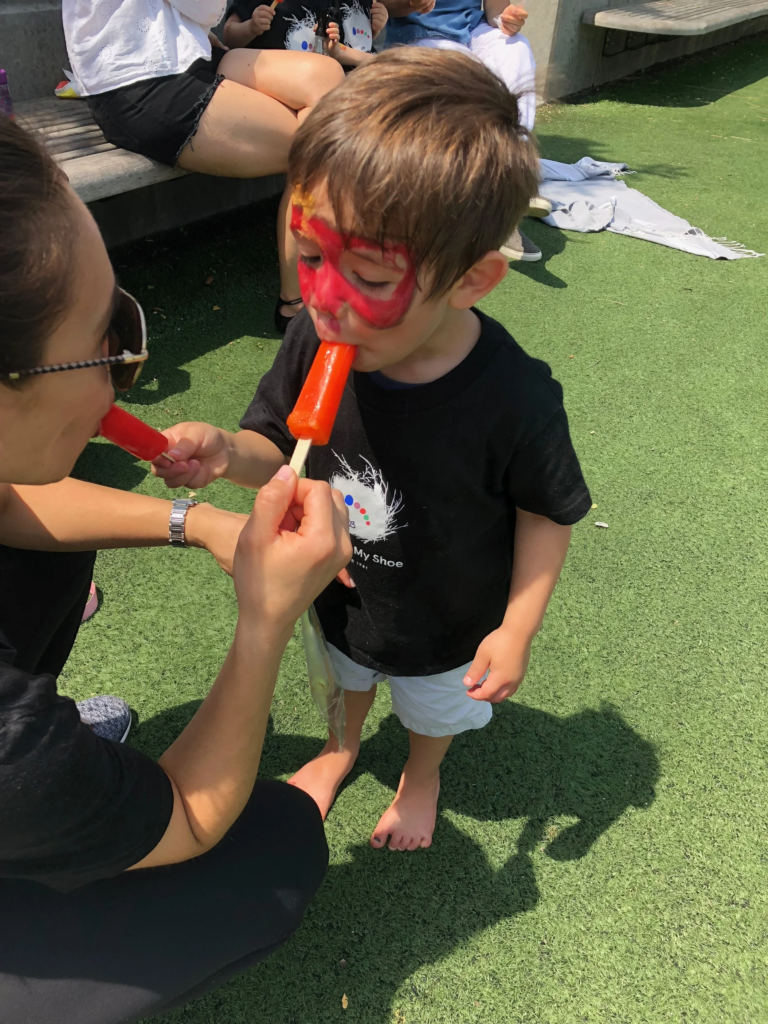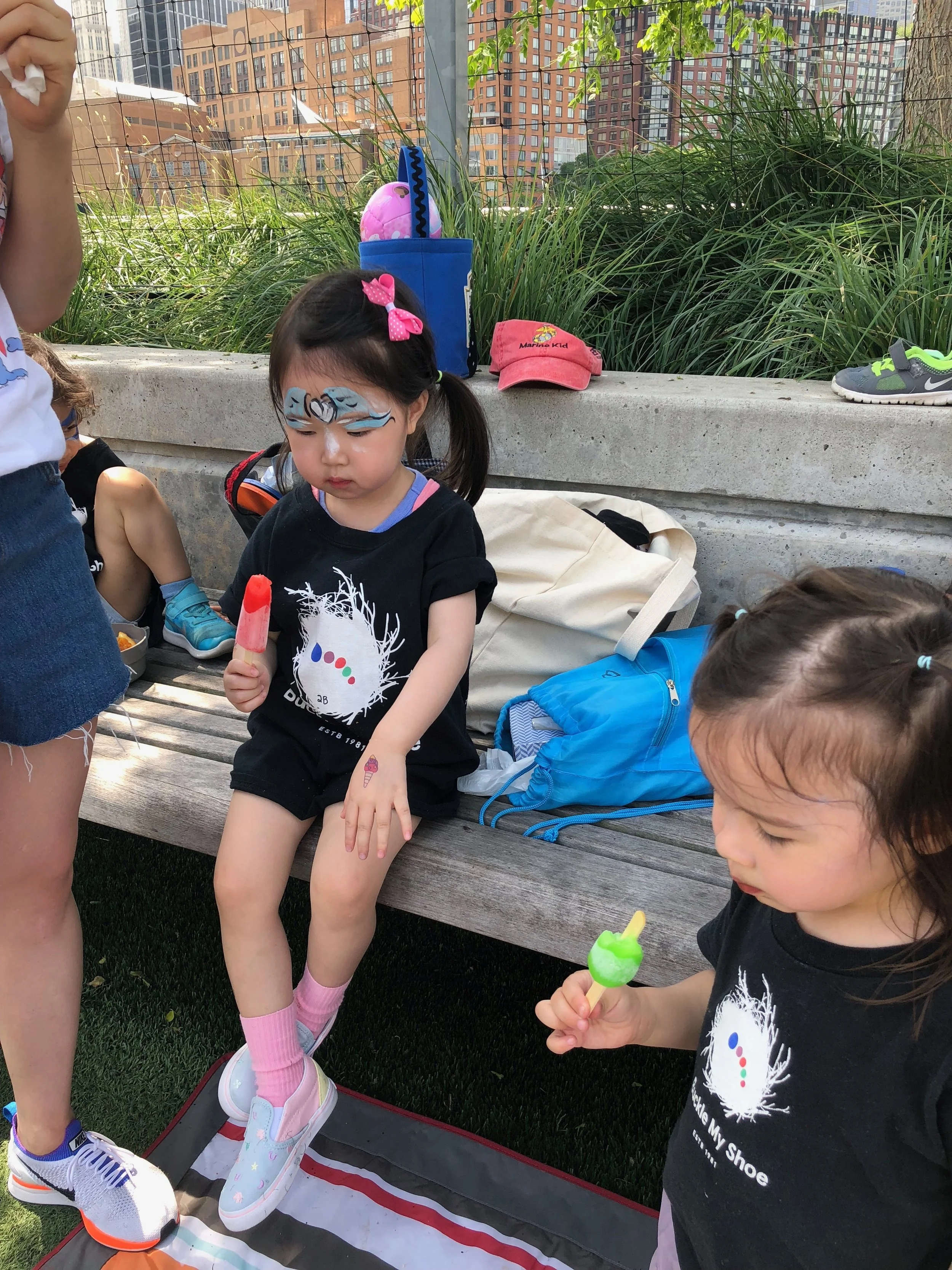 We had so much fun at field day today! We loved all of the activities, but it looks like parachute and face painting were highlights. Any time with 2B friends is a good time. Having mommies and daddies there too was such a plus! And we had a sweet ending too - popsicles!