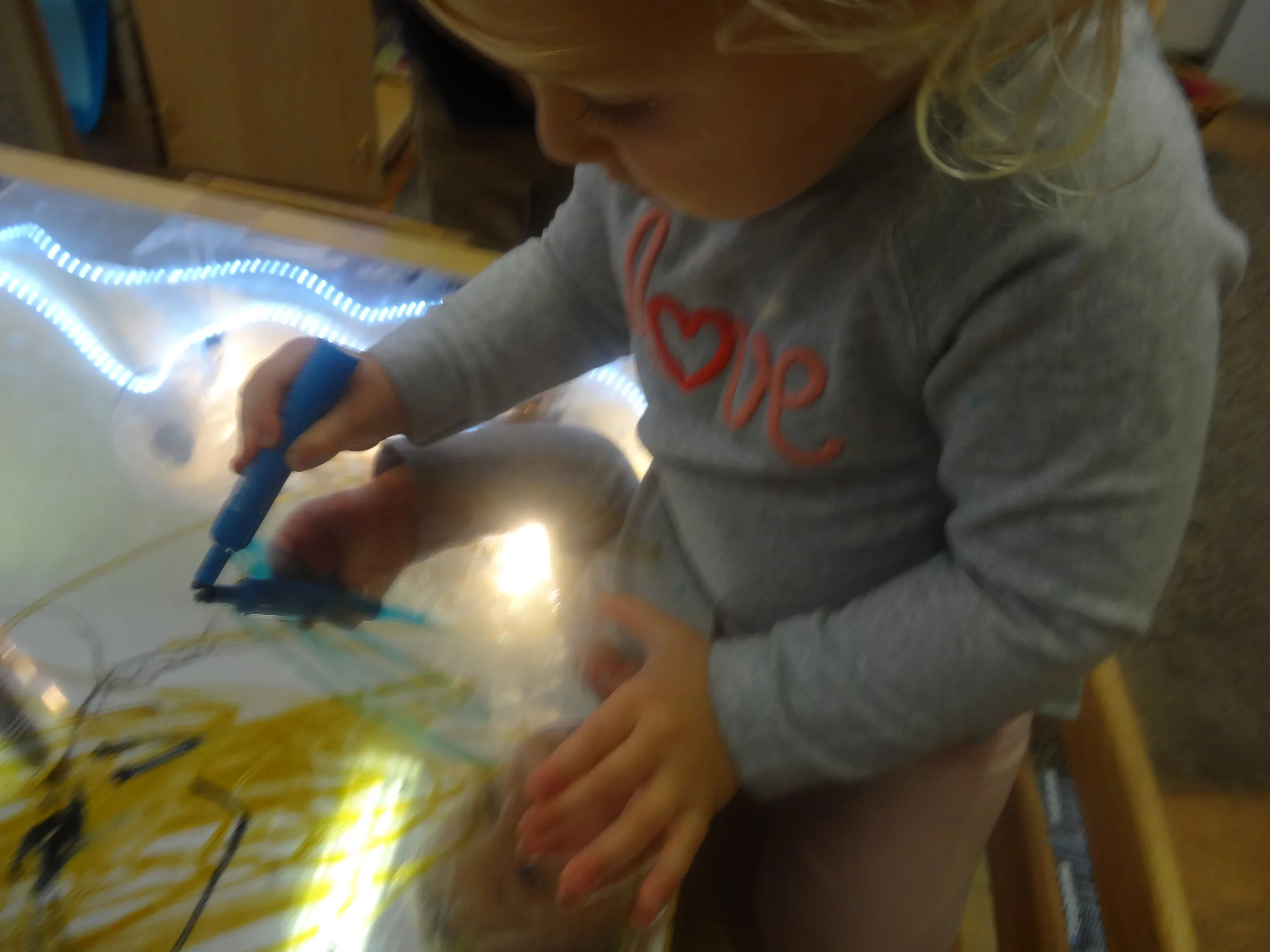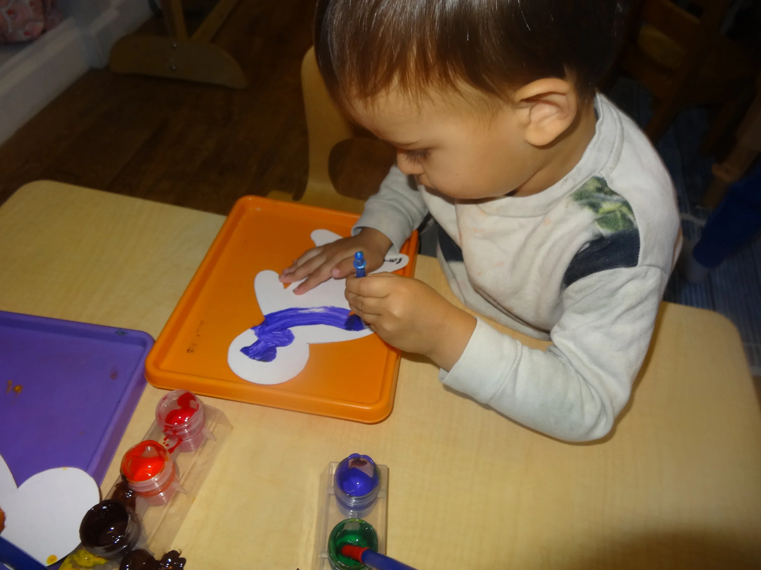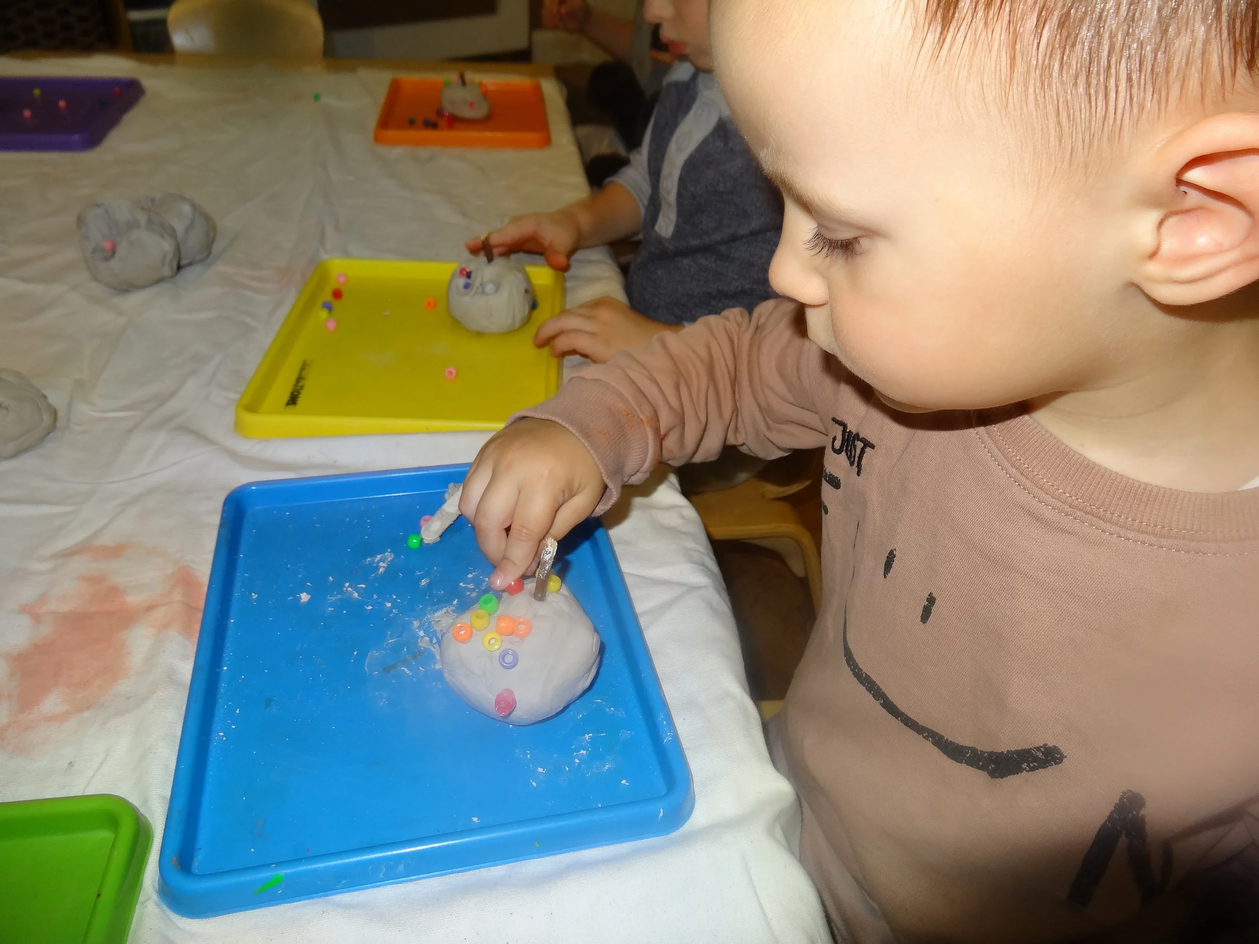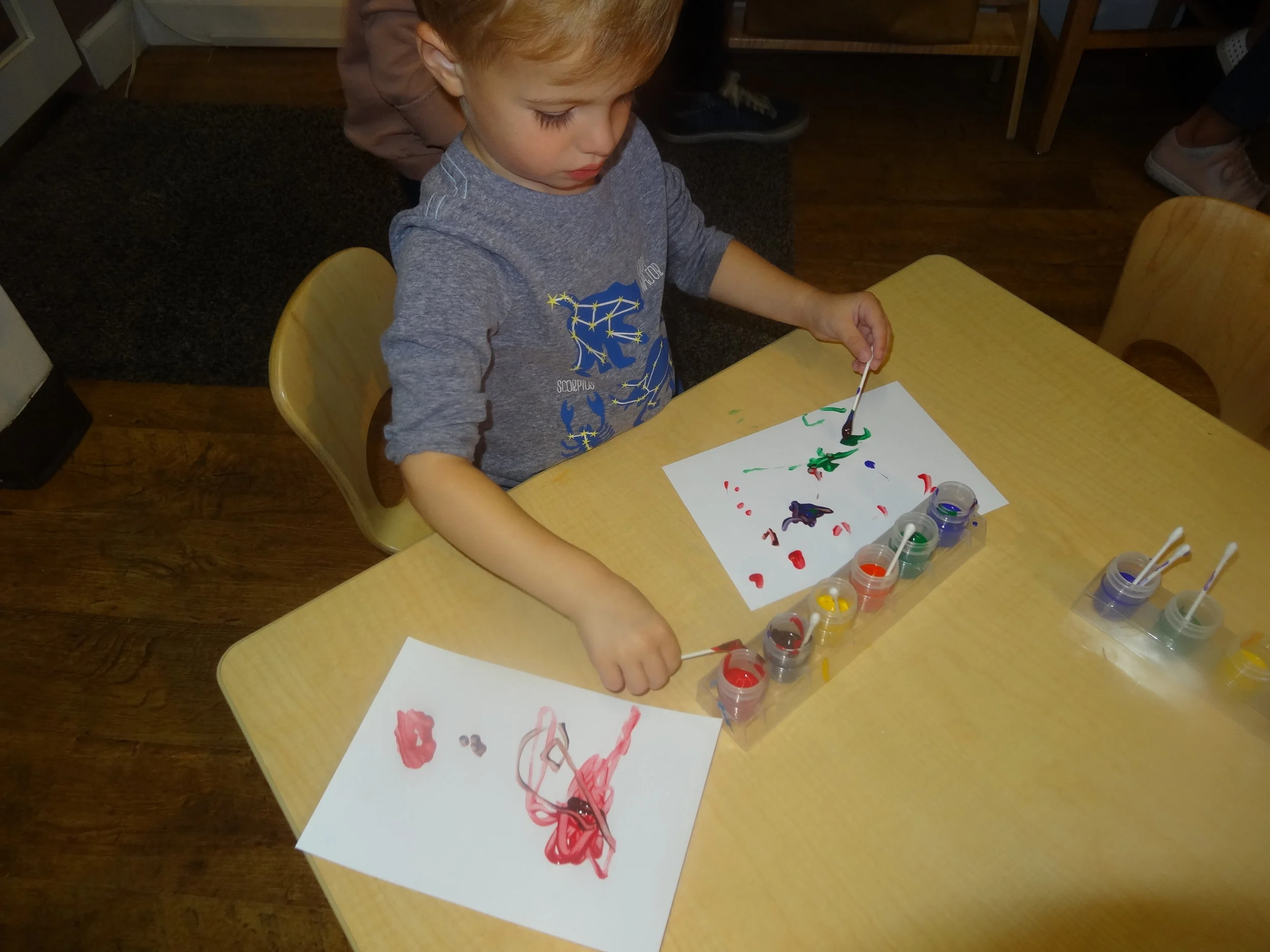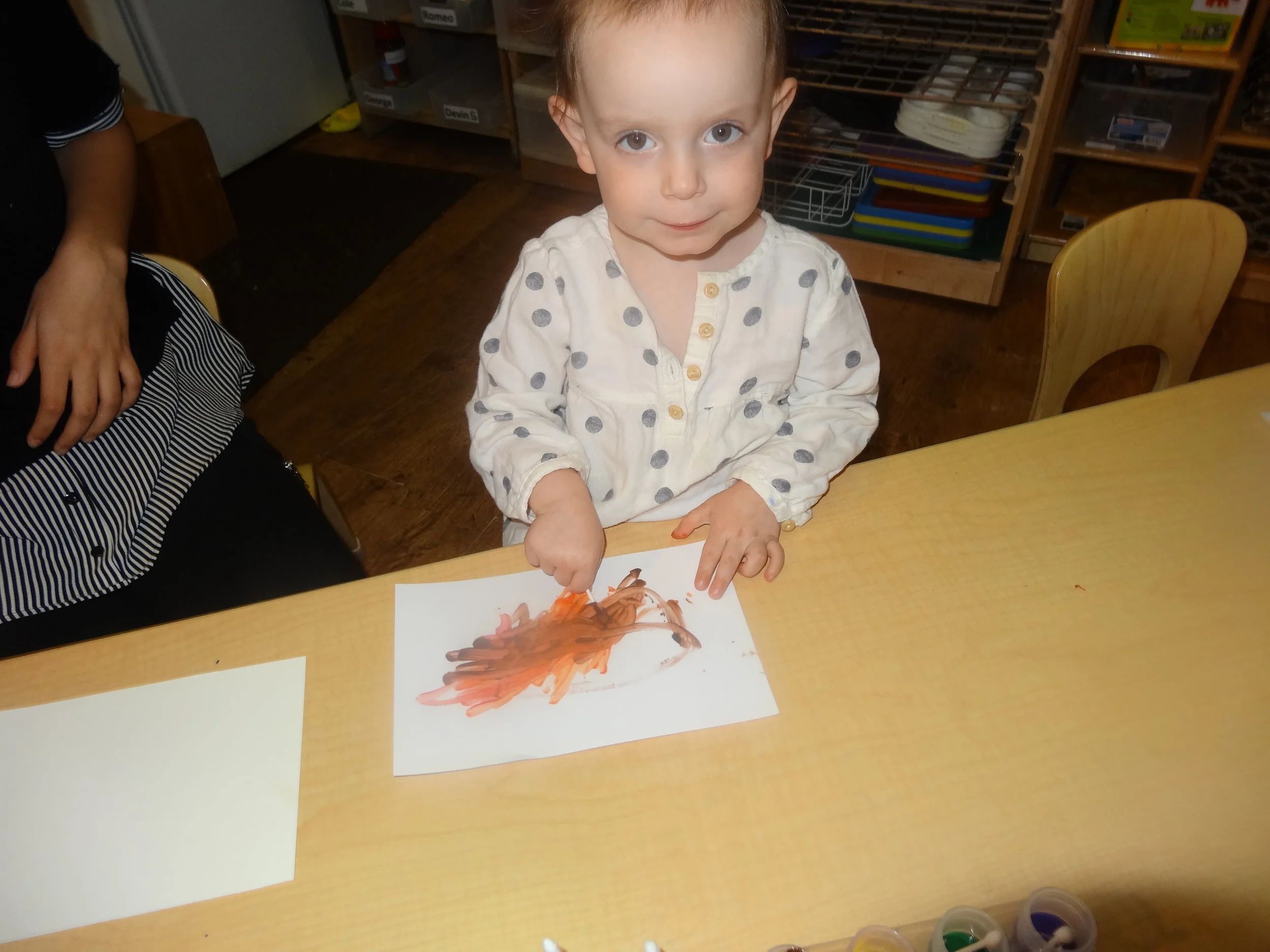 We recognized friends from last year, and the parents of our friends. Lauren found her brother through the kitchen window and realized she isn't alone. Jude loves to say hello to Romeo's dad. We have found our belly buttons every time Debbie reads Pete the Cat's Four Groovy Buttons. We also named our class pet, Blue Olly, the fish and drew a portrait of him and painted portraits of people for a morning activity.