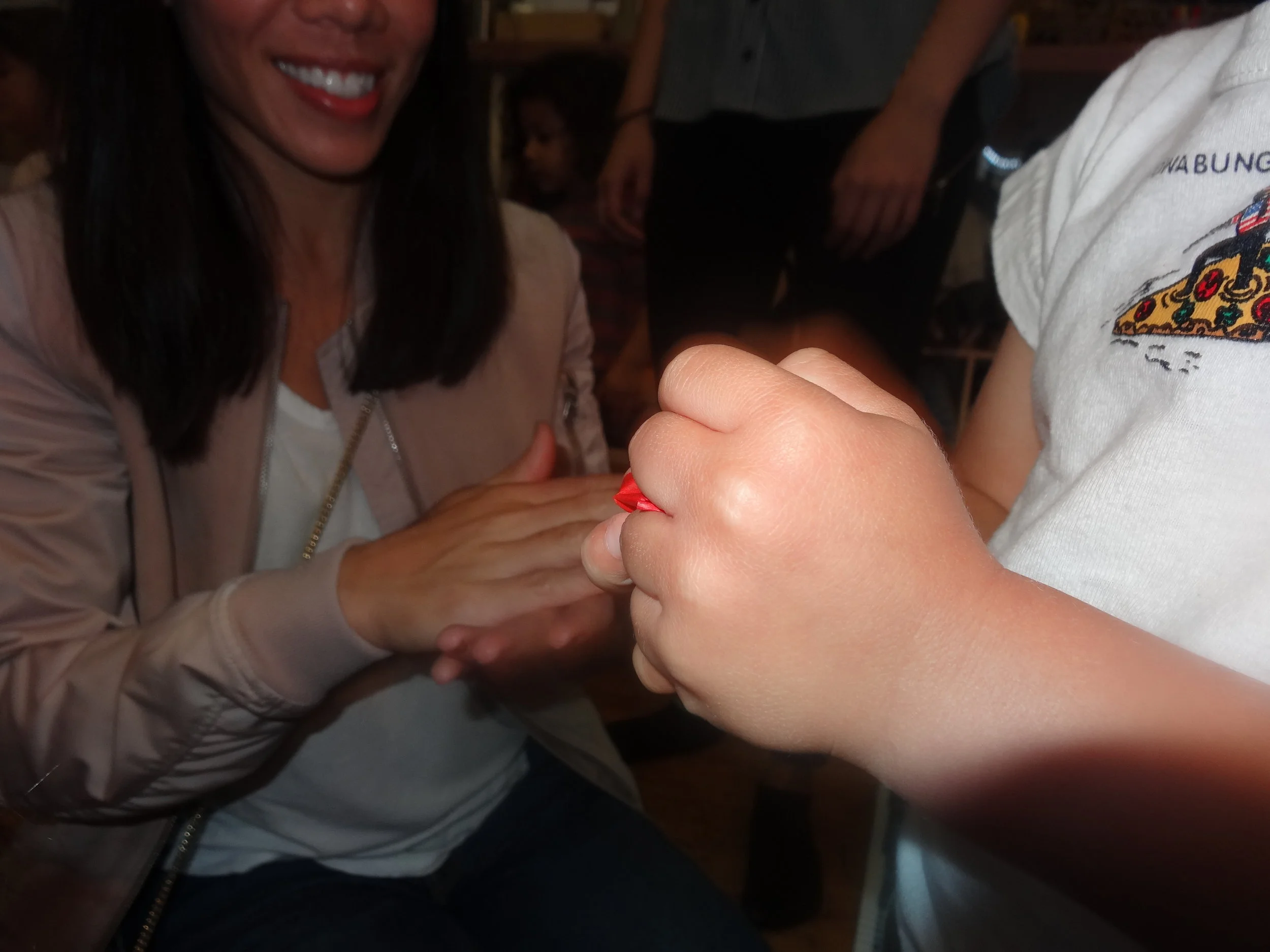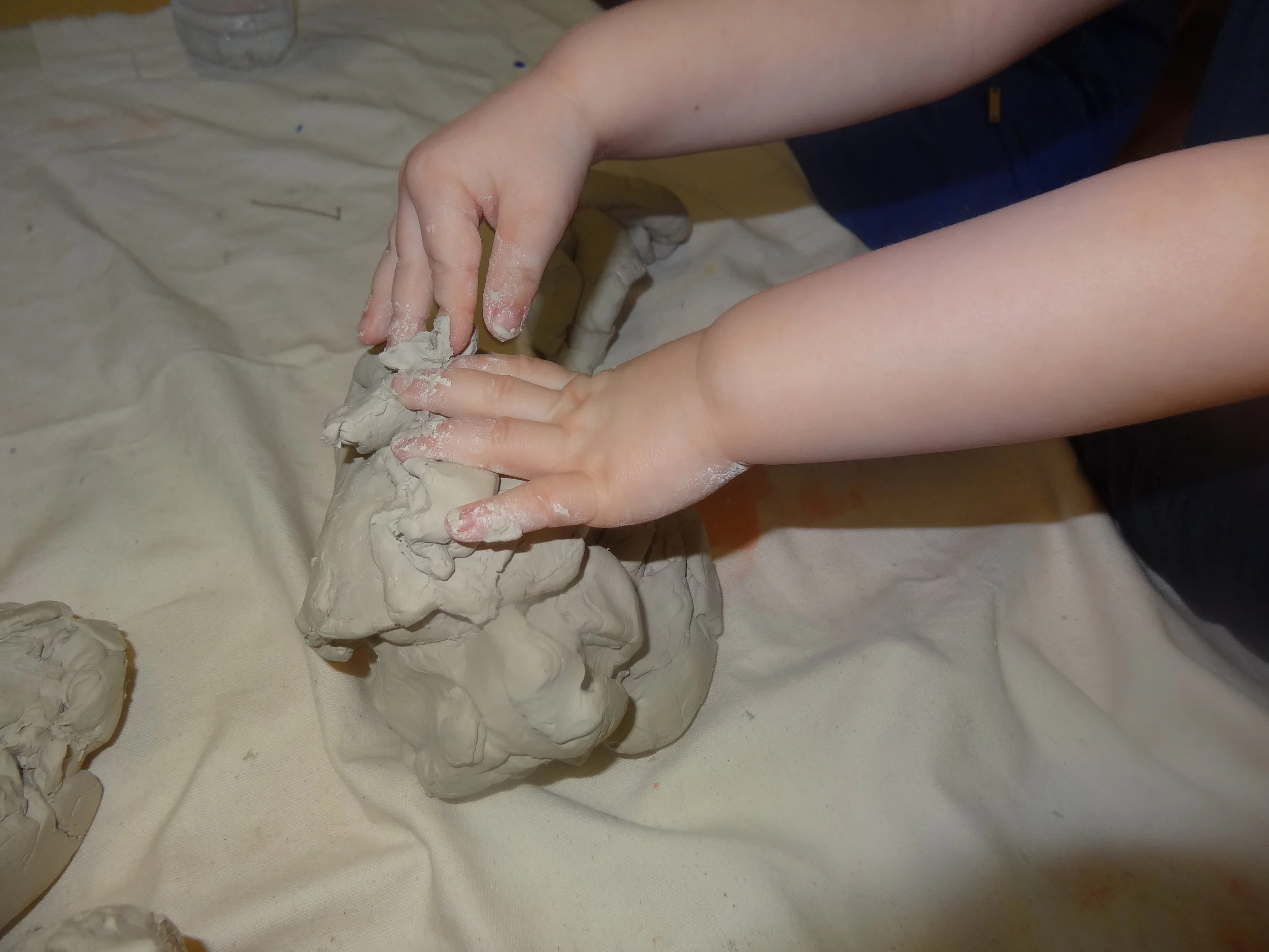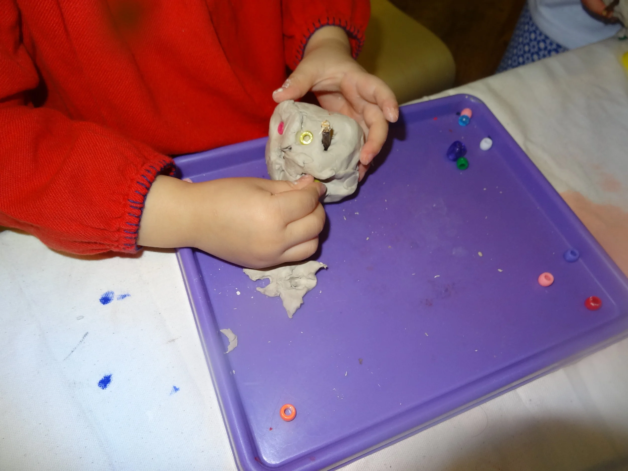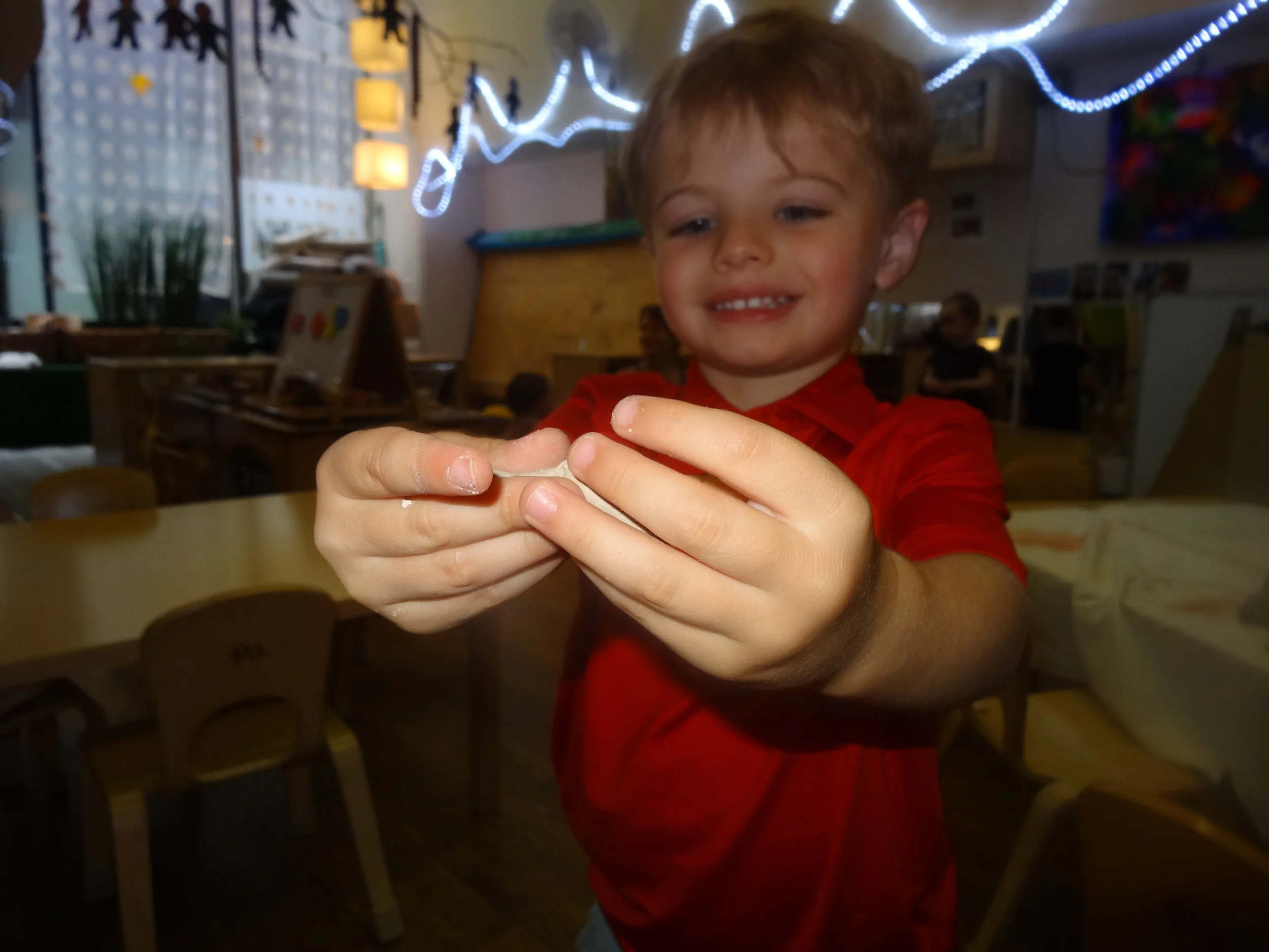 We are also working on learning cues, mirroring, and helping each other. Today, Oliver asked Hillary how to make a snake with the clay. George was able to make his own snake, so Hillary told Oliver to ask George for help. After a couple tries, George showed Oliver what to do! "It's a small snake!" said George. "Oh no!!! It split it's broken!" said Oliver. Later, when Oliver was rolling around on the floor some friends joined him in the fun. Hillary saw this free play and turned the focus into an opportunity to do yoga together. We did downward dog, happy baby, butterfly, strong plank, tree, and big sun. It was so fun and everyone liked to call out what Hillary should do with them next.