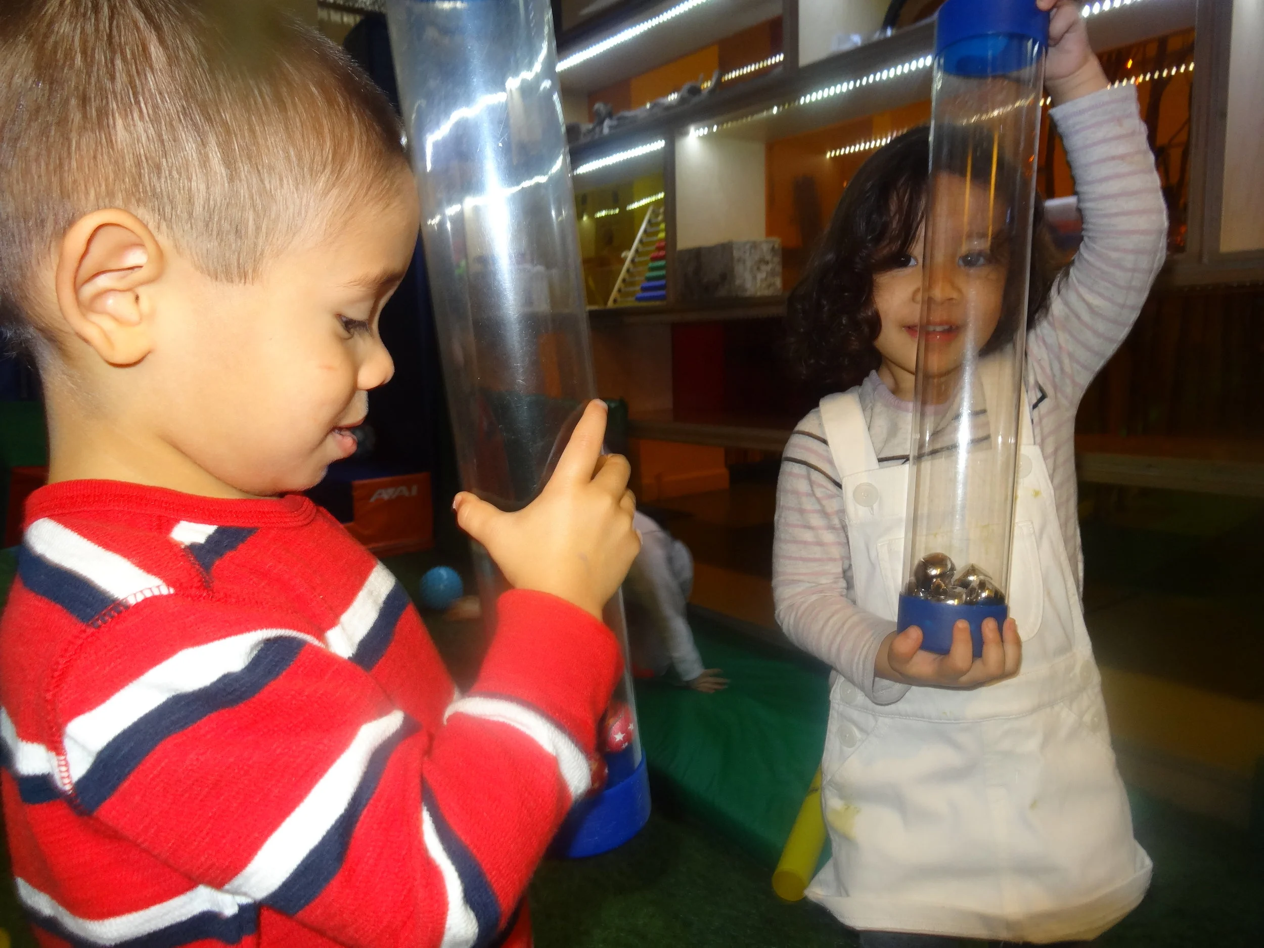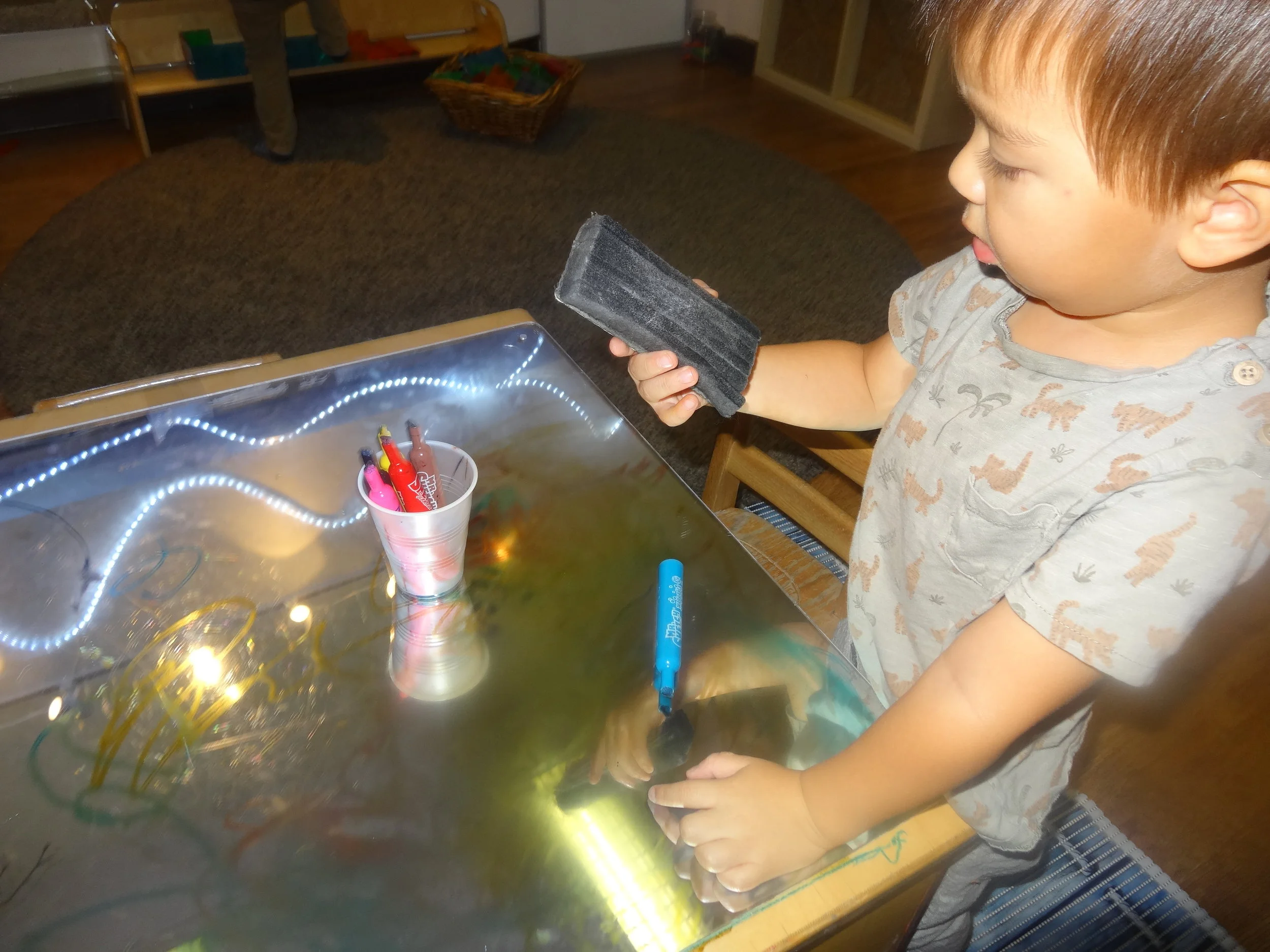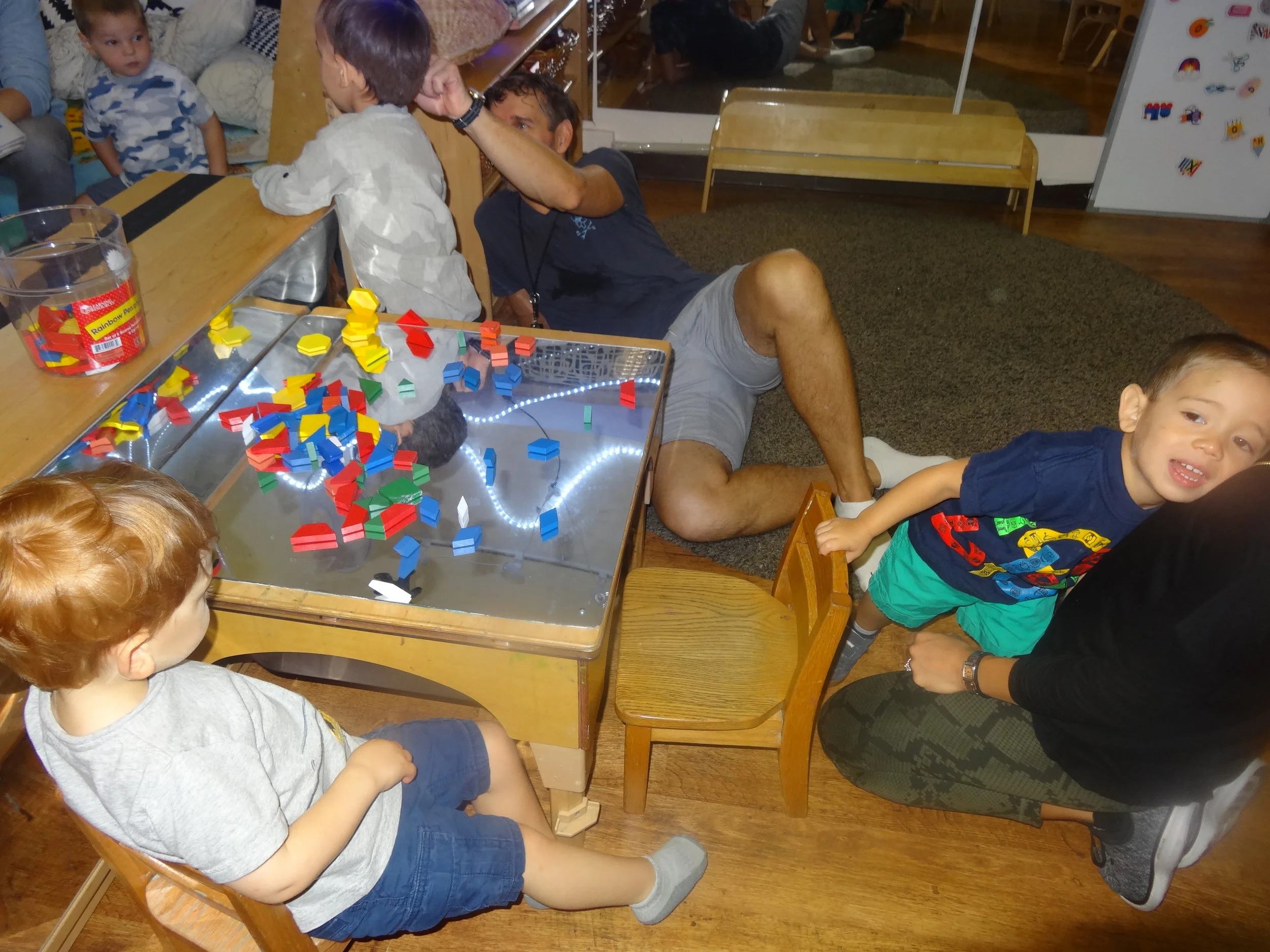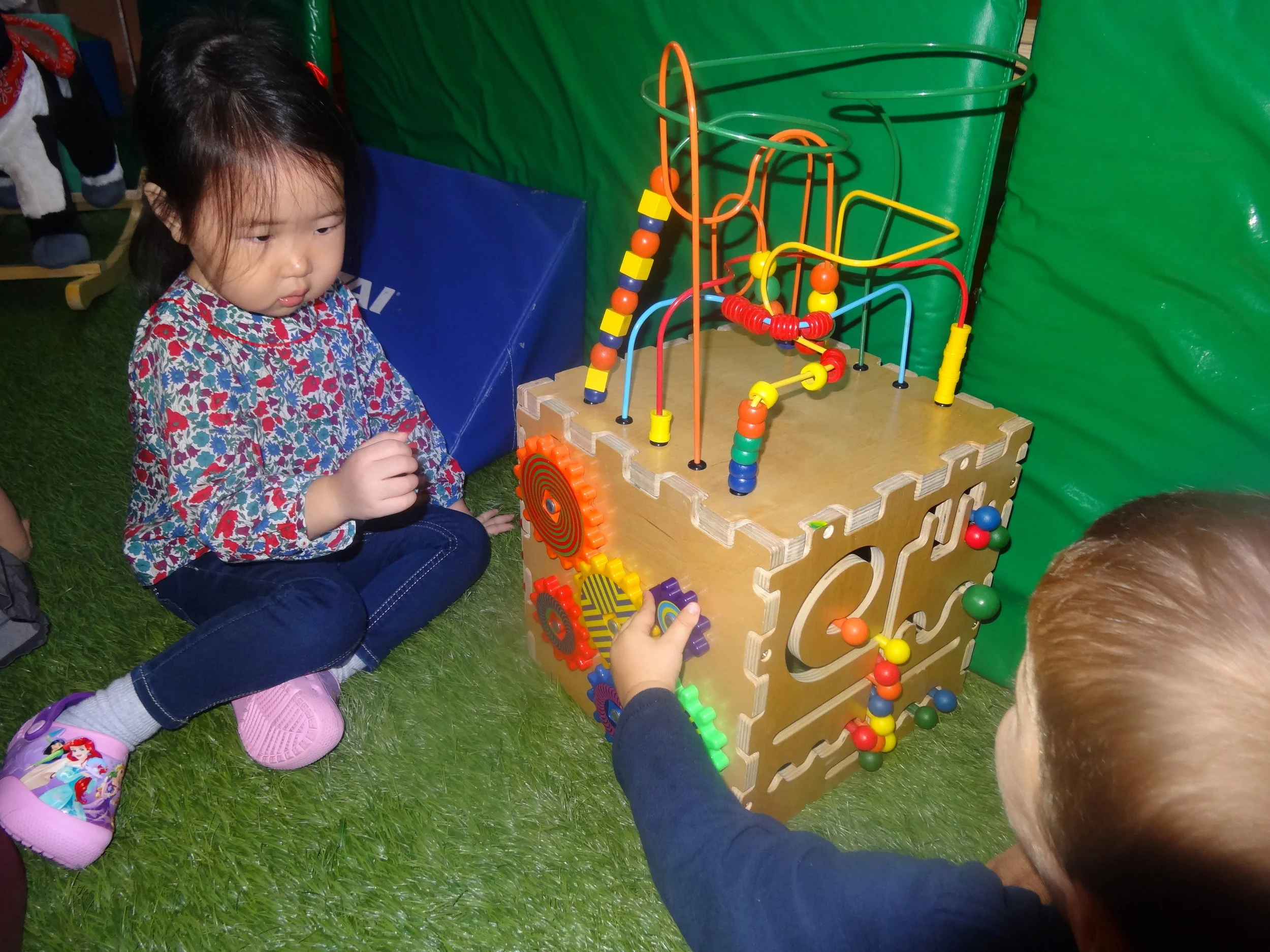 Taking a deeper look, we are still practicing transitions and separation, learning each other's names, and taking turns. Our parents are spending less and less time with us and we are spending more time playing alone and with our teachers and each other. Clapping and singing songs while lining up has been helpful in getting us organized from the classroom to the gym. We put our photos in our slots on the attendance poster to learn names and faces during morning meeting. This week, Oliver said, "He is my friend!" "Who is your friend, Oliver?" "Devin!," he said with a big smile. "Devin are you friends with Oliver?" He nodded his head with a quiet "yes" and a big smile, too. As a team, we are cleaning up together, building blocks and putting together puzzles, and helping our teachers with tasks. Devi likes to help clean up, especially washing the tables. Cole was a team player when he helped Debbie pass out the cookies and lemonade at the Bake Sale yesterday. Today, Lauren, Sloane, Alisha, and Jude took turns trying on and playing in the pink and green skirt. Romeo shared a car with Alfie when Alfie was feeling sad, and George and Grady played together in the water table. Everyone has loved saying the phrases, "No," "No way, Jose!," "See you later," and "I want .... " along with naming colors, counting, and singing "5 Speckled Frogs" and "Two Little Blackbirds." The next weeks will get easier and easier as we continue to find a groove and become more comfortable at school and with each other.