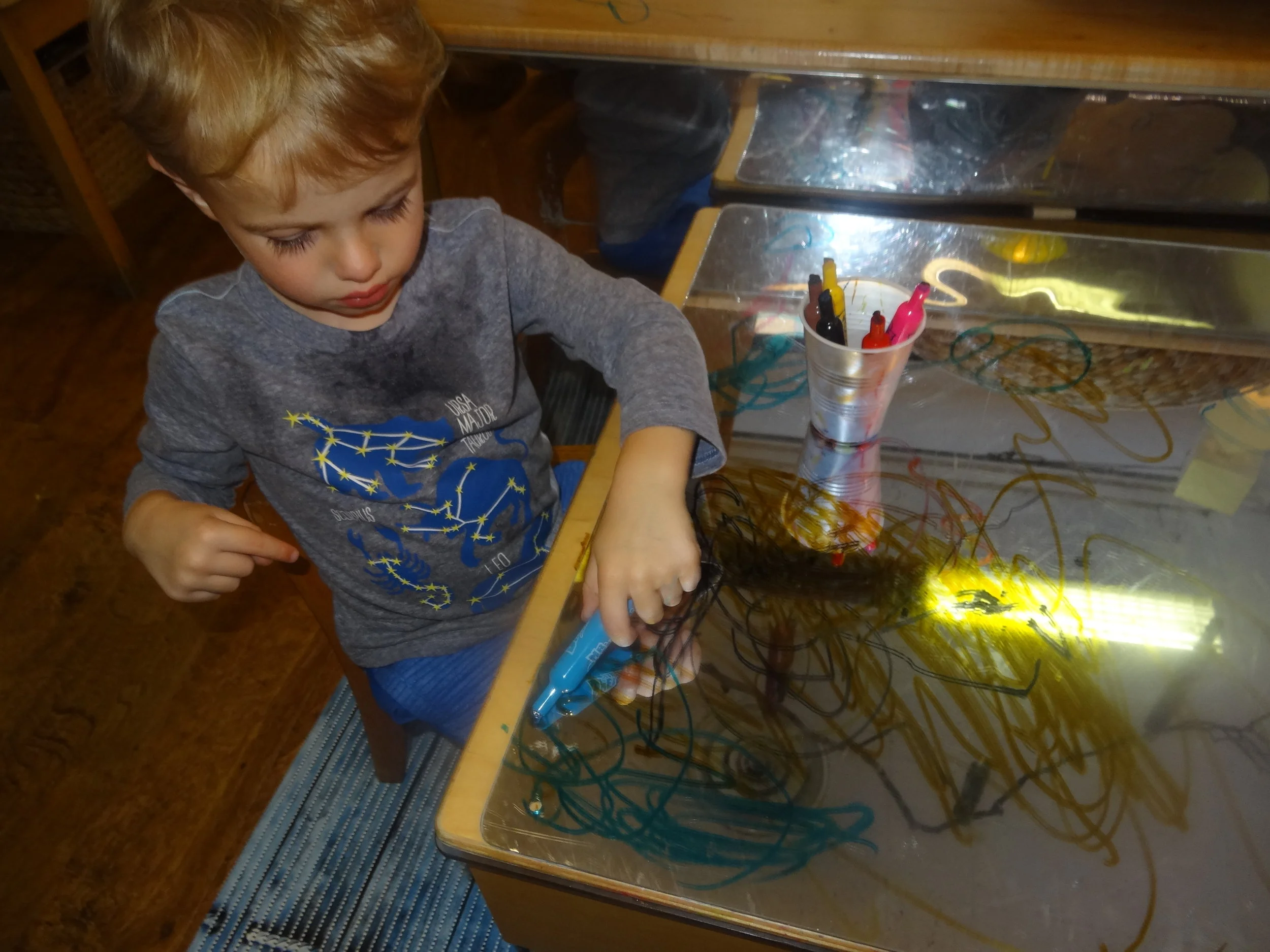 As mentioned yesterday, we have been so busy this first week! Our school-wide focus is about identity and at our age we are working on fine motor skills - in addition to all of the beginning of the school year hurdles! Our morning time and group activities have incorporated art projects and activities with play dough, markers, chalk, paintbrushes, tweezers, and musical instruments. These tools help us focus on our hand-eye coordination as well as putting our ideas into action, whether in play, paper, or sound.