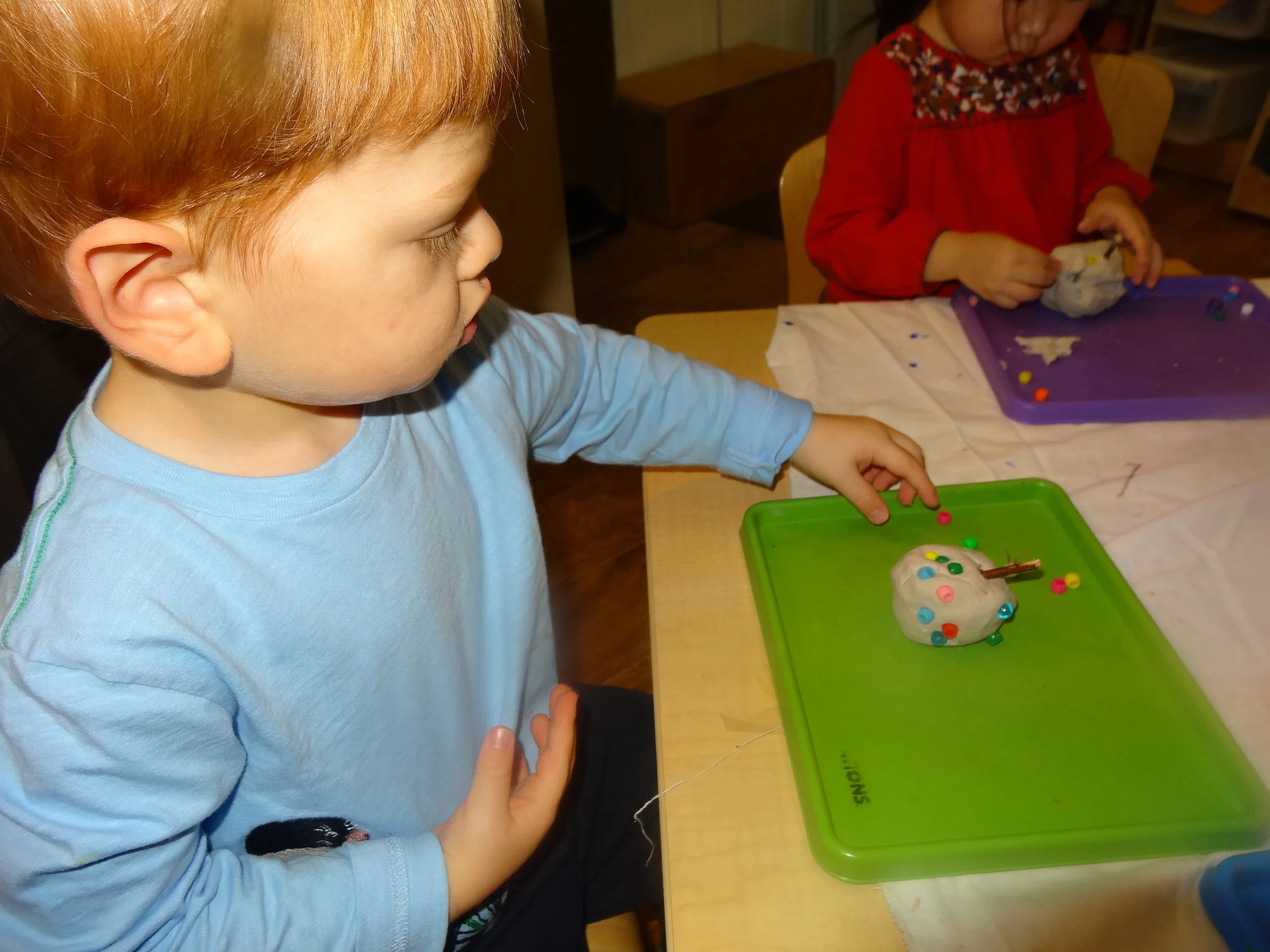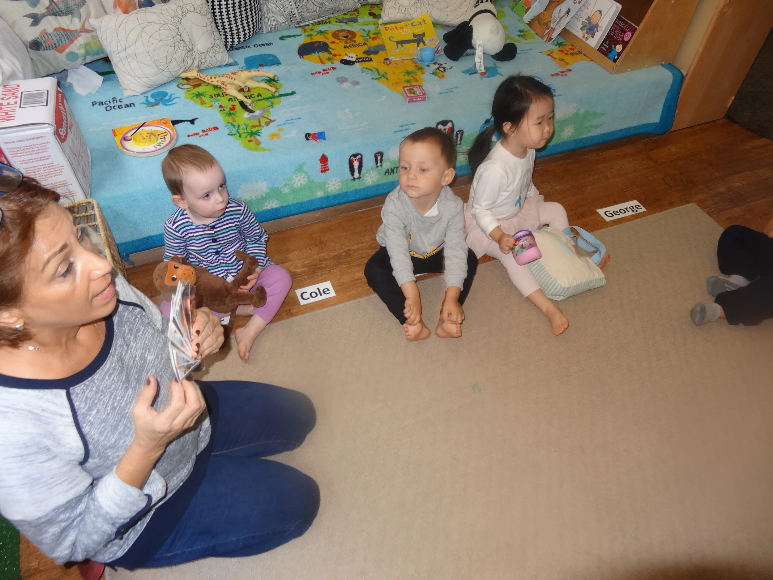 In the beginning of the week, it was hard to understand why our parents and caretakers left, but now we are starting to get the hang of it. "My mommy comes after lunch." says Oliver. Whenever Sloane asks for mommy, Hillary says, "When does your mommy come, Sloane?" and Sloane says, "After nap!" Devin always asks, "Where is Ellie?" (his elephant lovey) and "Where is Susie?" and goes to look for both of them, searching all over. George felt so angry when his mommy left, so his friends Romeo, Oliver, and Grady tried to help him feel better by waiting with him for their mommies too.