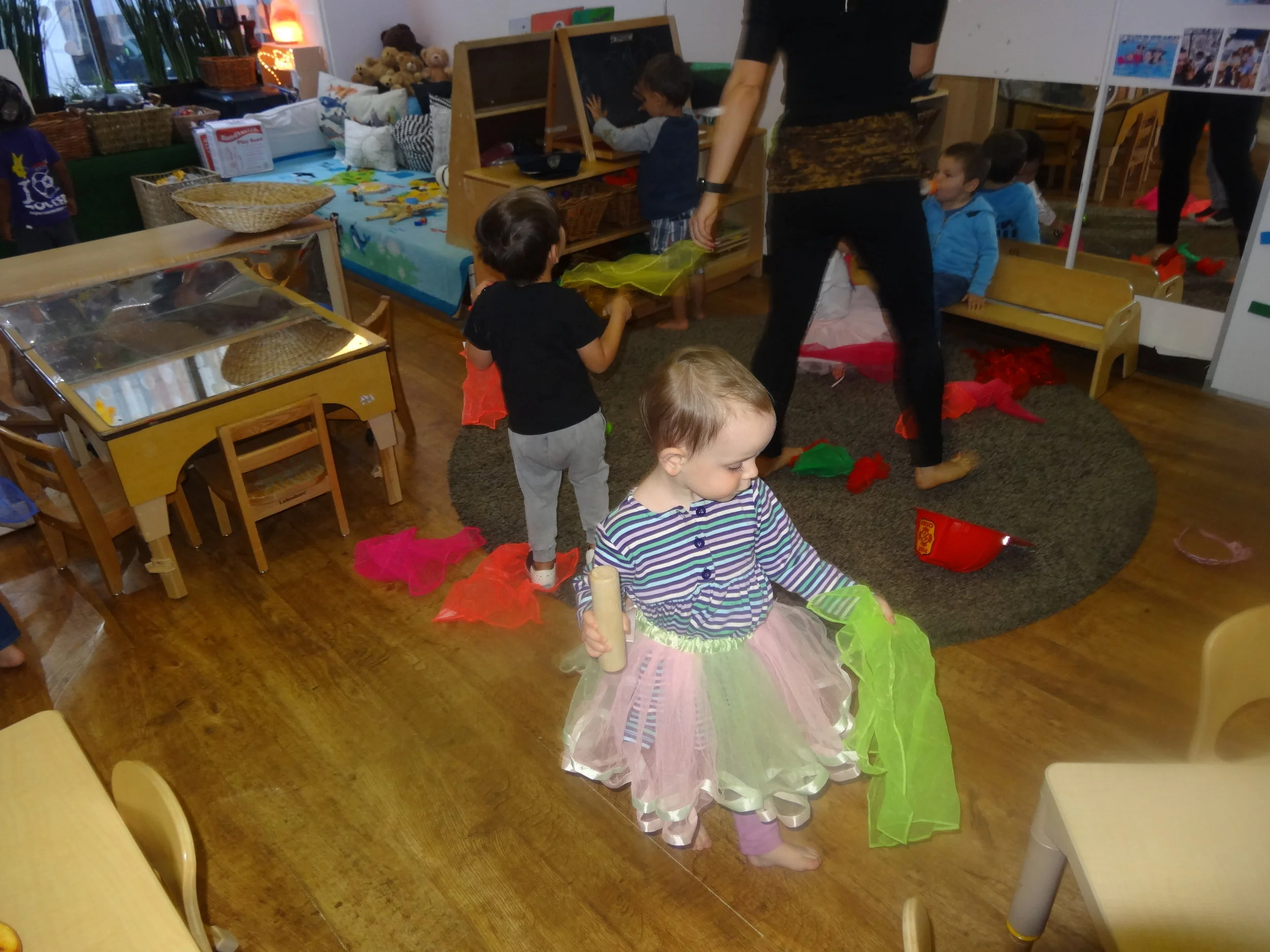 The video and photos below are a good representation of where we are in our development. Each of us this week has been engaged. Self-soothing play, individual fascination in a toy or art activity, talking to a teacher, parallel play, group songs, morning meeting, story time, snack and lunch time, and time with specialists have presented opportunities for us to express ourselves - creatively, emotionally, and cognitively. For example, we have our construction worker - or "digger" - as Grady says, police officer, firefighter, and ballerinas engaging differently in the same activity of dancing with scarves (see the video below). Our curriculum for the months of September and October have been focused on Self-Identity and Celebrating our Uniqueness. We may move differently, paint differently, separate from our guardian or follow instructions differently, but that is what makes us beautiful. As the days and weeks move on, we will grow both individually and together as a group and we already know each others names now, so that will help too!