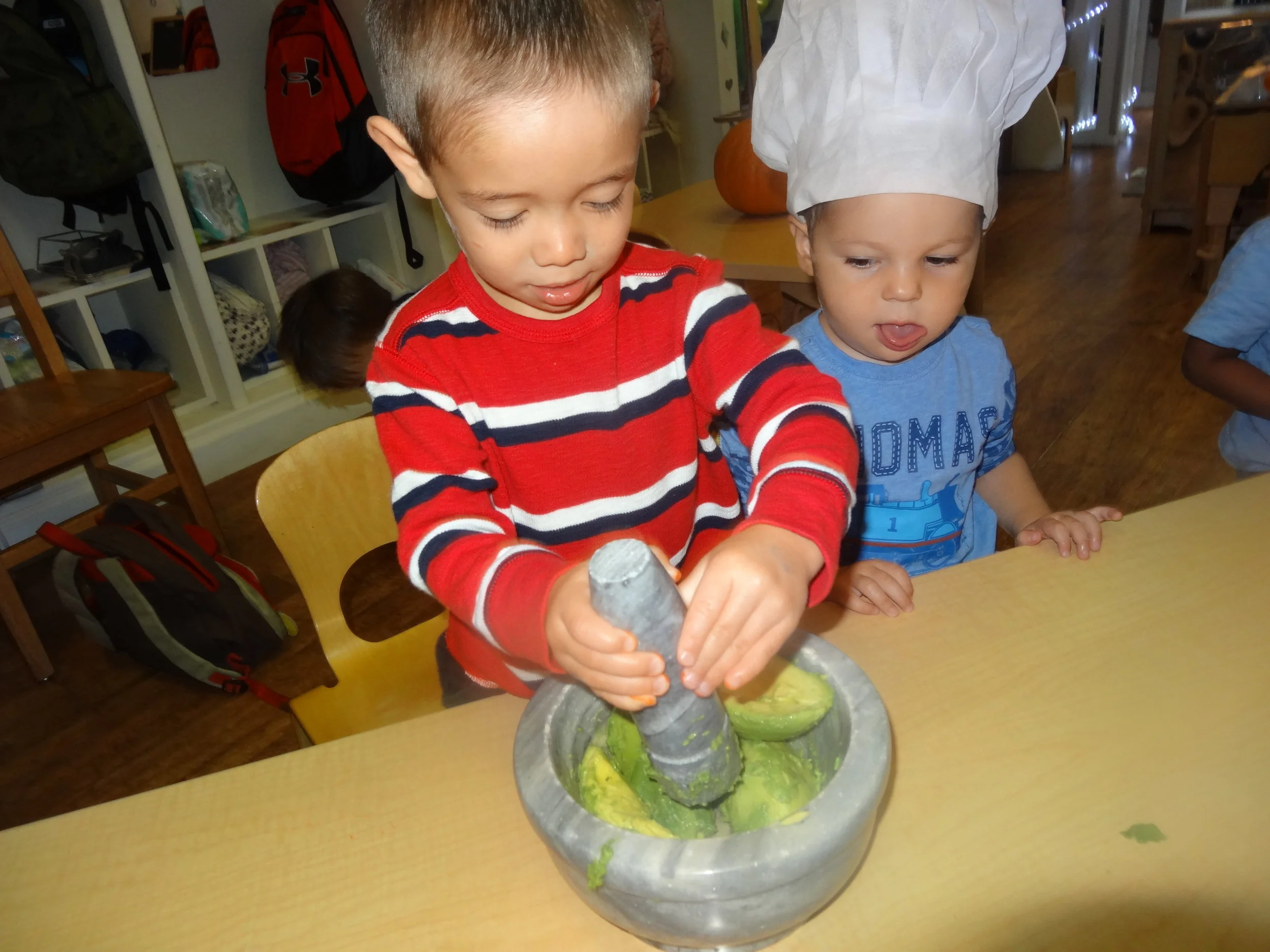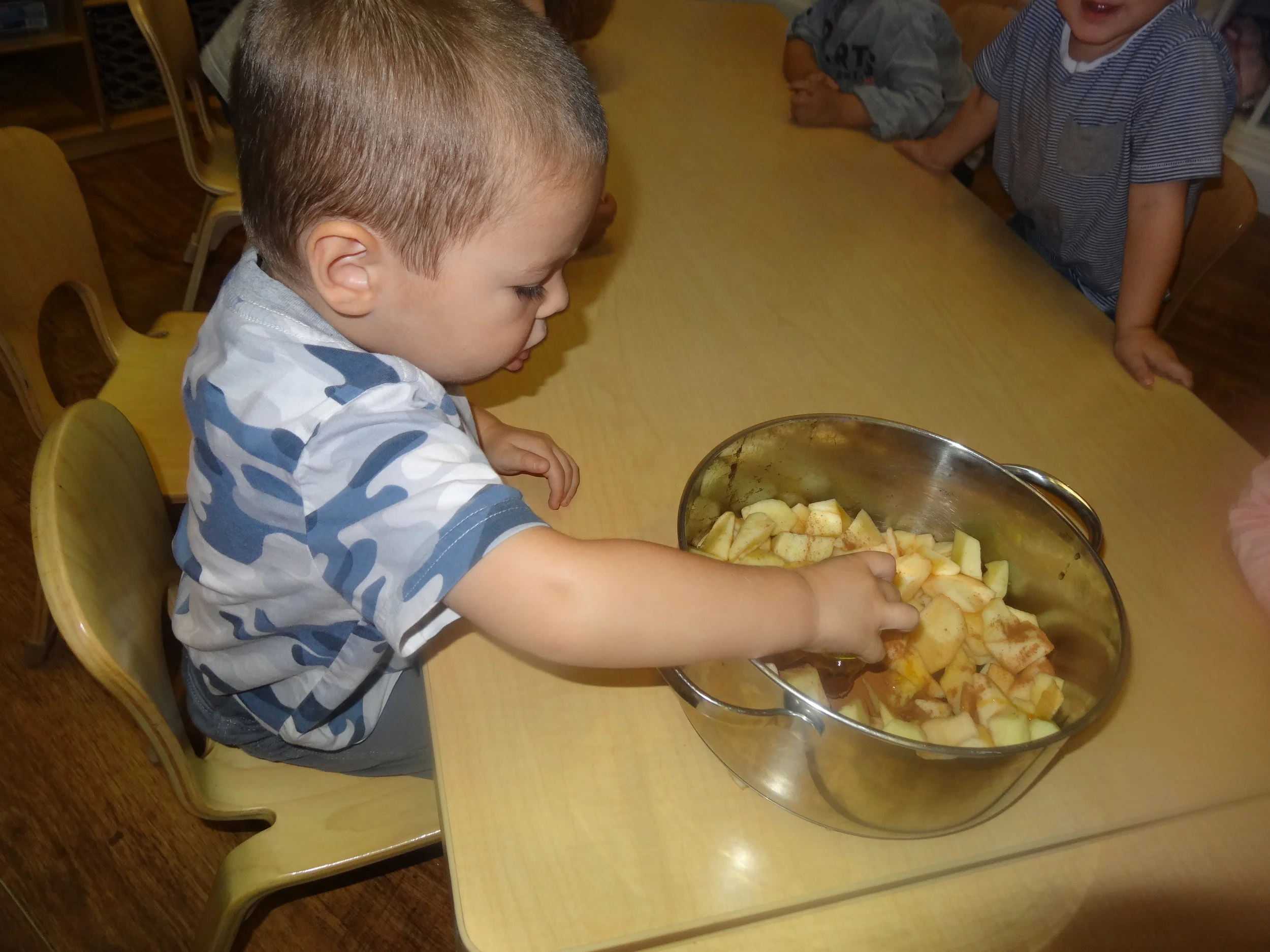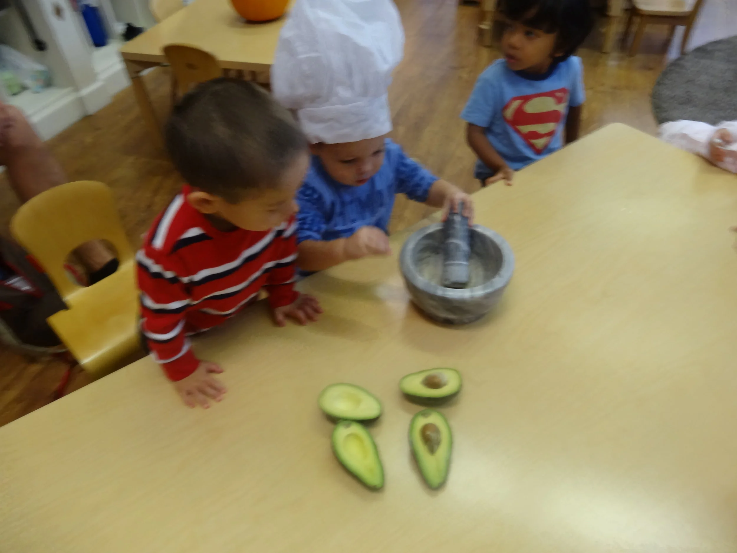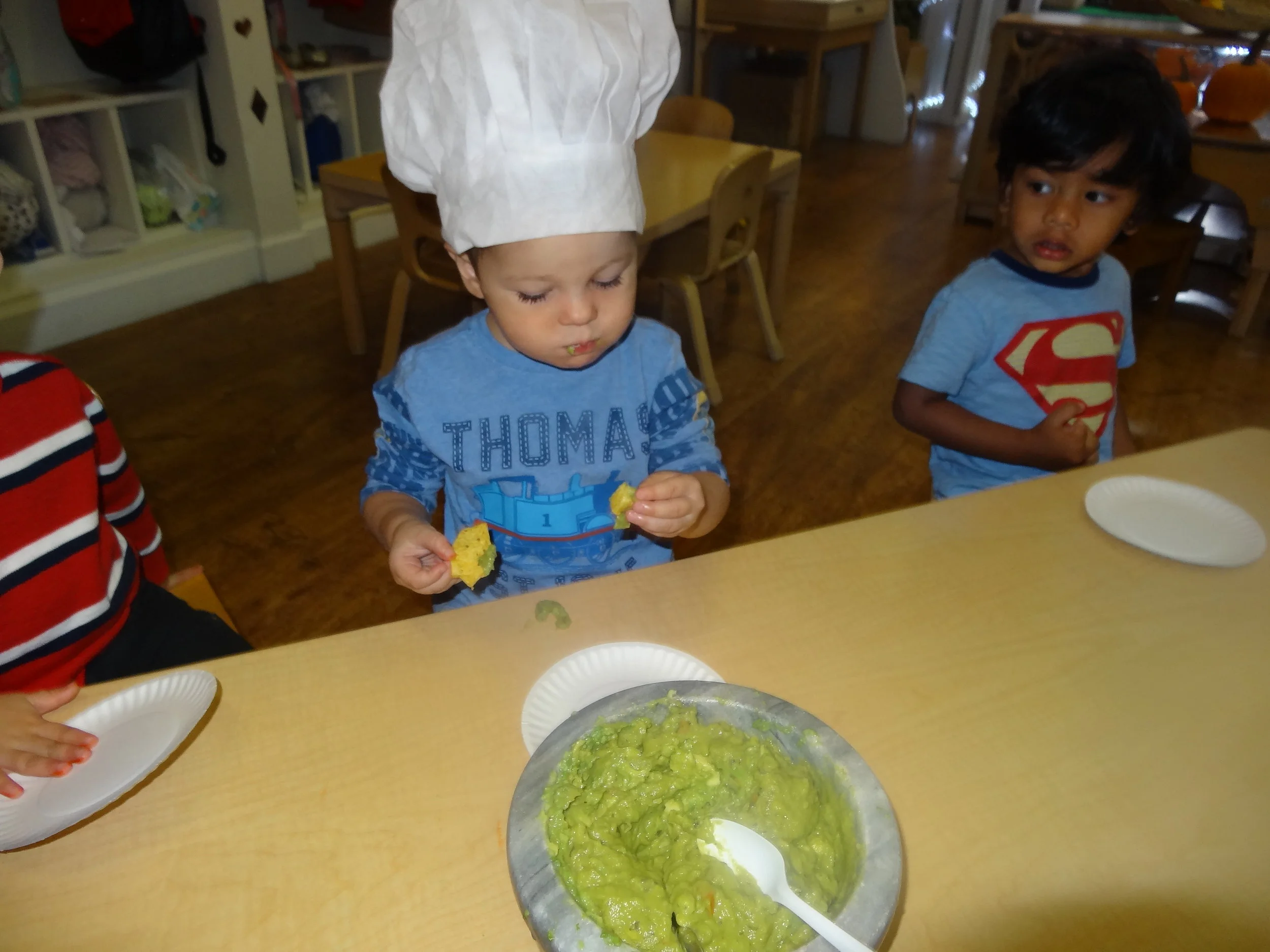 This week we made applesauce with Diane and guacamole in the class with Debbie and Hillary. Alfie was so excited to wear the chef hat. Jude loved helping the class mash the avocado and Devin loved eating the guacamole with chips, while Grady preferred just the chips.
