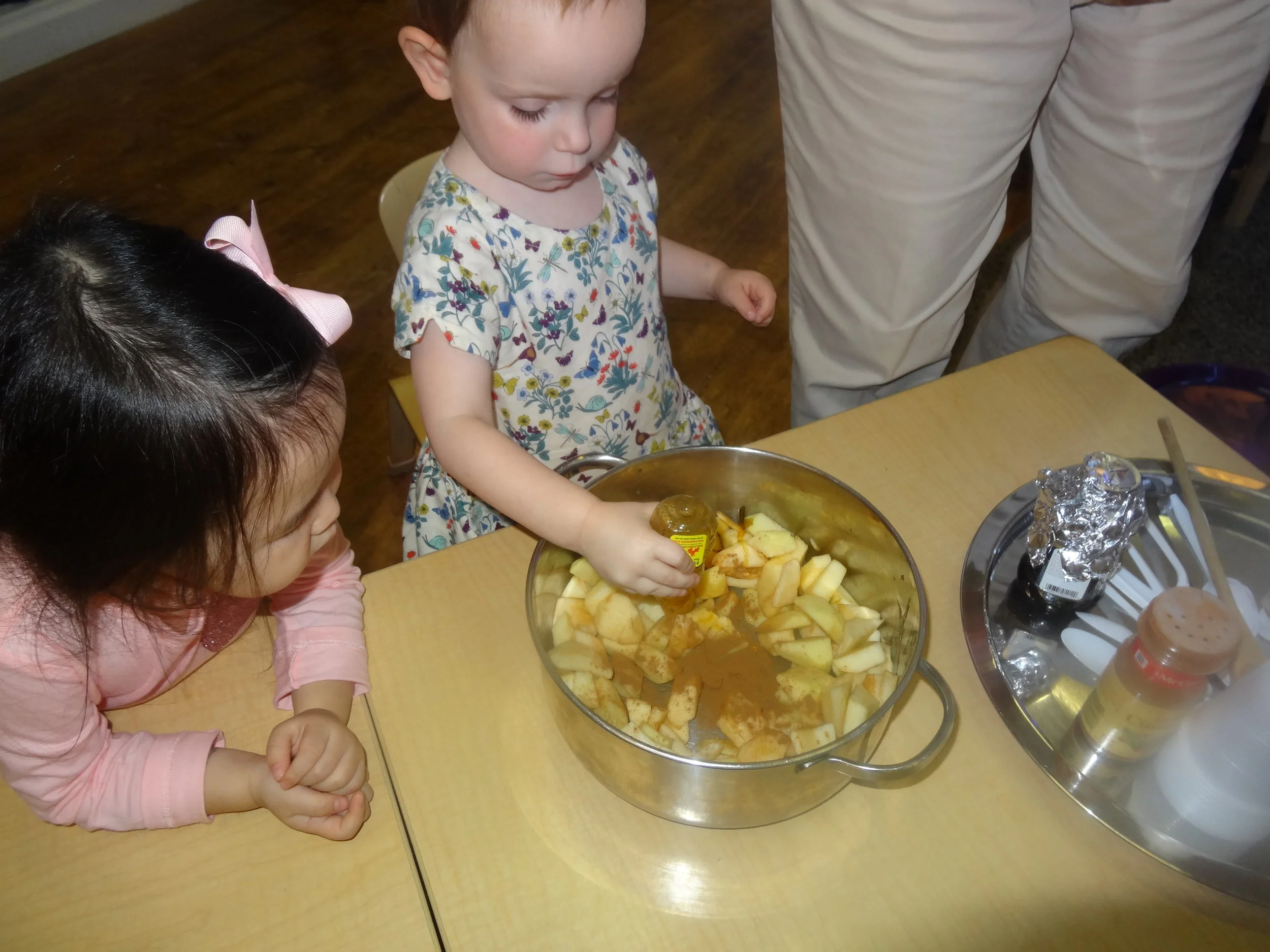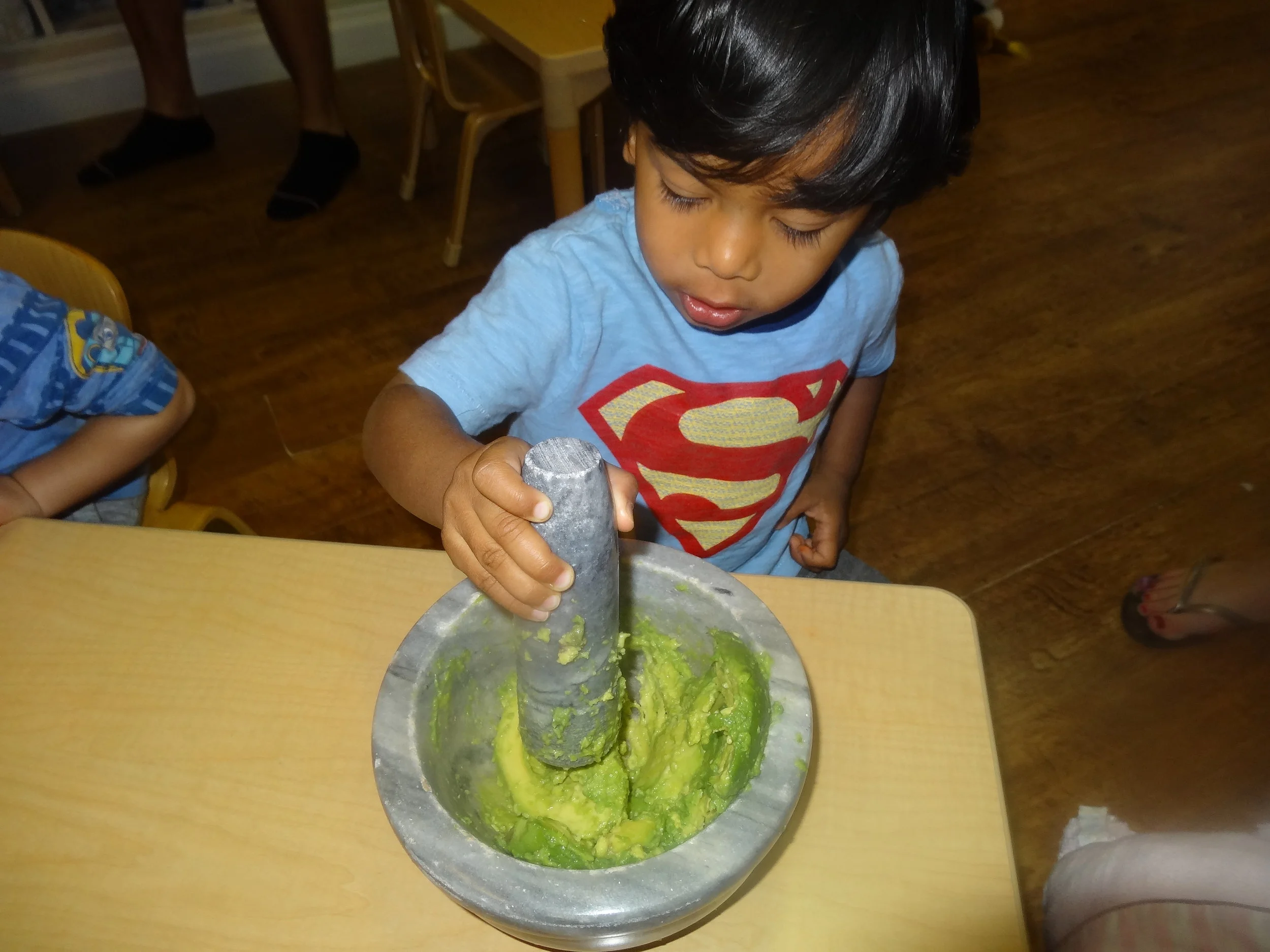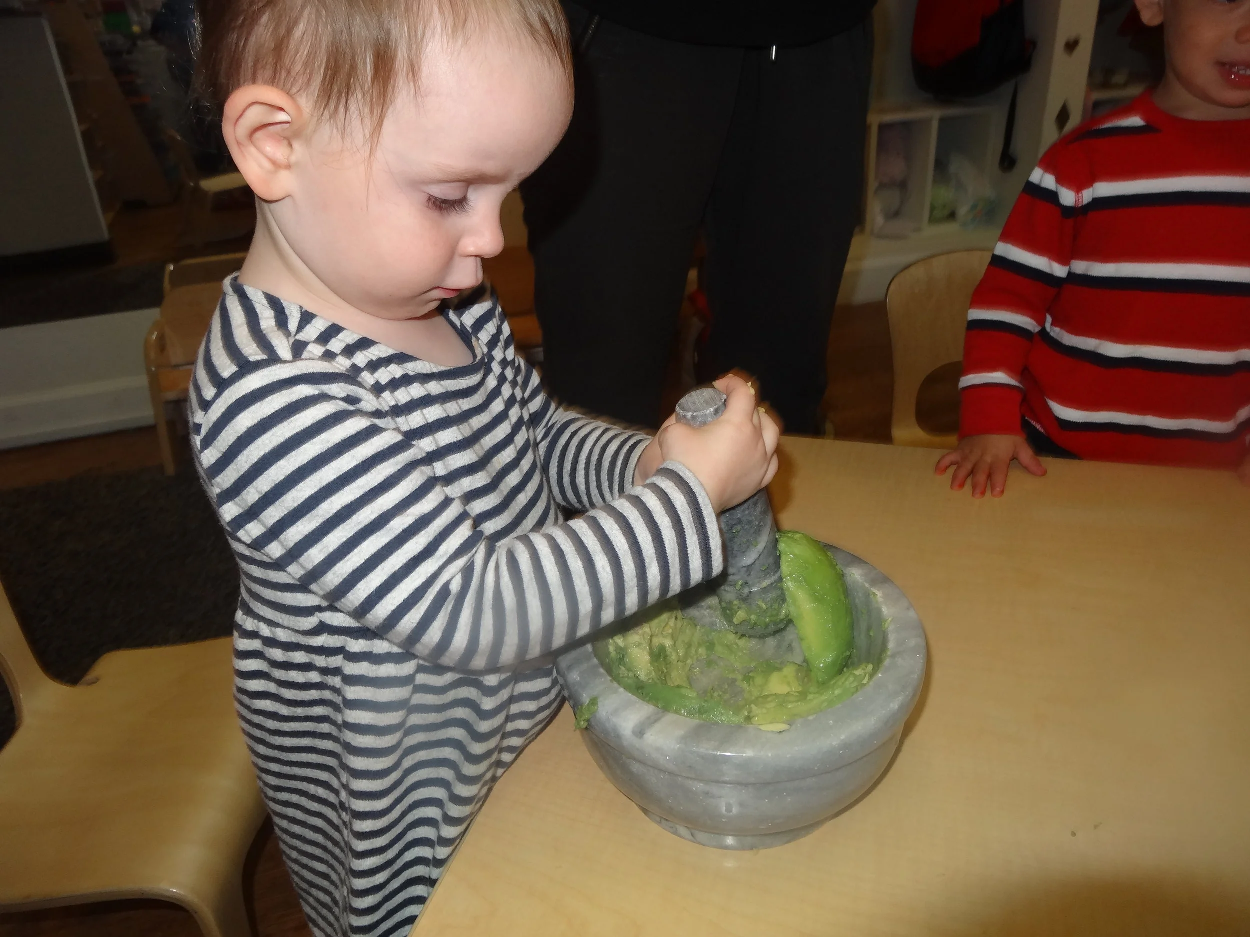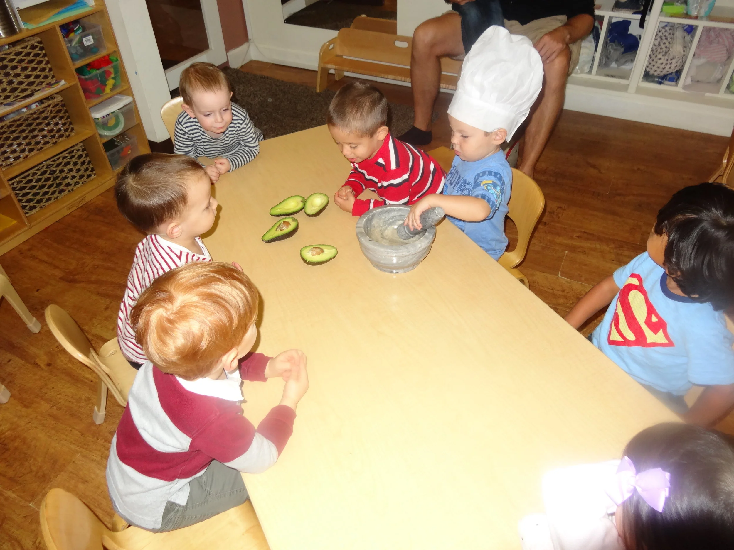 This week we made applesauce with Diane and guacamole in the class with Debbie and Hillary. Alfie was so excited to wear the chef hat. Jude loved helping the class mash the avocado and Devin loved eating the guacamole with chips, while Grady preferred just the chips.