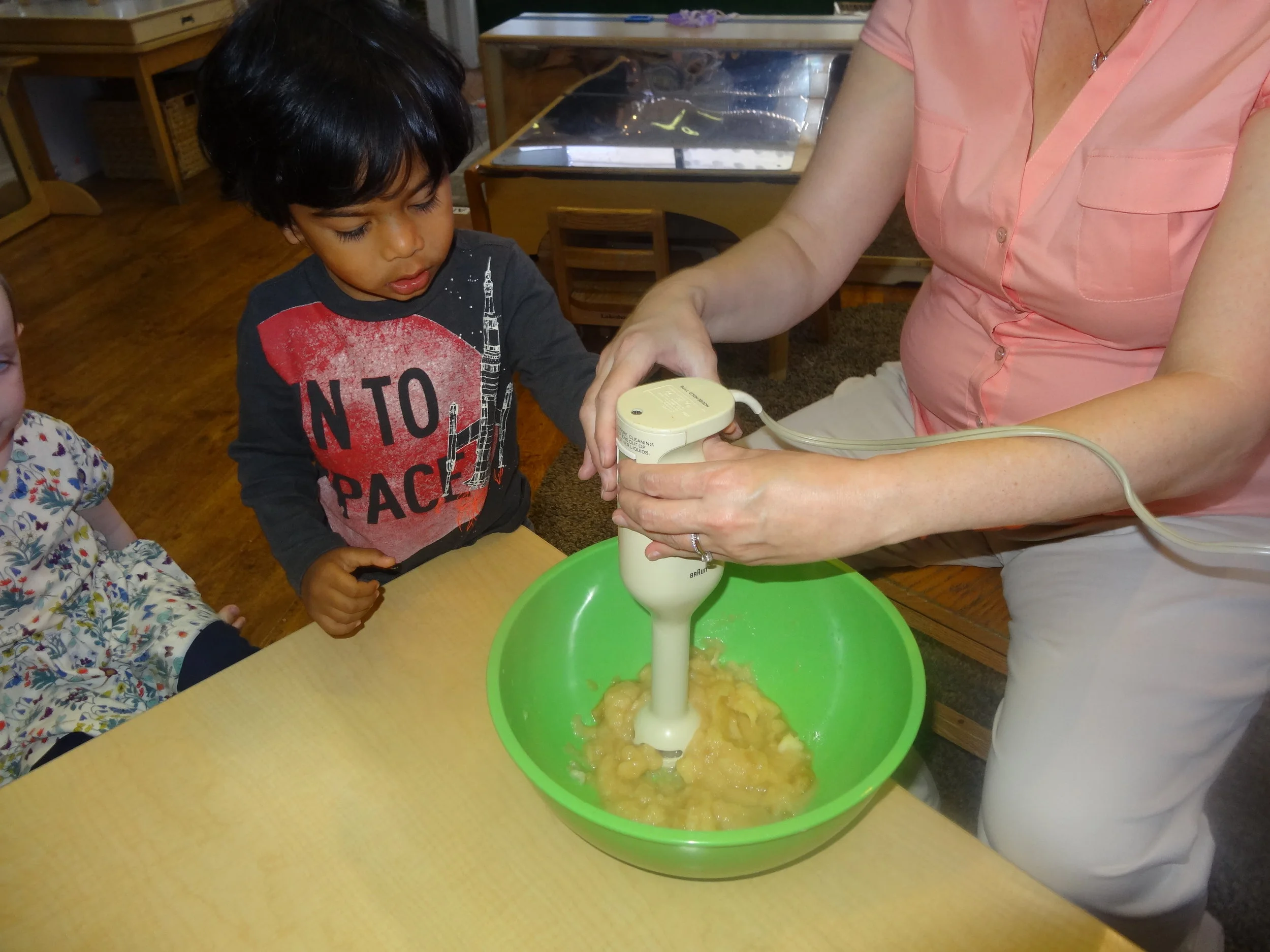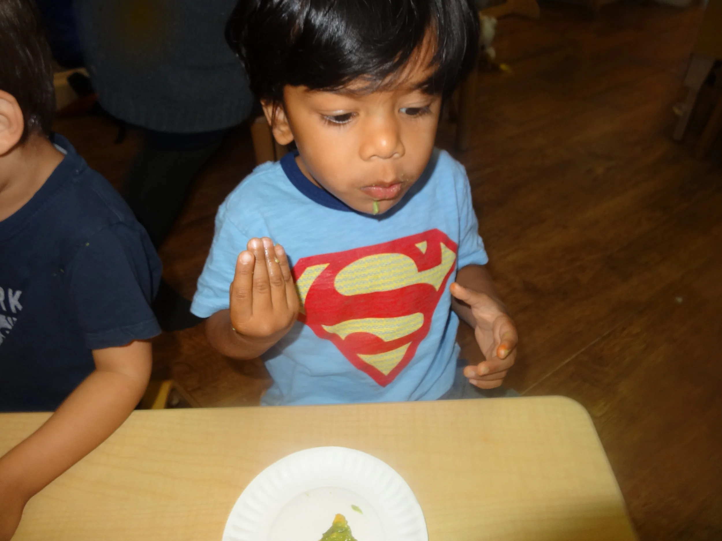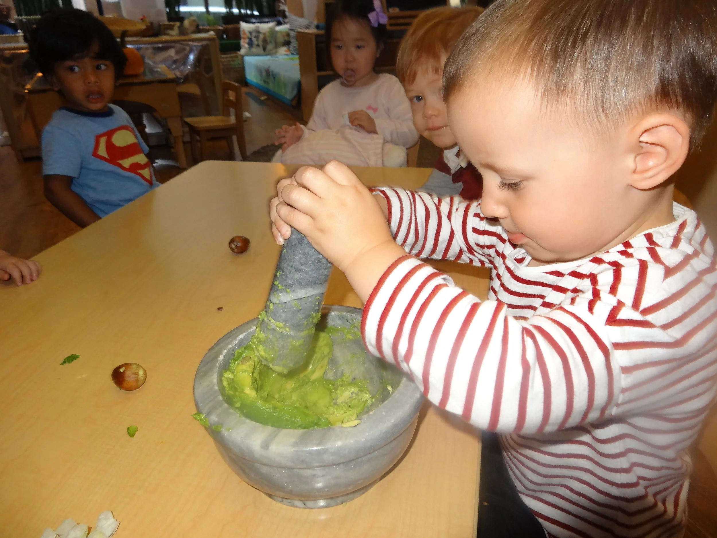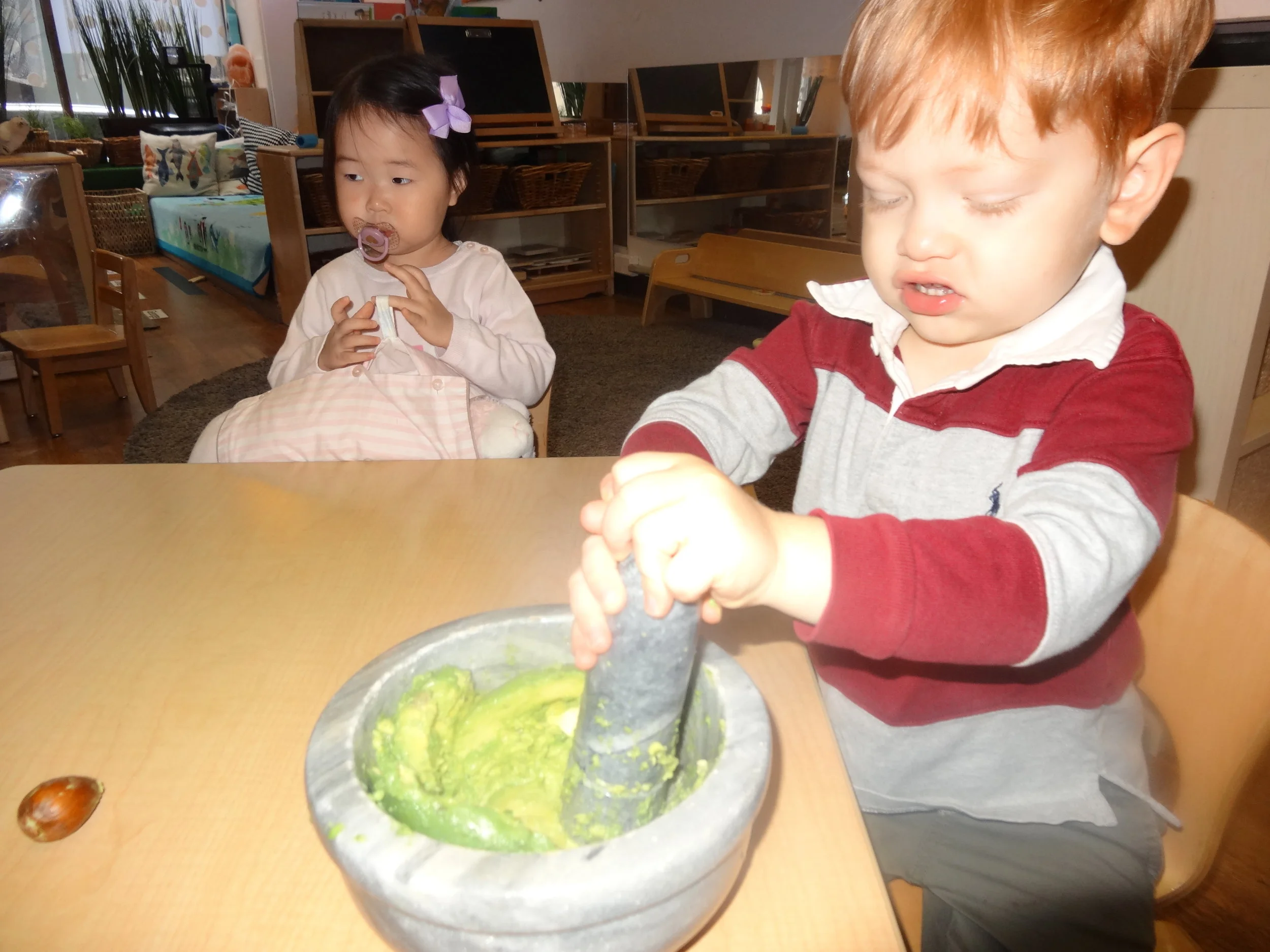 This week we made applesauce with Diane and guacamole in the class with Debbie and Hillary. Alfie was so excited to wear the chef hat. Jude loved helping the class mash the avocado and Devin loved eating the guacamole with chips, while Grady preferred just the chips.