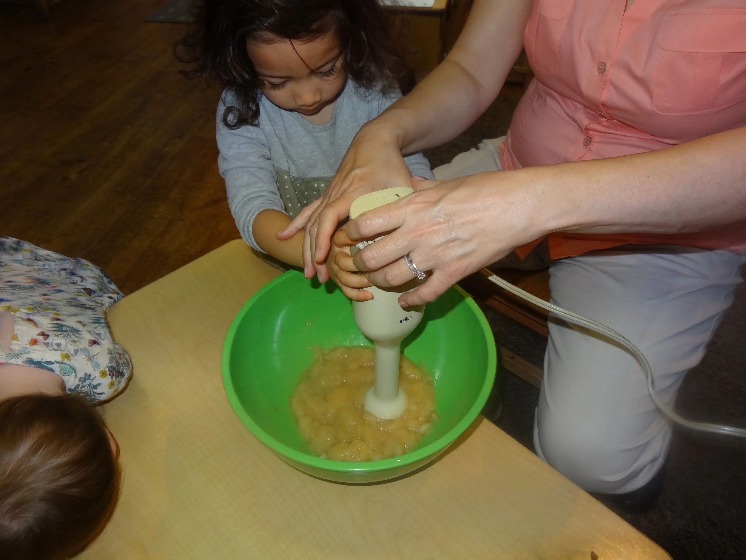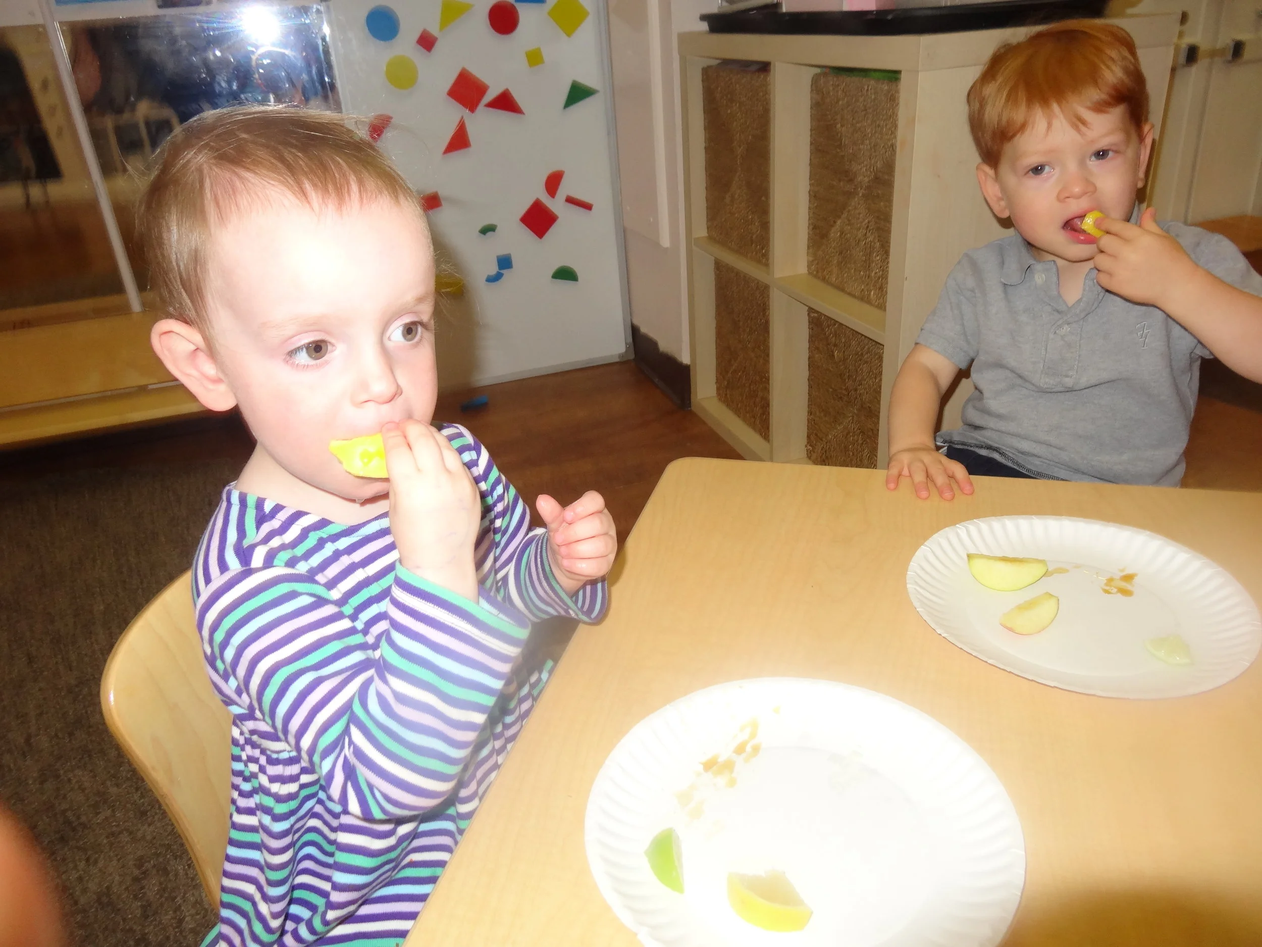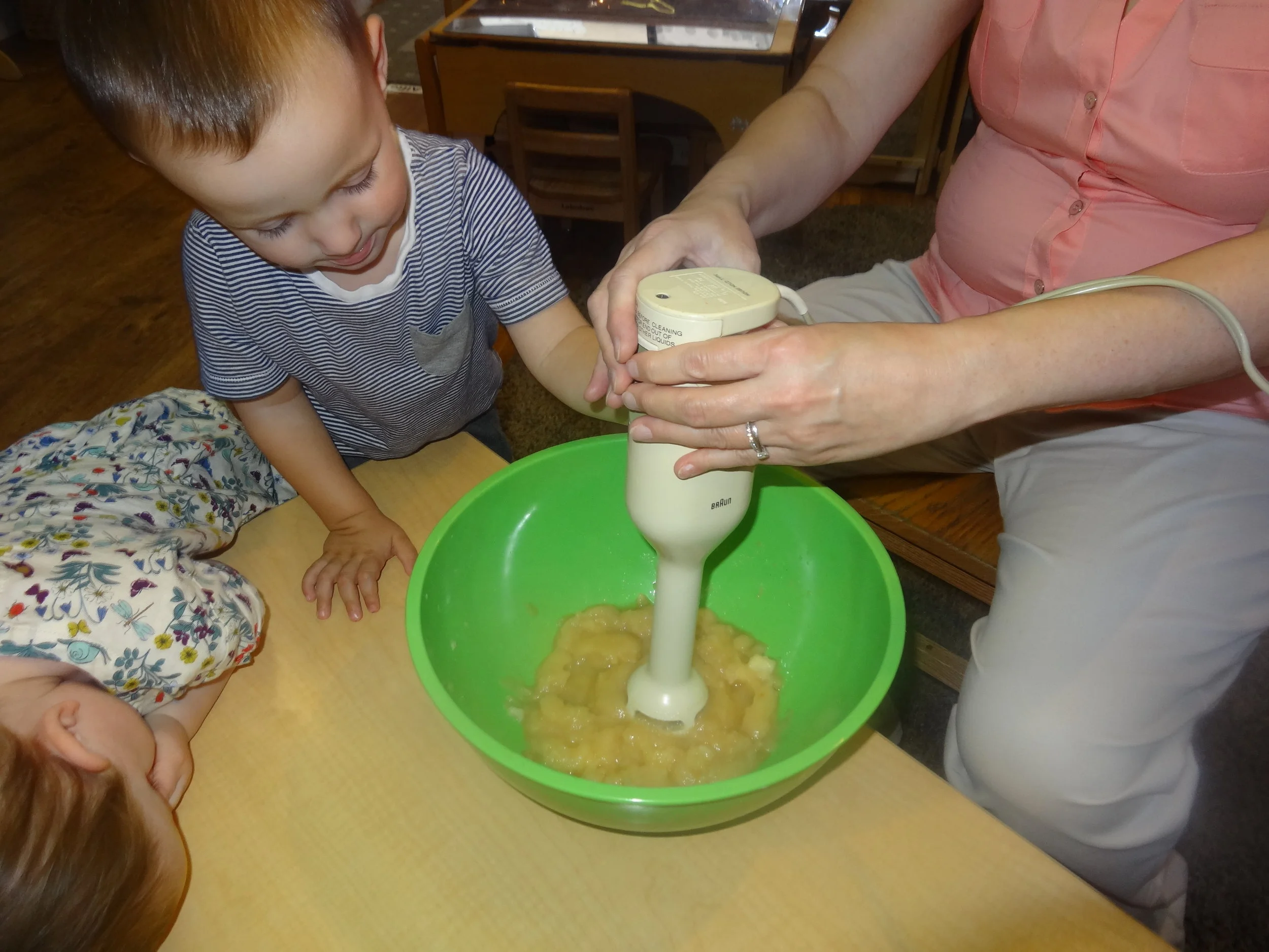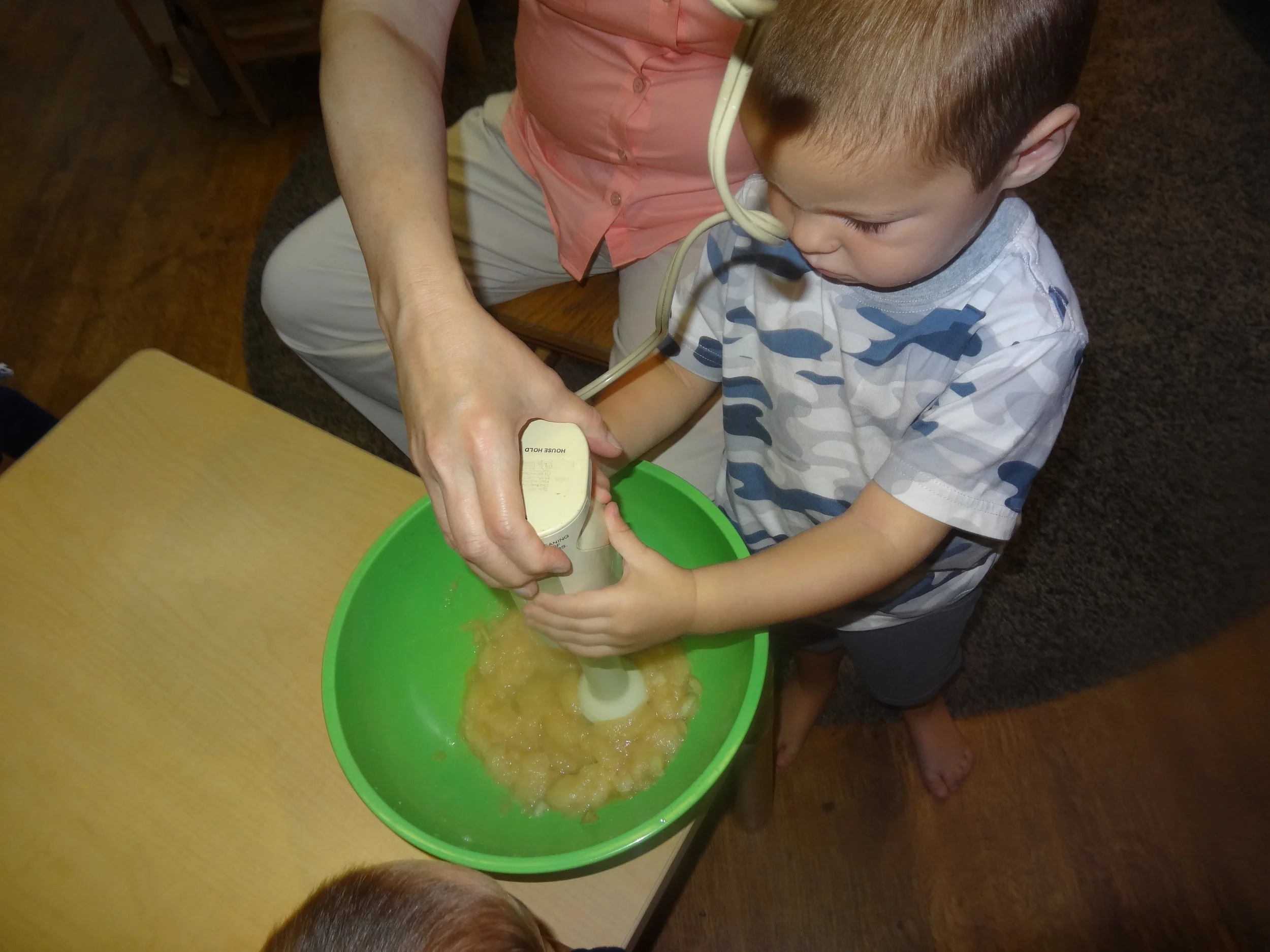 This week we made applesauce with Diane and guacamole in the class with Debbie and Hillary. Alfie was so excited to wear the chef hat. Jude loved helping the class mash the avocado and Devin loved eating the guacamole with chips, while Grady preferred just the chips.