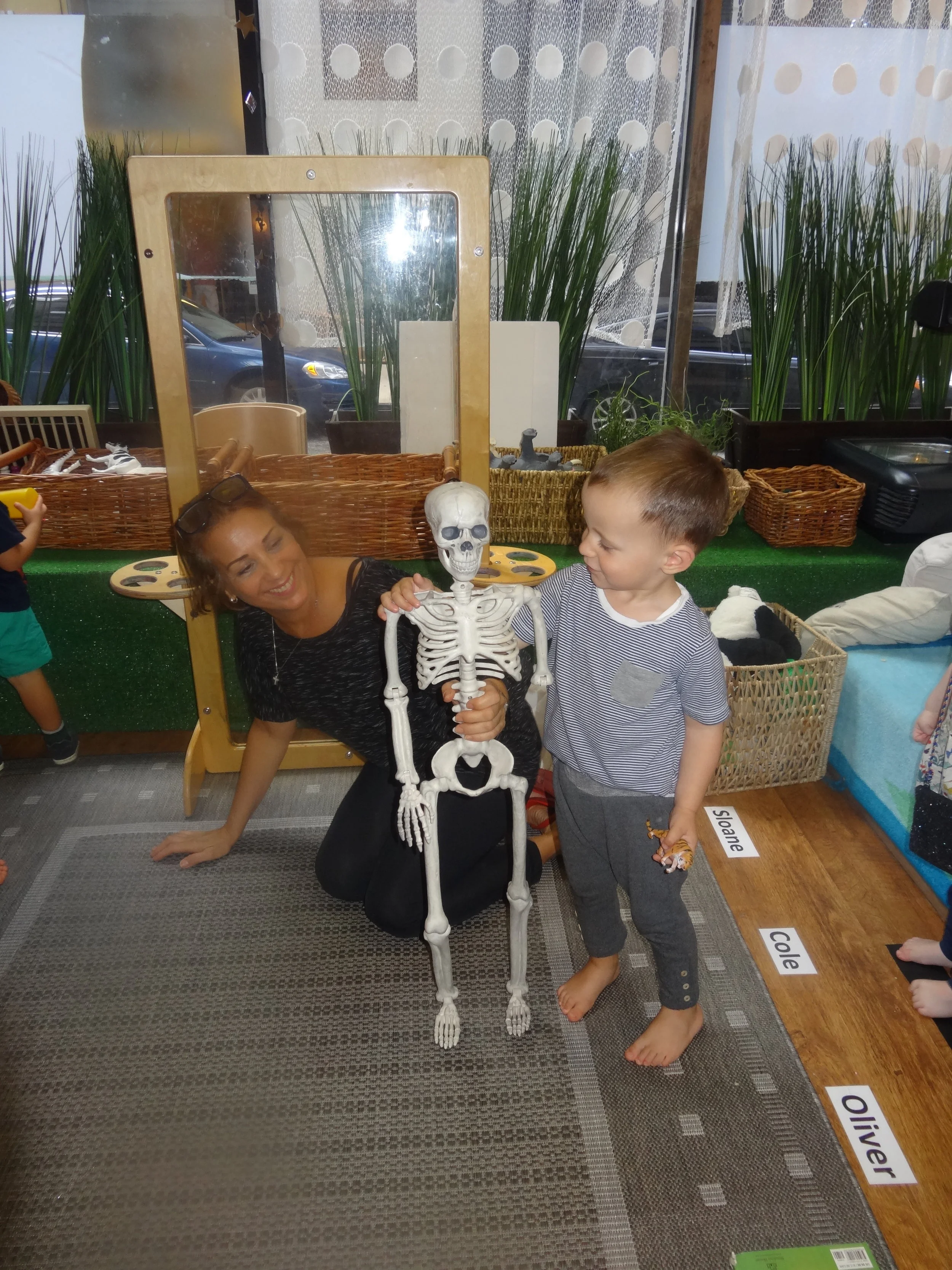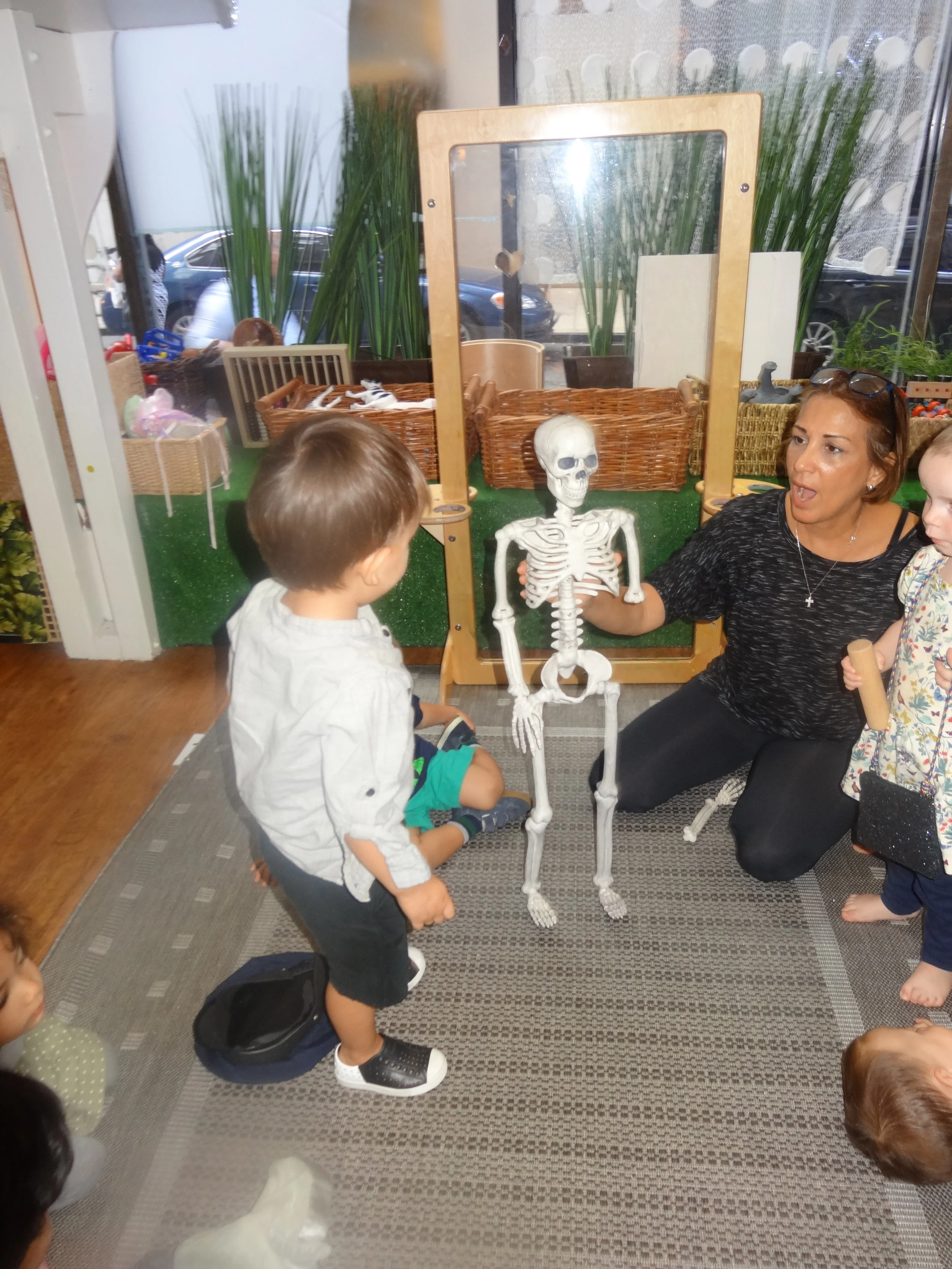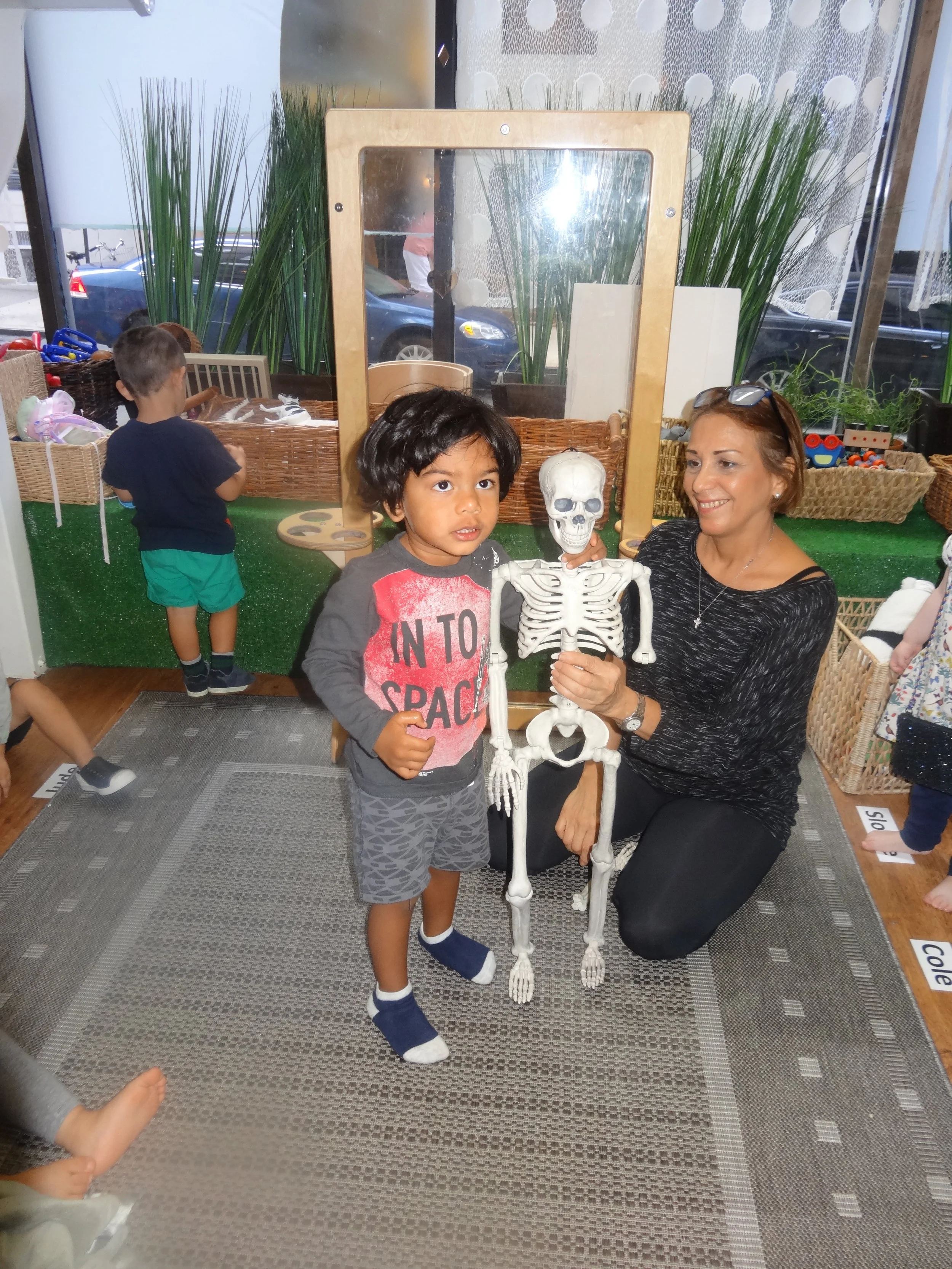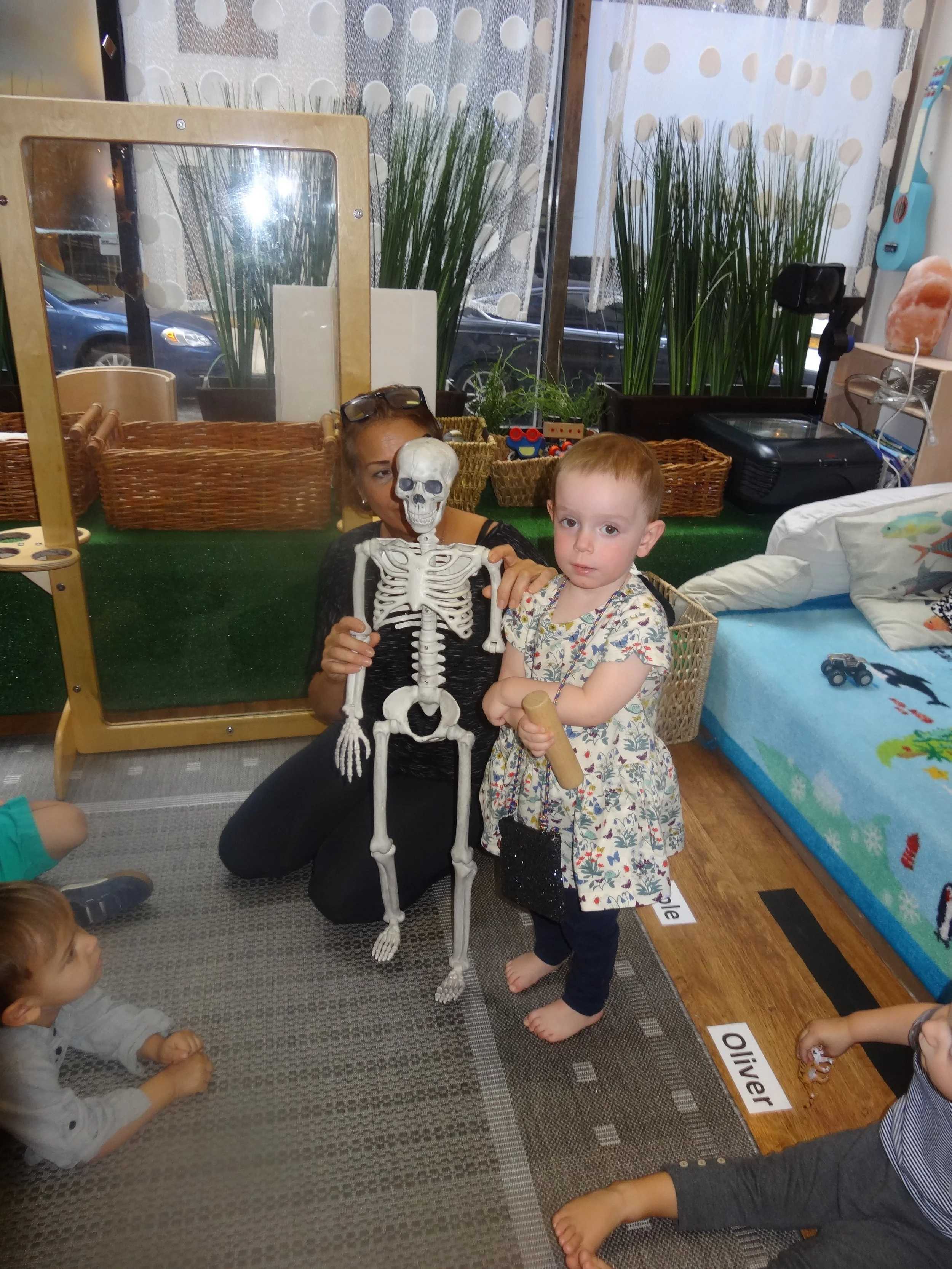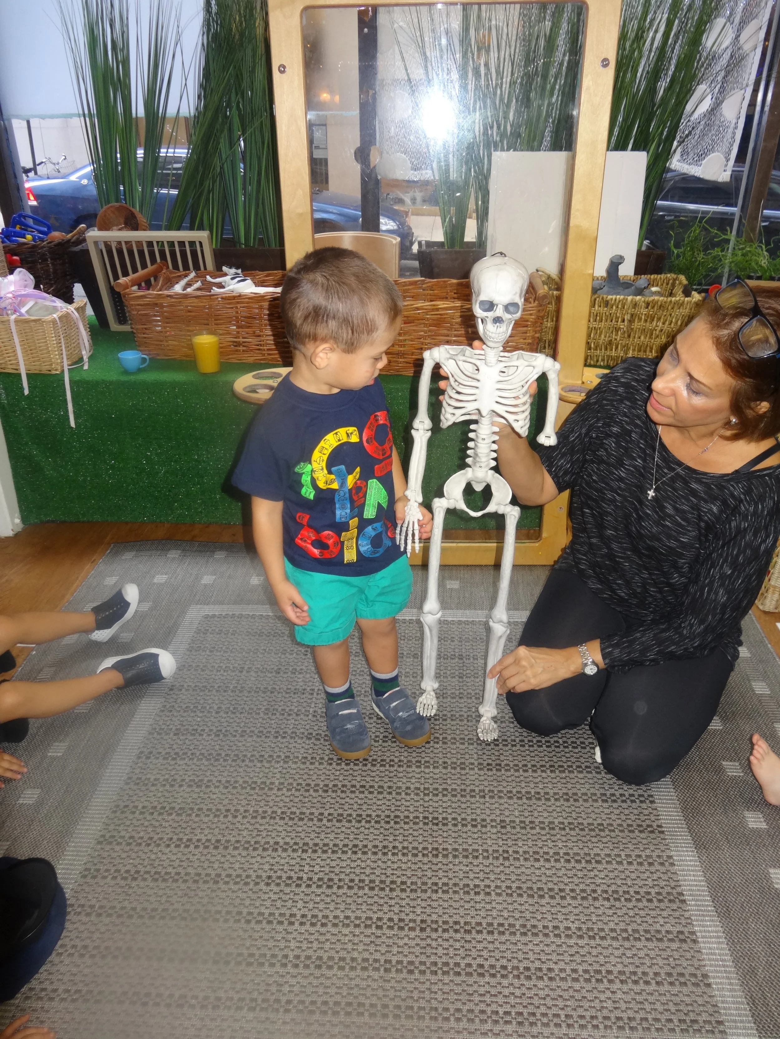 In Spanish, we sang songs about fast and slow with our hands and feet and this week during morning meetings, we brought out Mr. Skeleton to help us learn about the body and we sang head shoulders knees and toes. George and Oliver loved giving high 5's to our skeleton. Also, everyone in morning meeting enjoys seeing and counting who's here, singing the attendance song, and most importantly getting up to dance during our turn!