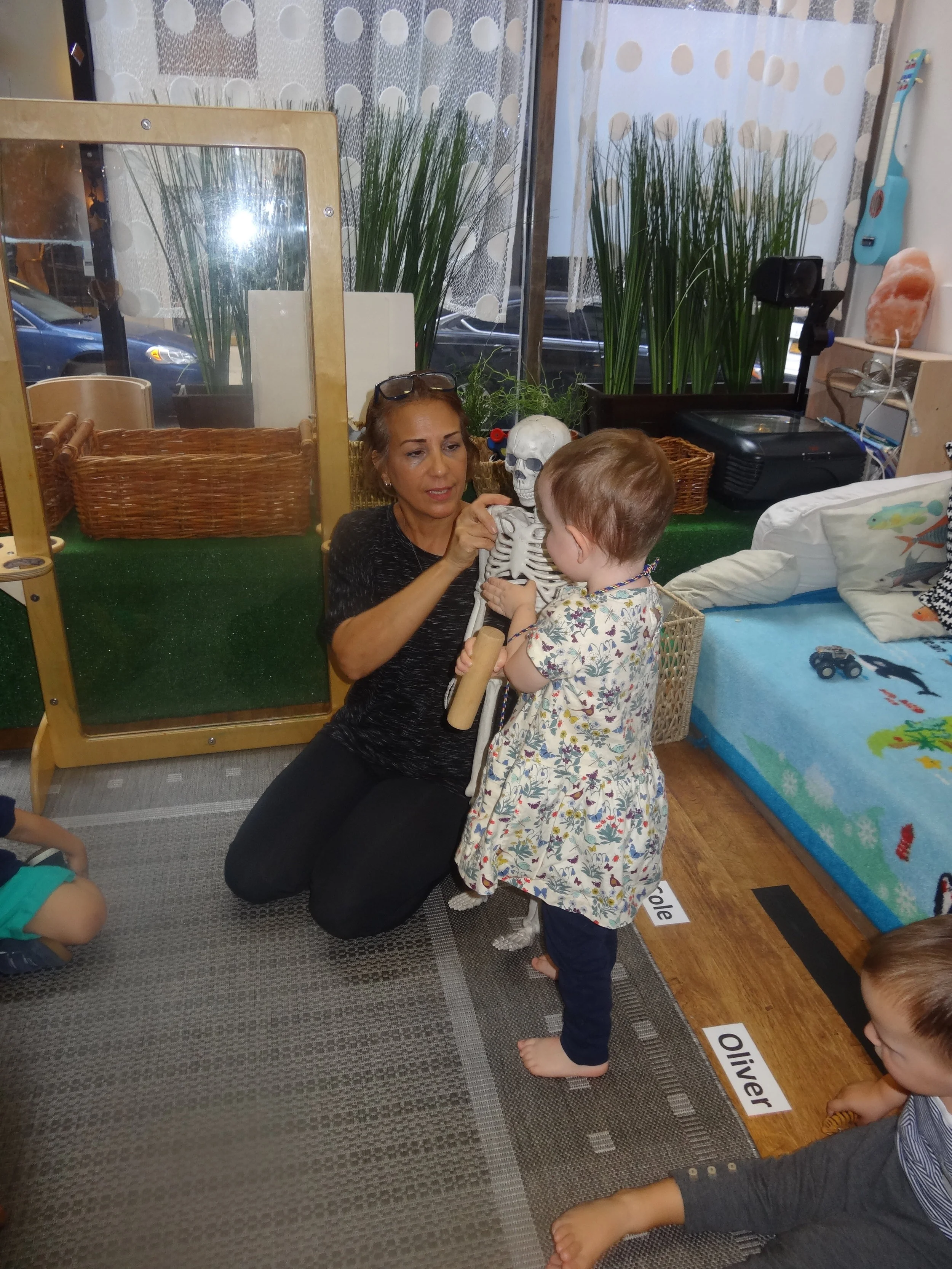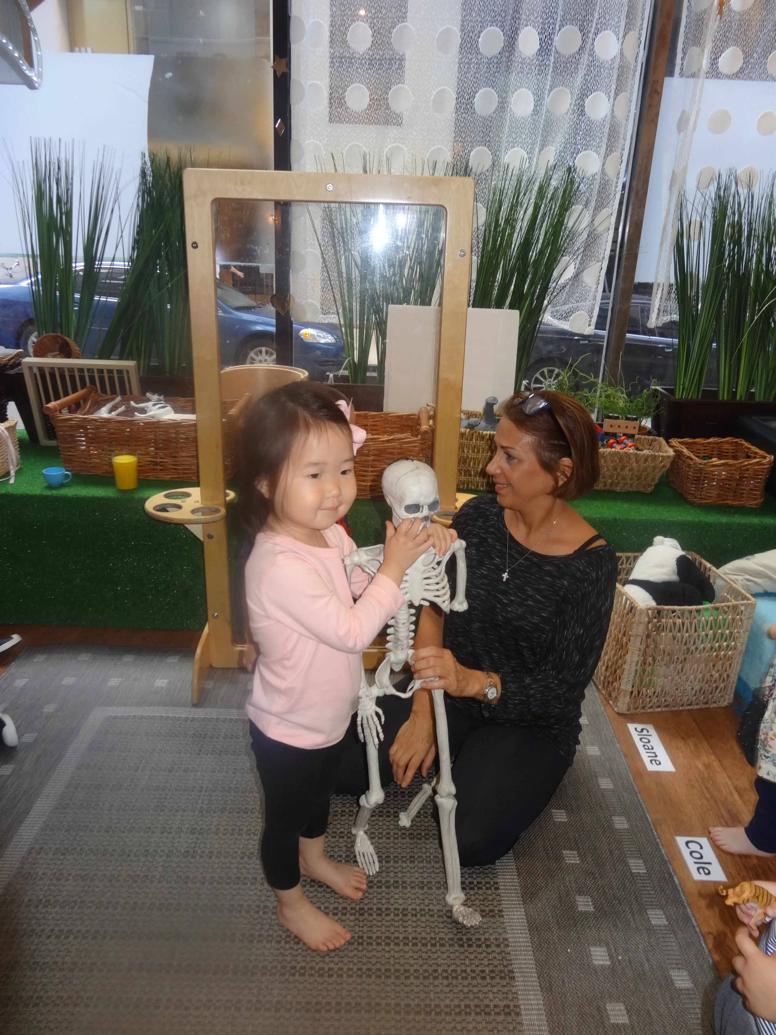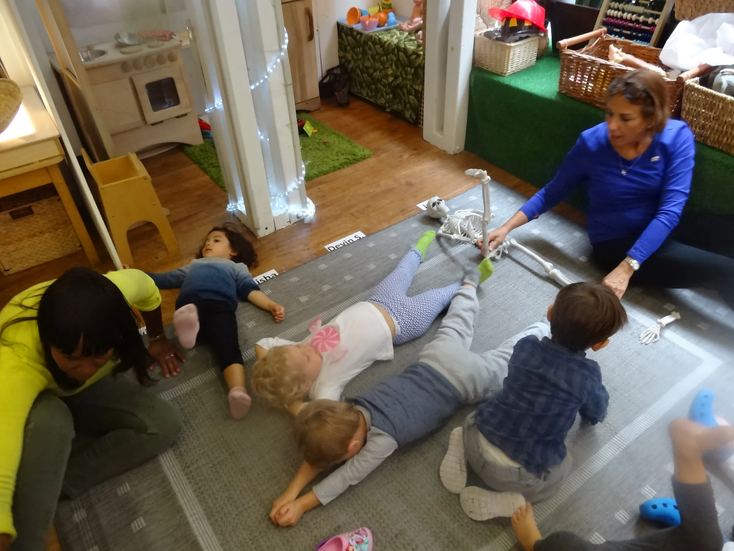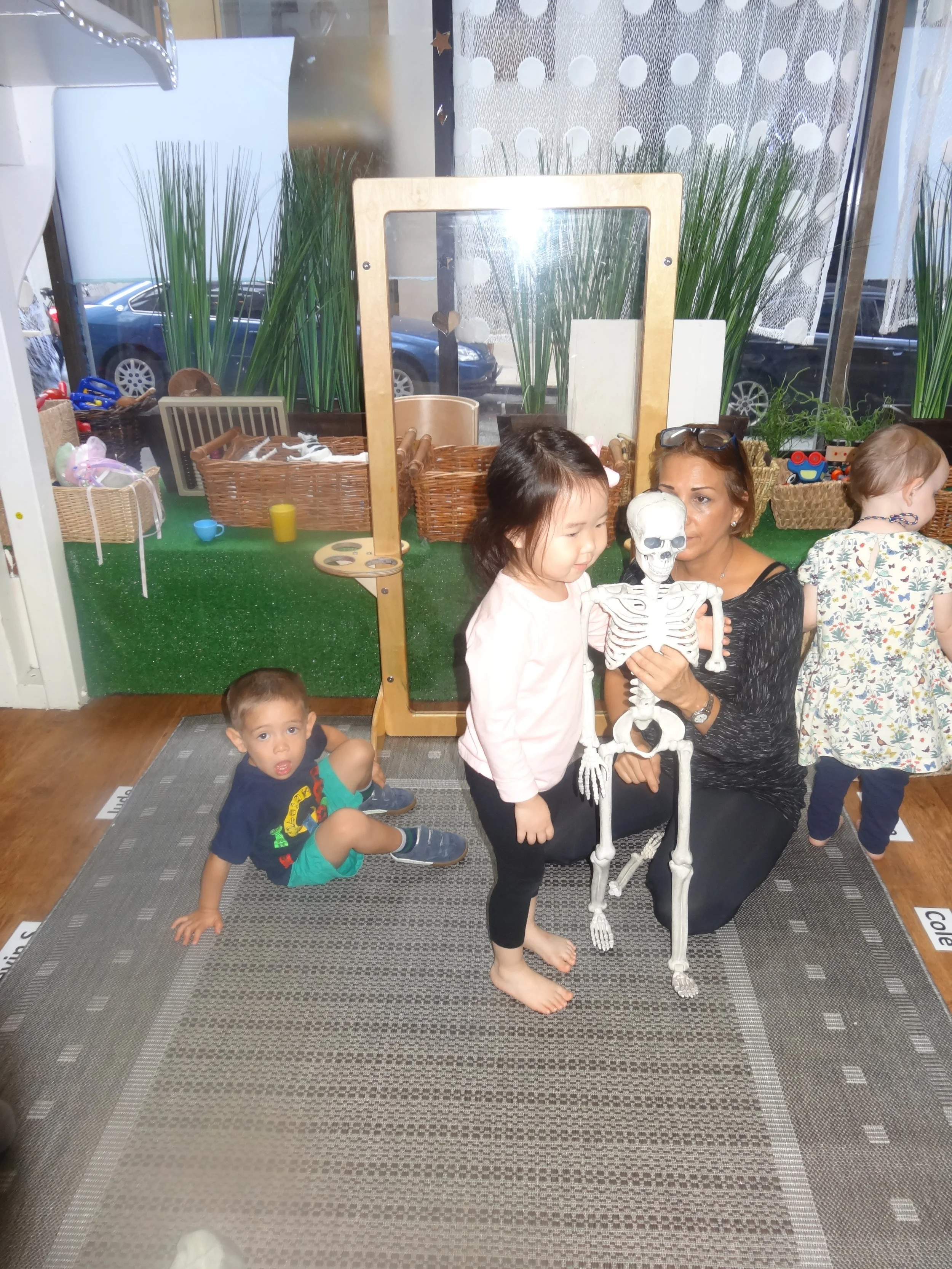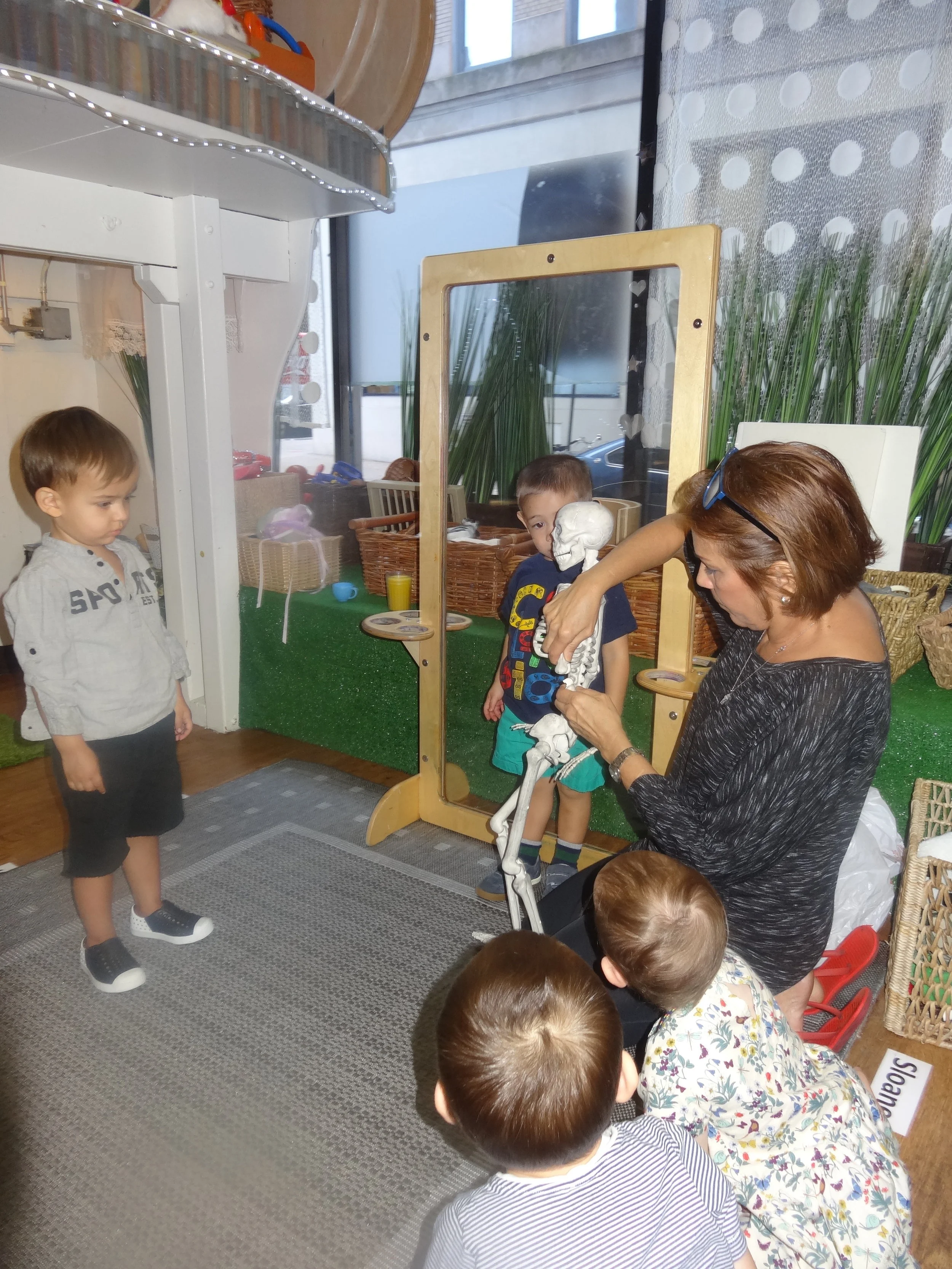 In Spanish, we sang songs about fast and slow with our hands and feet and this week during morning meetings, we brought out Mr. Skeleton to help us learn about the body and we sang head shoulders knees and toes. George and Oliver loved giving high 5's to our skeleton. Also, everyone in morning meeting enjoys seeing and counting who's here, singing the attendance song, and most importantly getting up to dance during our turn!