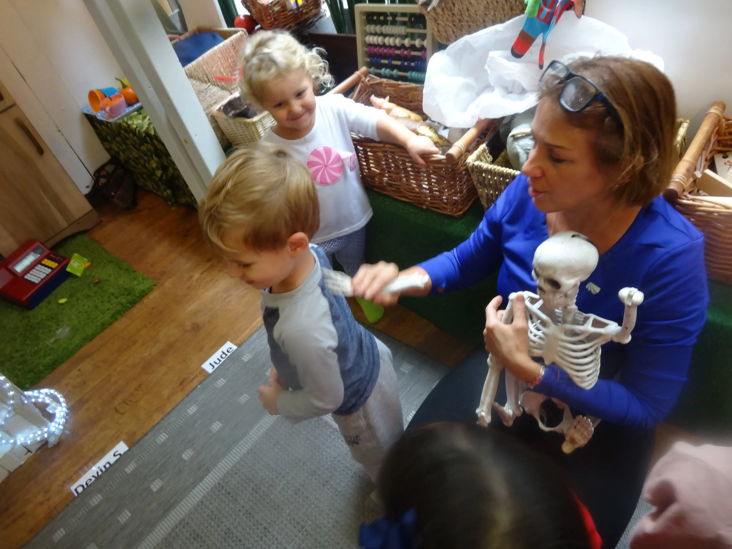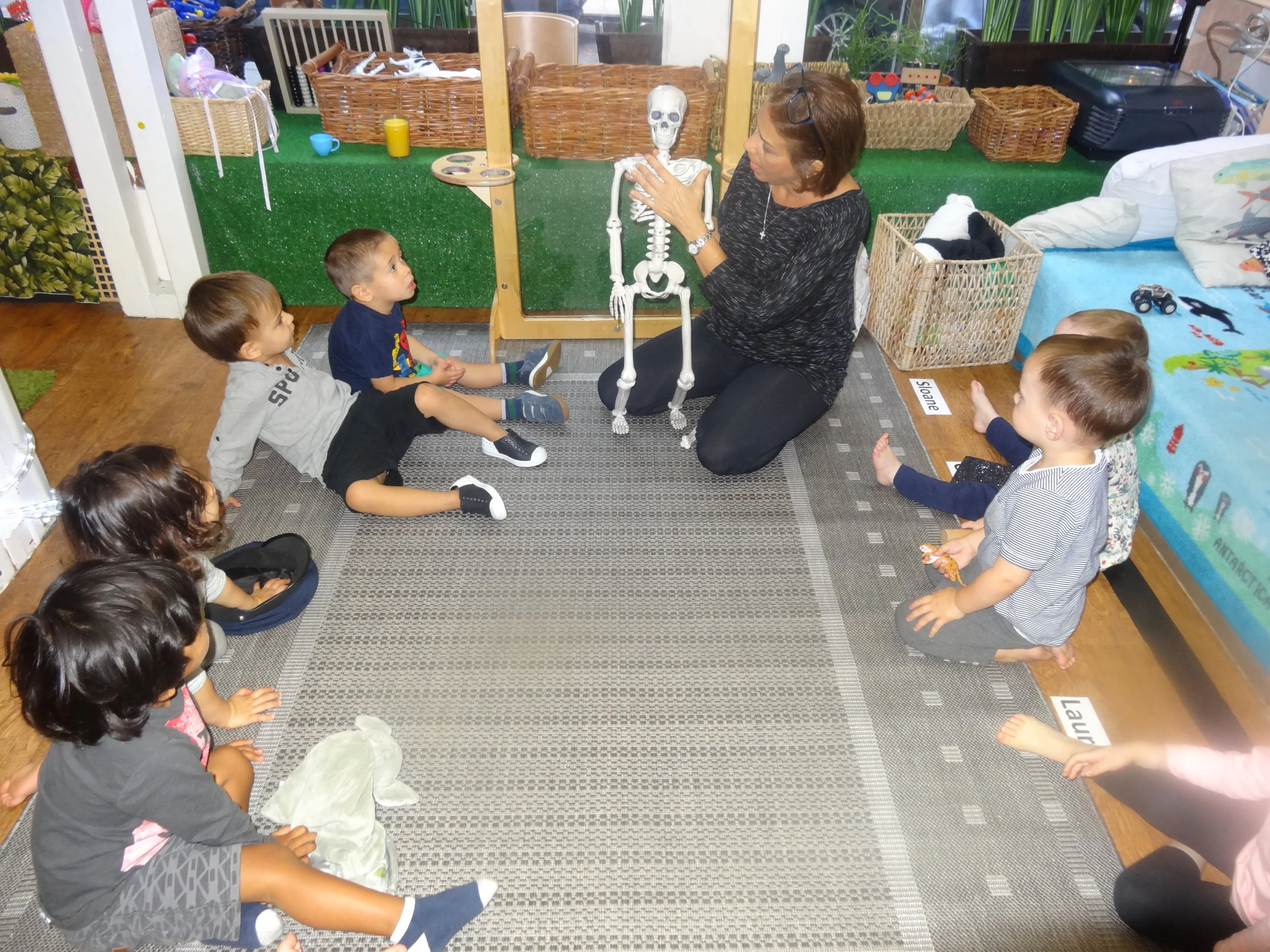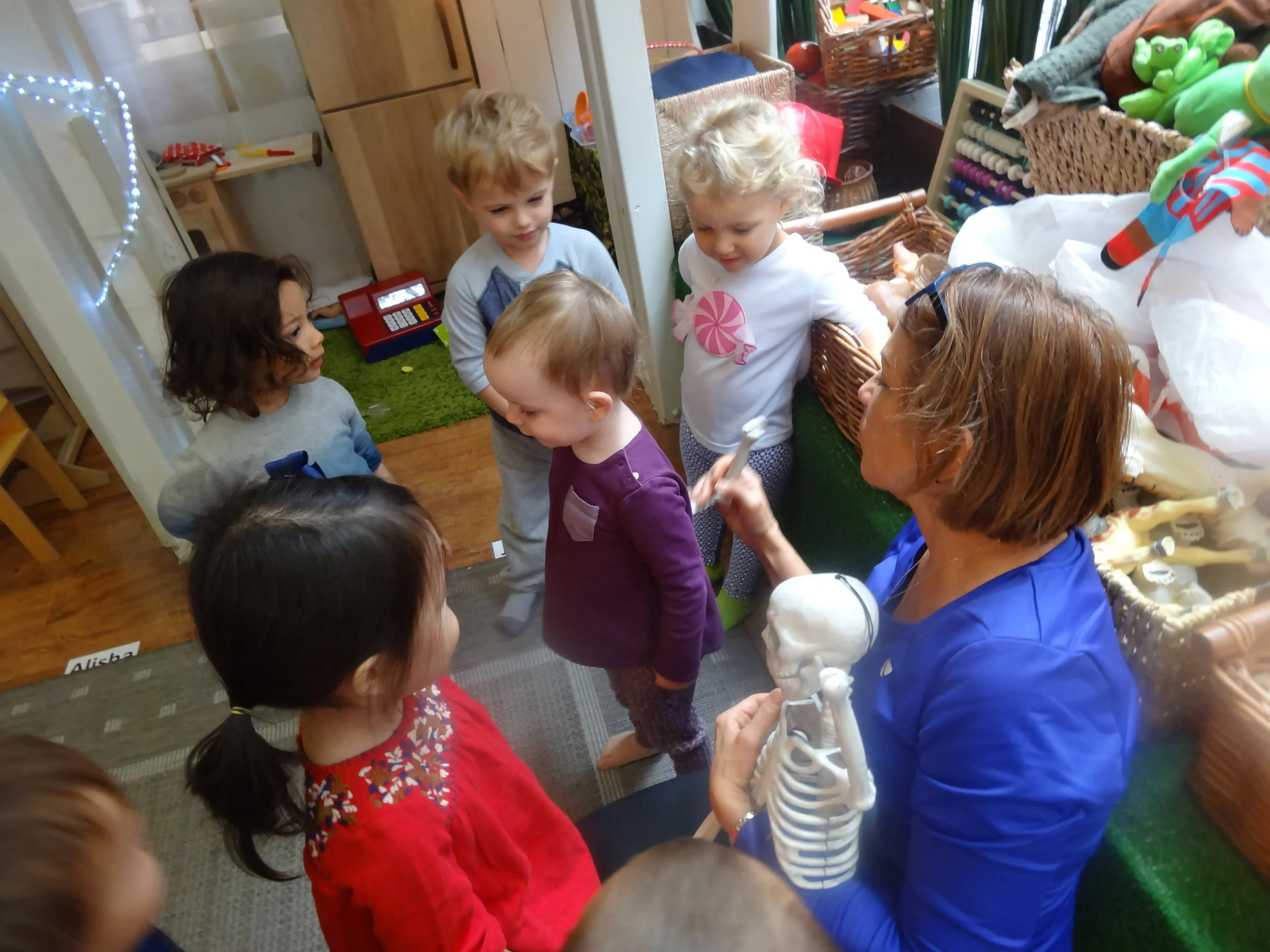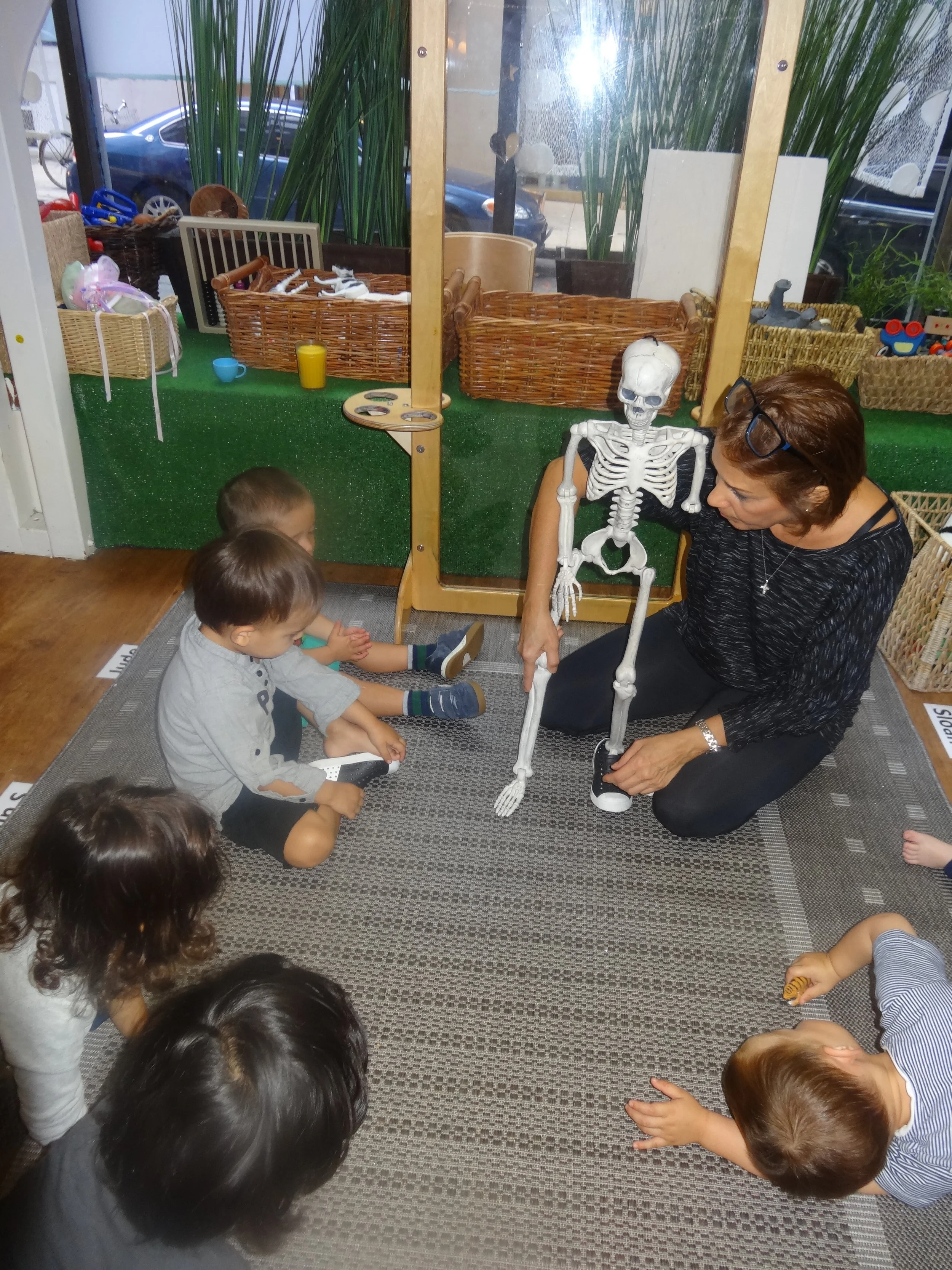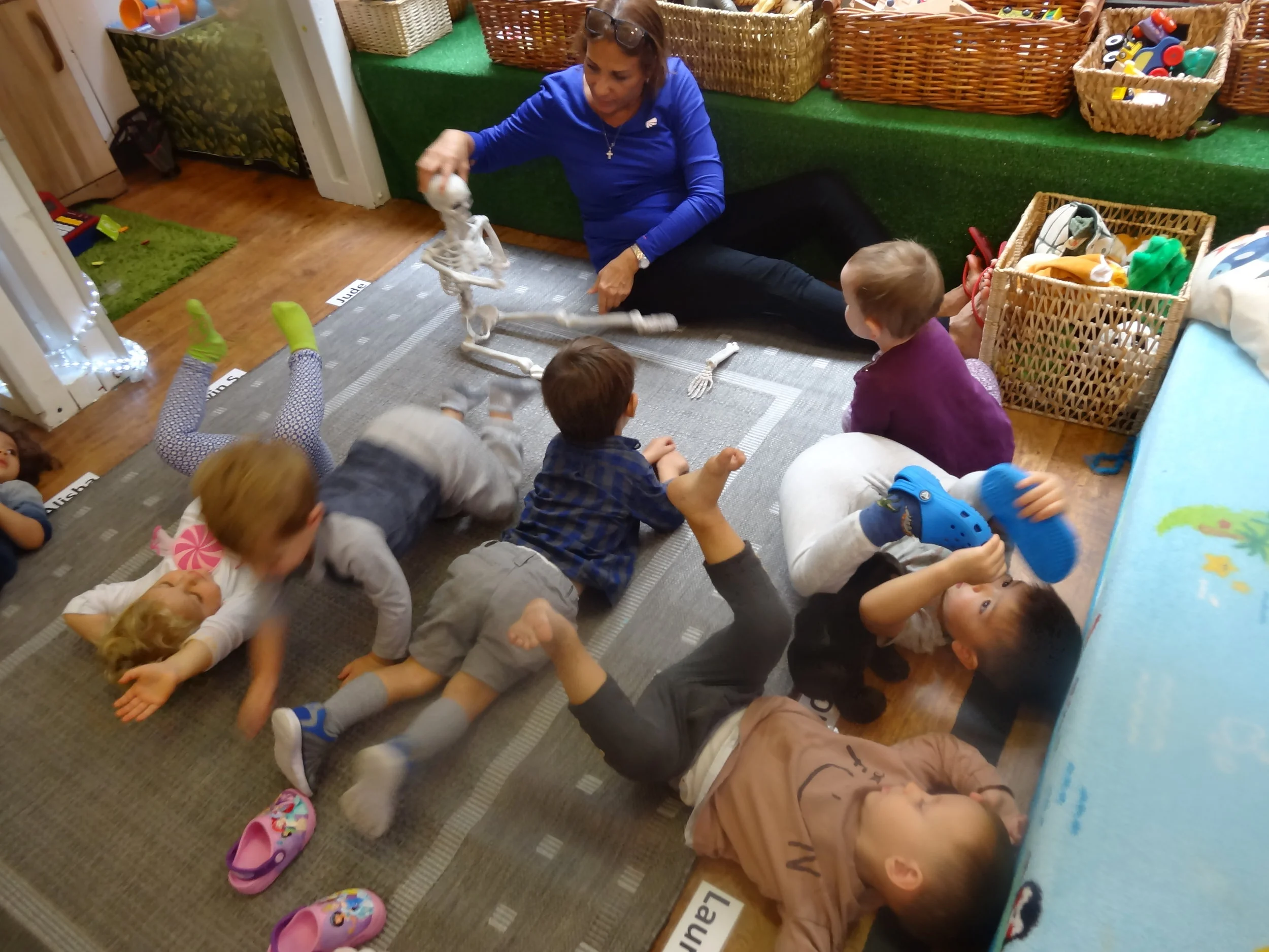 In Spanish, we sang songs about fast and slow with our hands and feet and this week during morning meetings, we brought out Mr. Skeleton to help us learn about the body and we sang head shoulders knees and toes. George and Oliver loved giving high 5's to our skeleton. Also, everyone in morning meeting enjoys seeing and counting who's here, singing the attendance song, and most importantly getting up to dance during our turn!