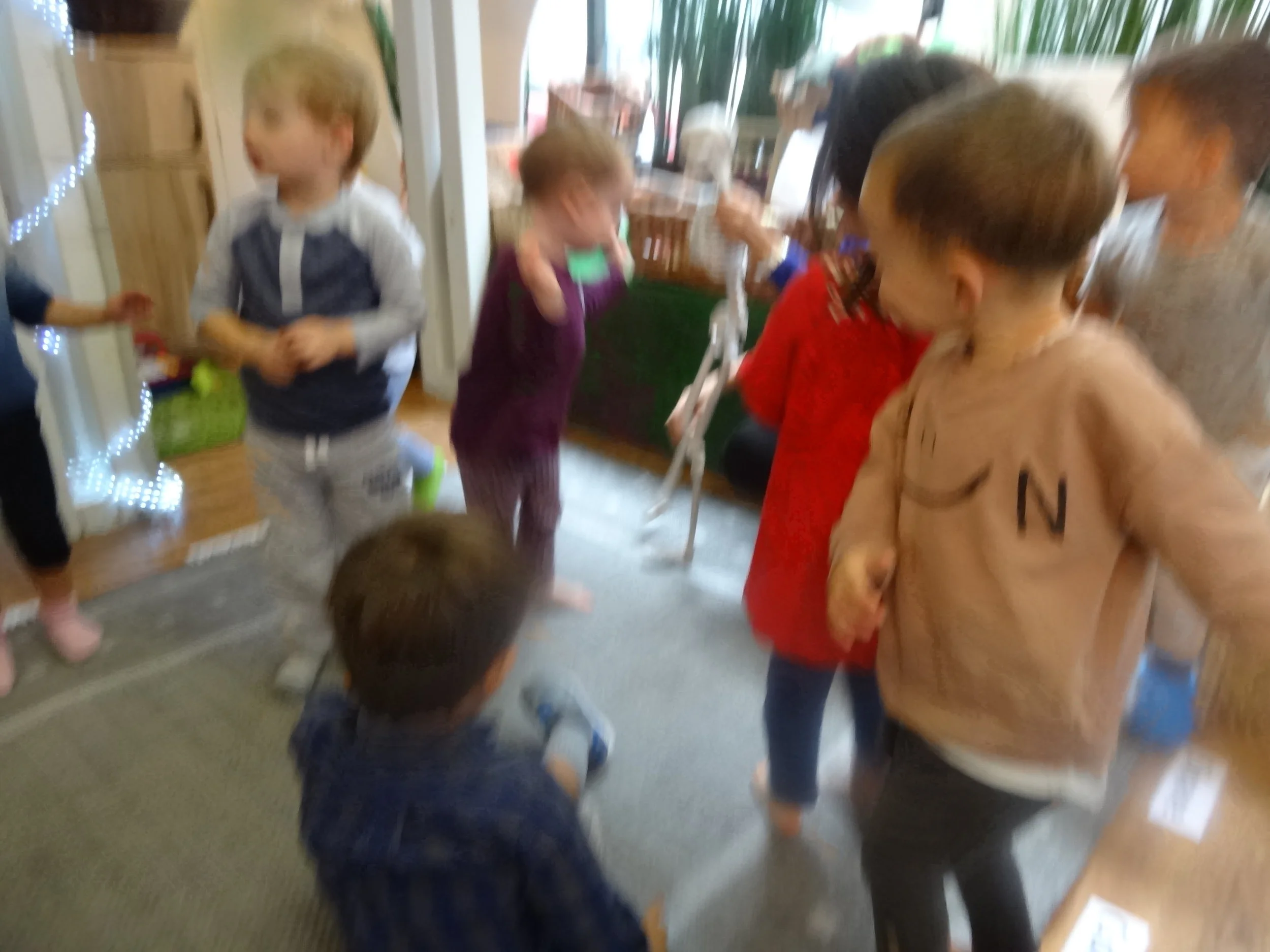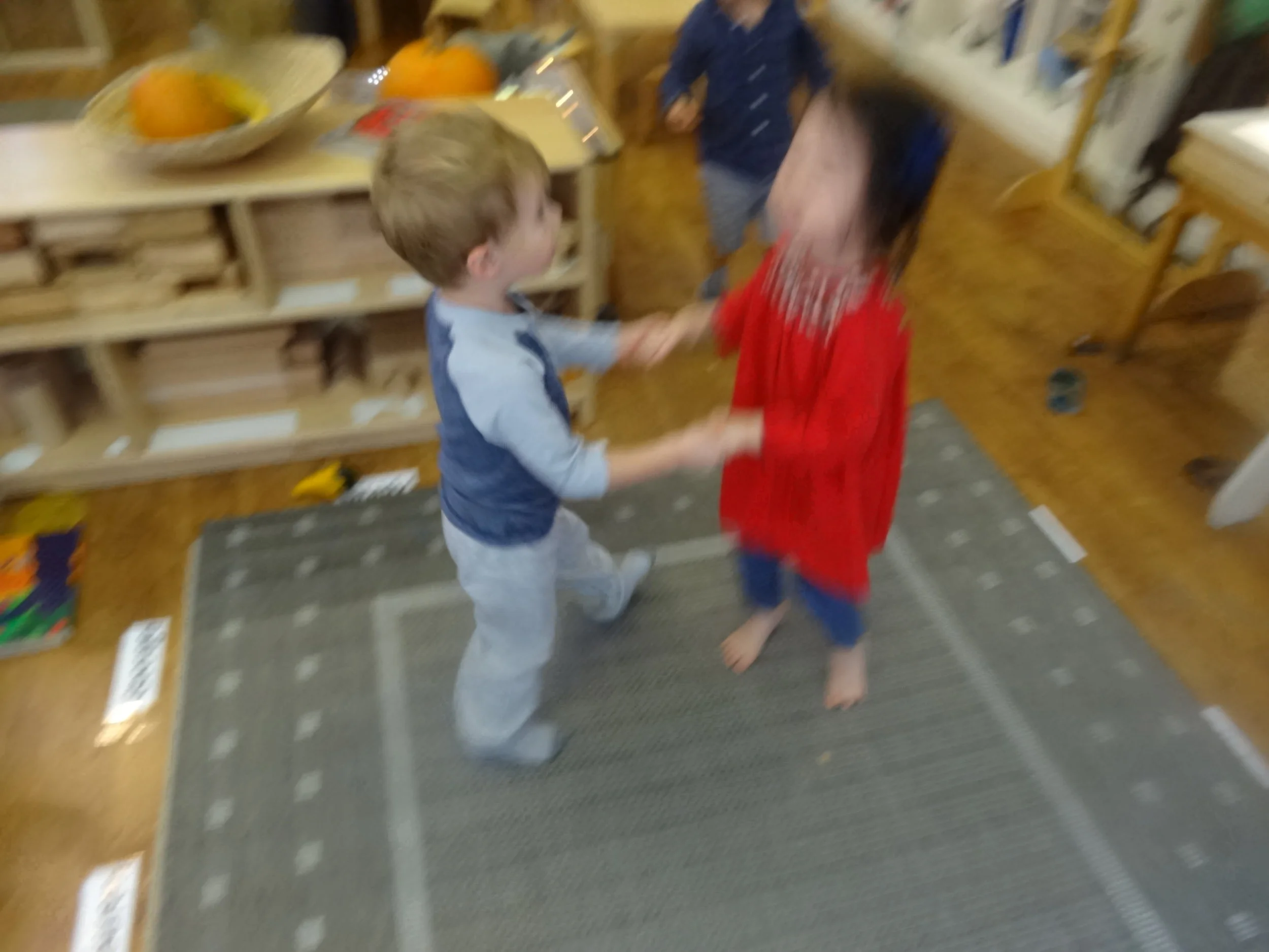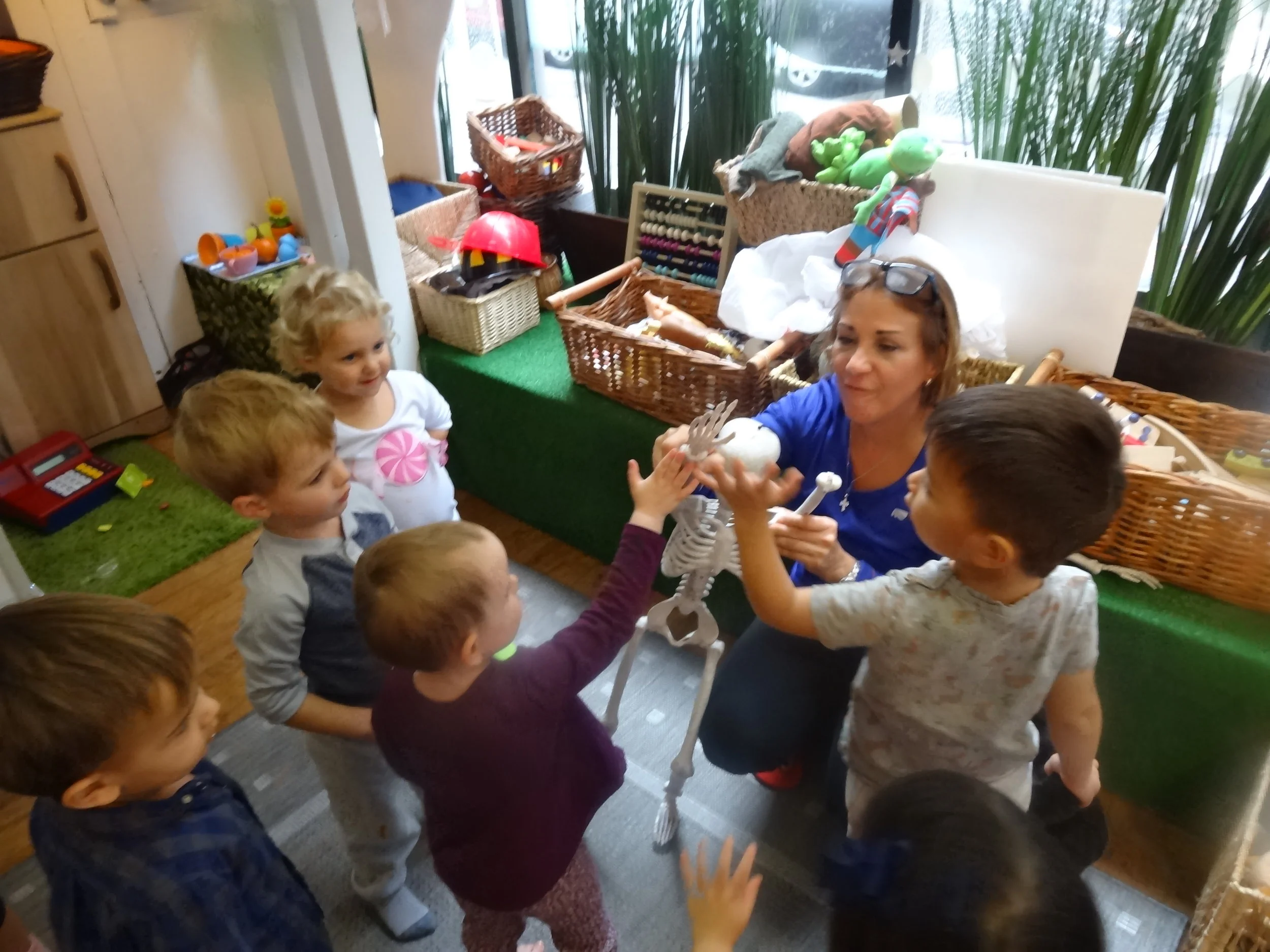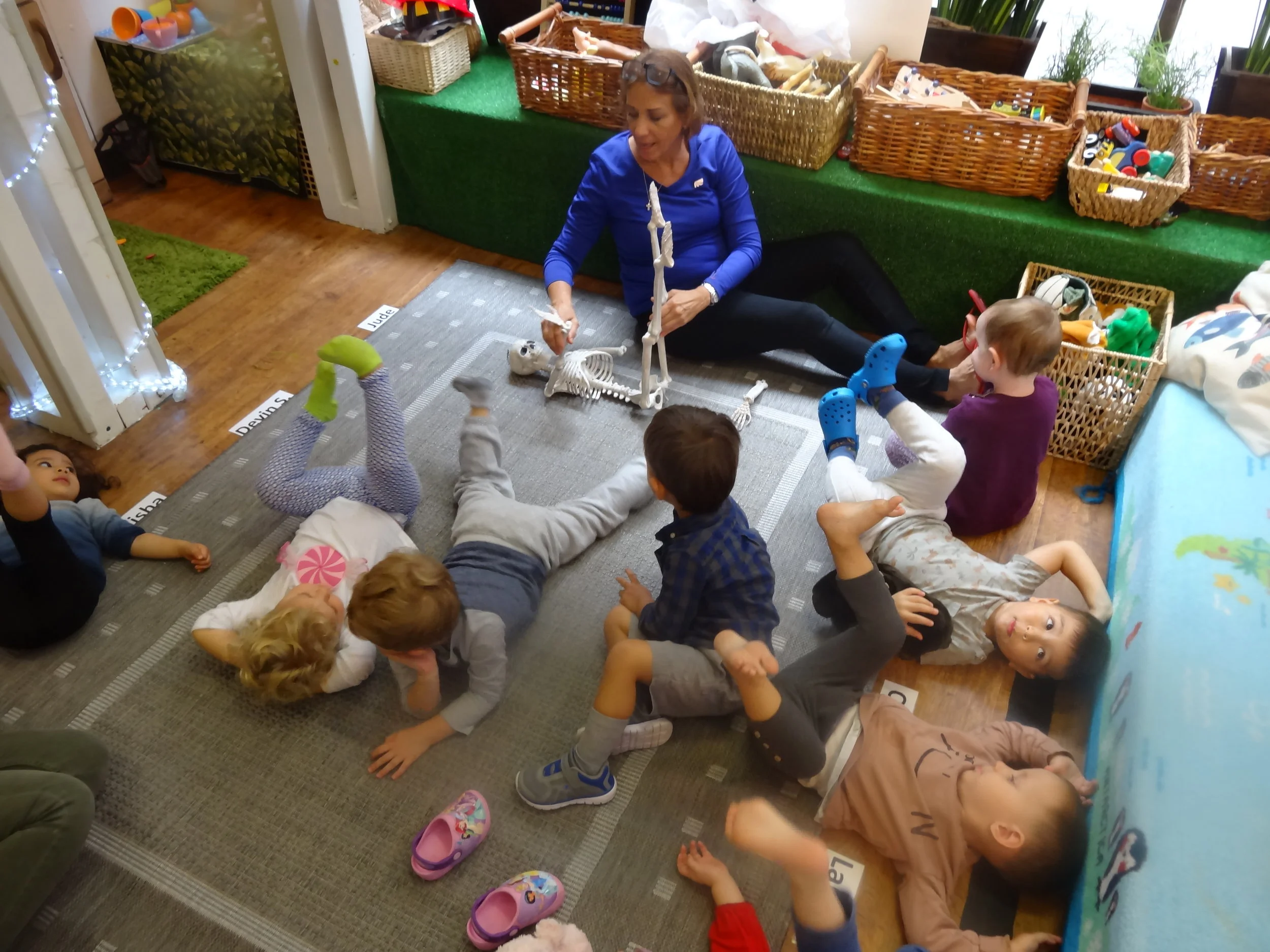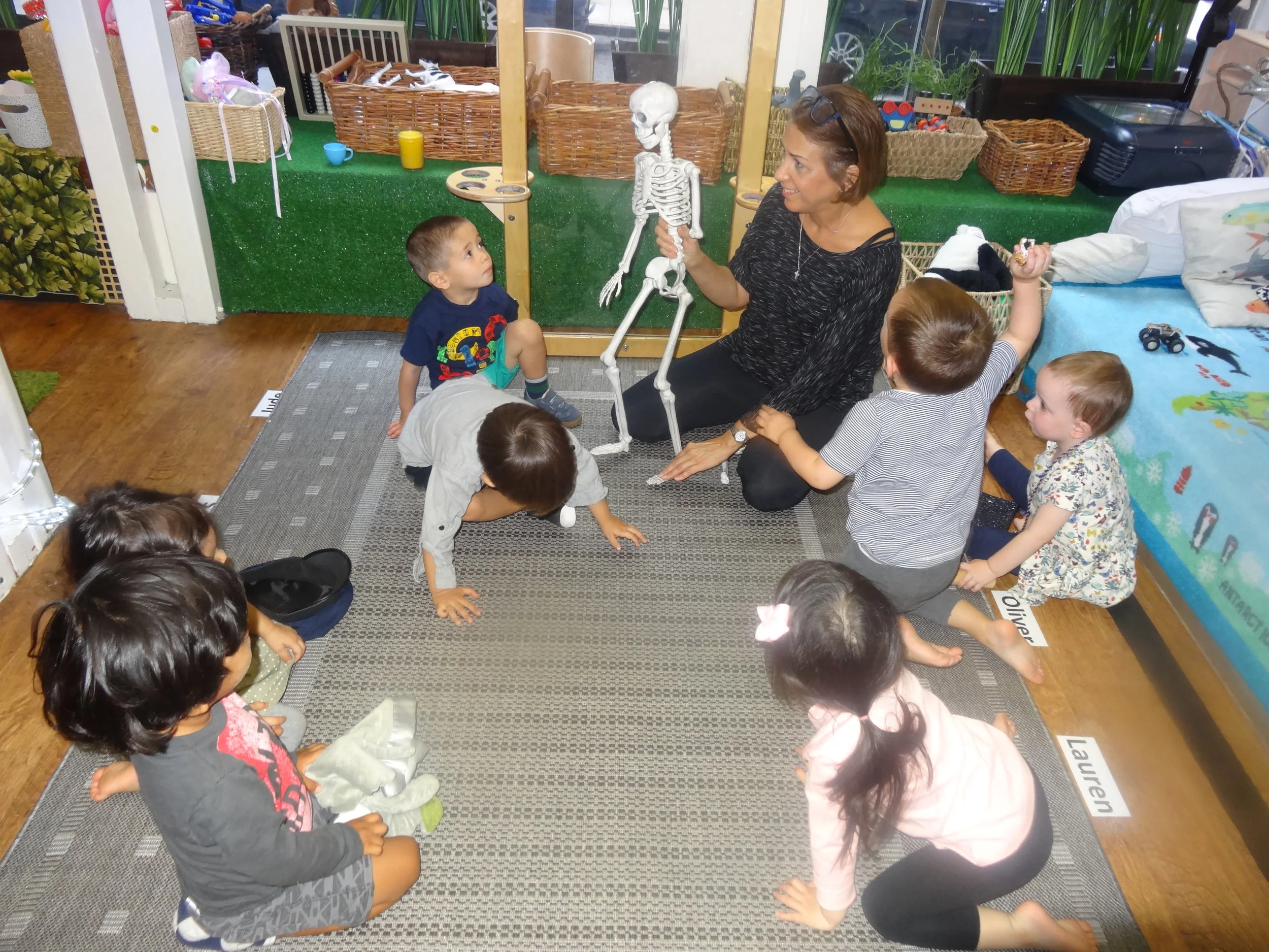 In Spanish, we sang songs about fast and slow with our hands and feet and this week during morning meetings, we brought out Mr. Skeleton to help us learn about the body and we sang head shoulders knees and toes. George and Oliver loved giving high 5's to our skeleton. Also, everyone in morning meeting enjoys seeing and counting who's here, singing the attendance song, and most importantly getting up to dance during our turn!