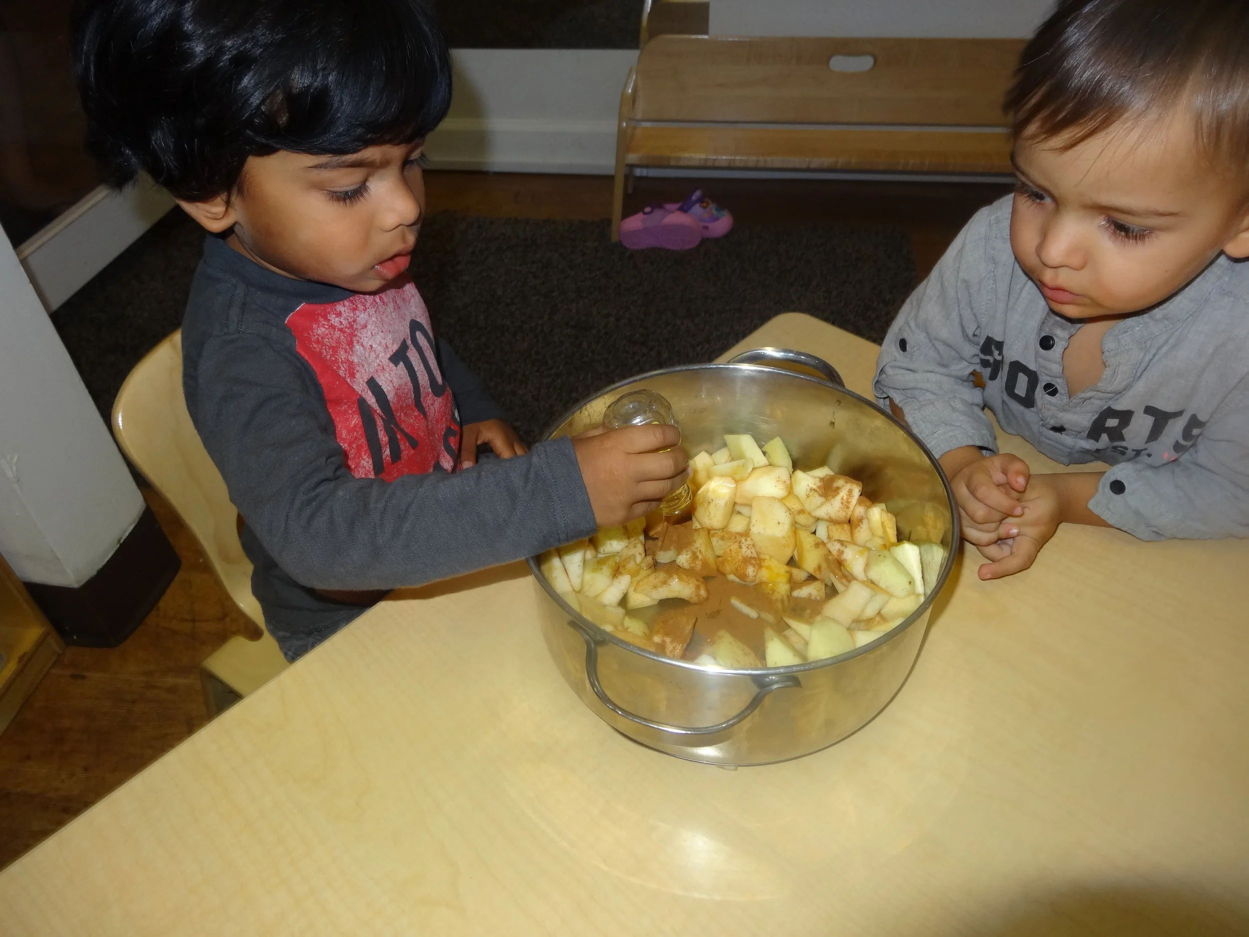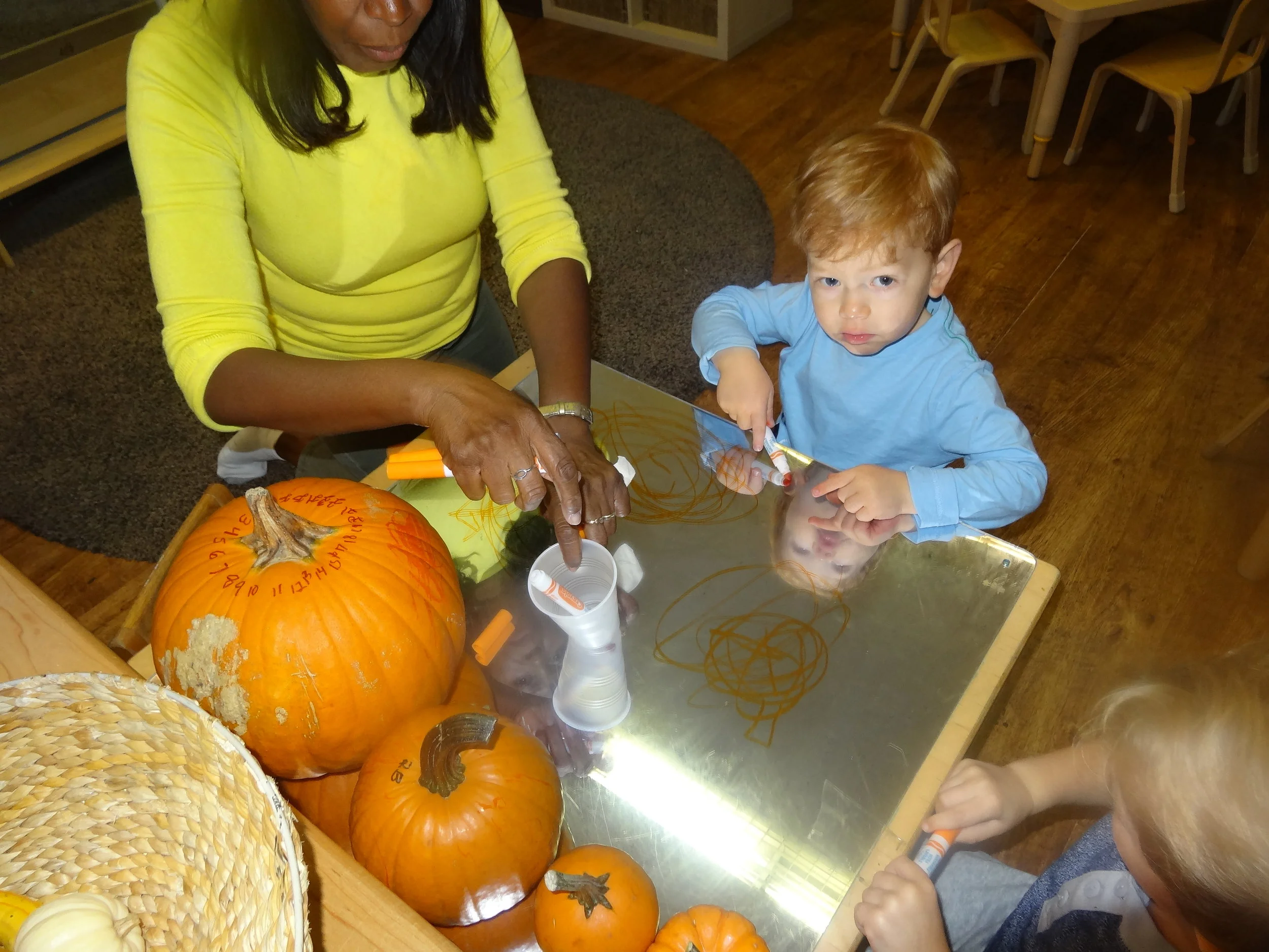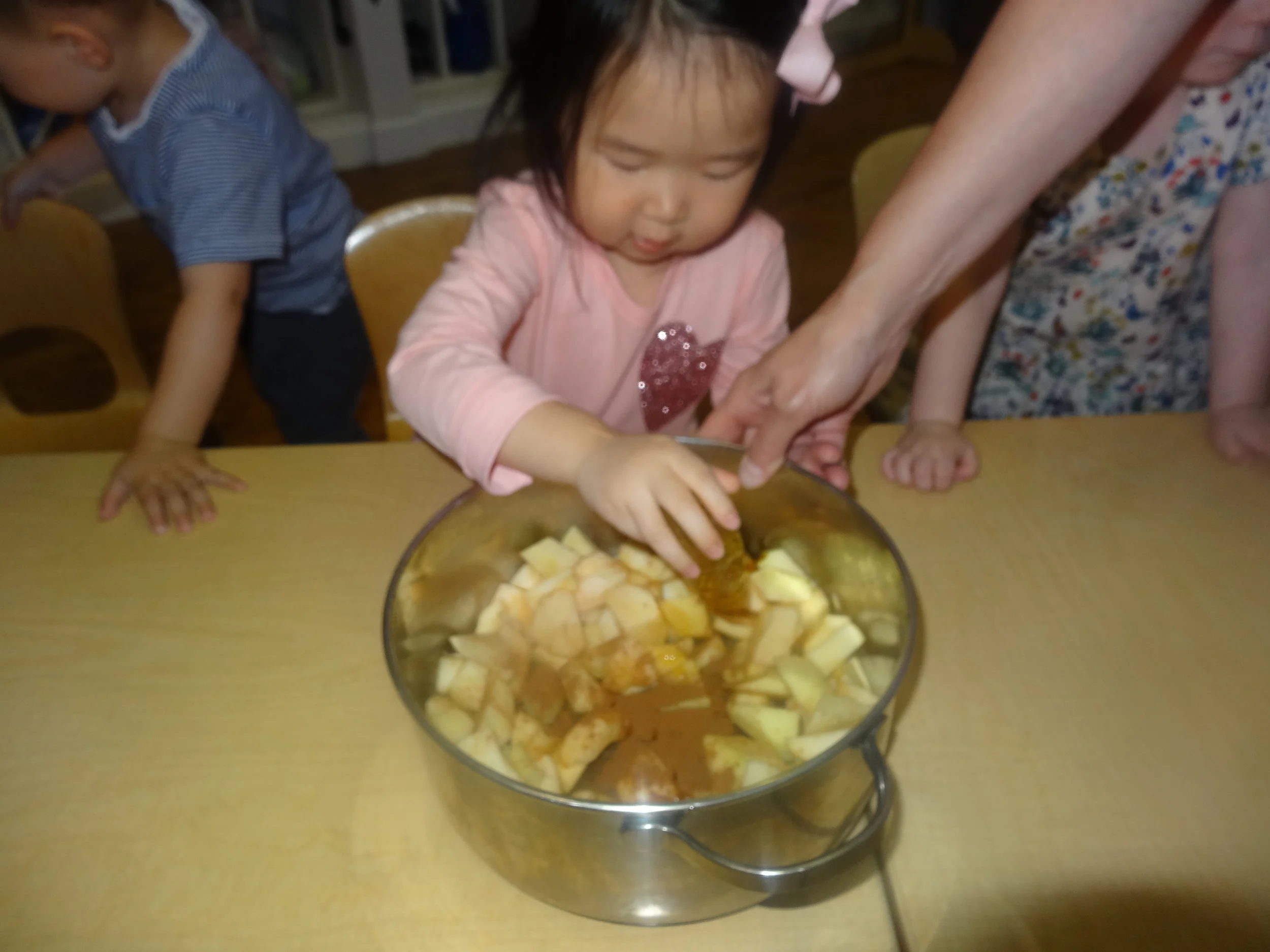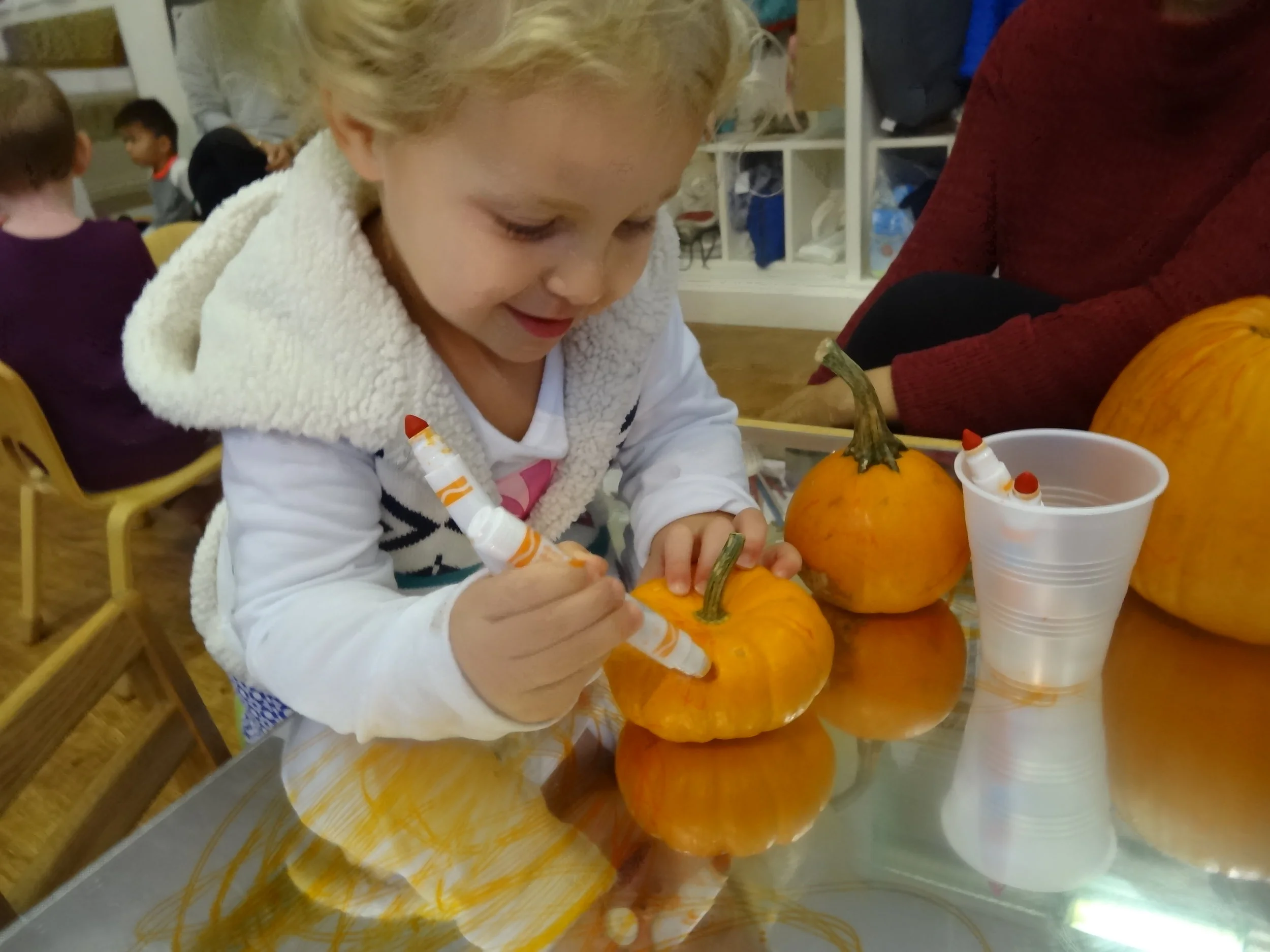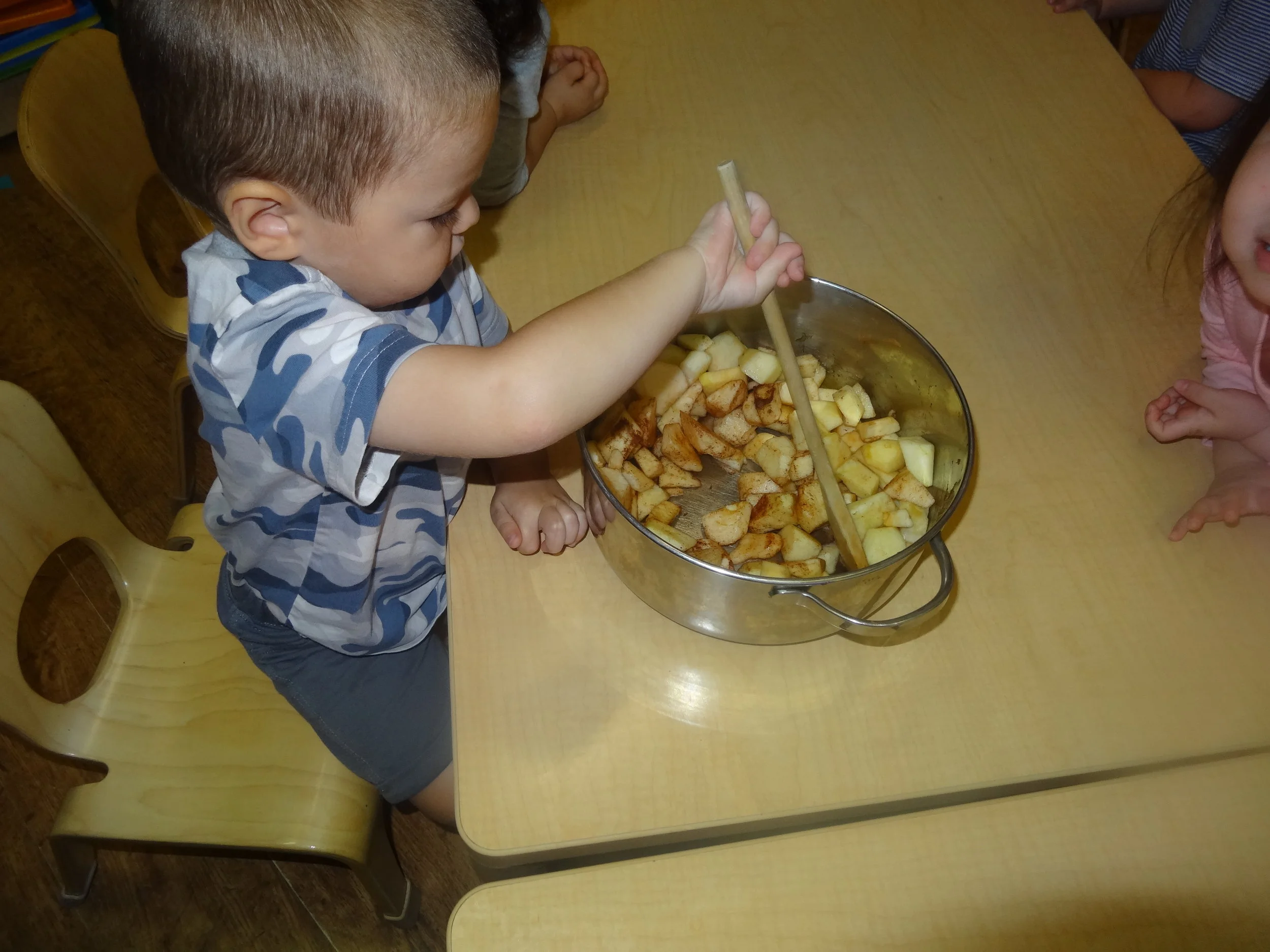 This week, we were able to make choices, explore, and create around our theme. Big or small, white or orange, stir and mash, taste and smell, seeing the other class at the neighborhood market or seeing the other BMS kids at the apple picking farm are perfect ways to connect and create self-confidence making learning fun!