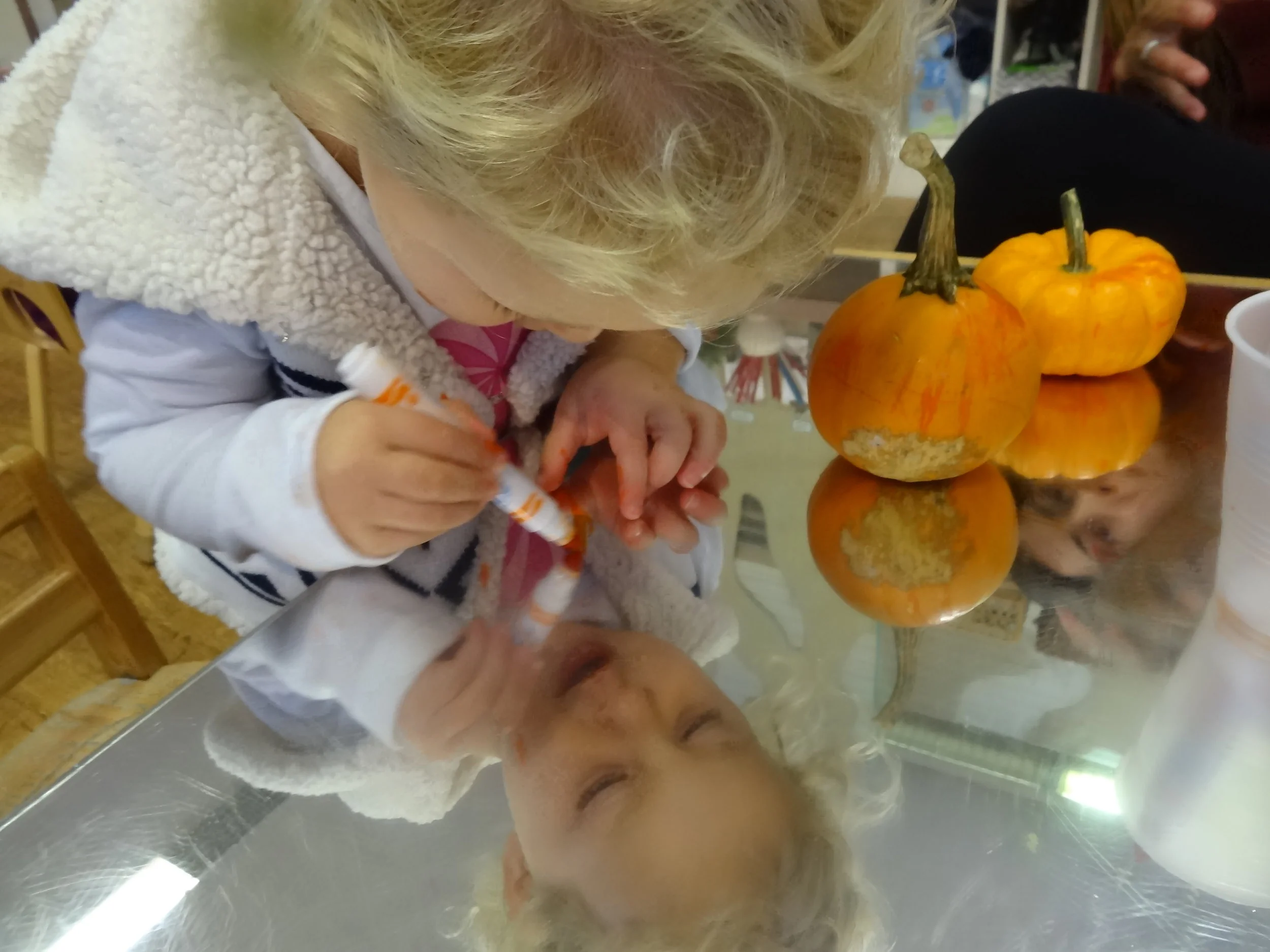 In art this week we worked on our self potraits, pumpkin portraits, created a fall collage and made clay pumpkin sculptures. Lauren put so much focus into her self portrait, while Romeo put so much focus into his clay pumpkin. Devi enjoyed coloring her reflection on the mirror. How amazing it is to see everyone involved in different art projects.