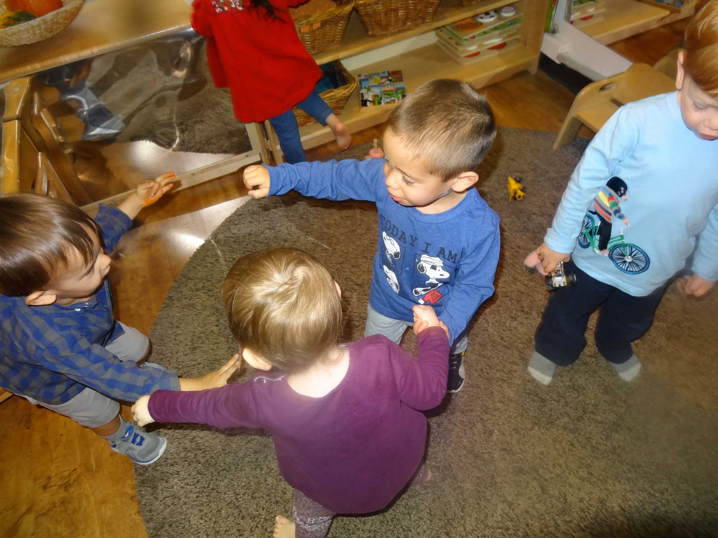 This week our focus has been on identity, mirroring, and our parents coming and going. We are learning names and faces, we are learning times and schedules, and we are learning about the likes and dislikes of ourselves and others.