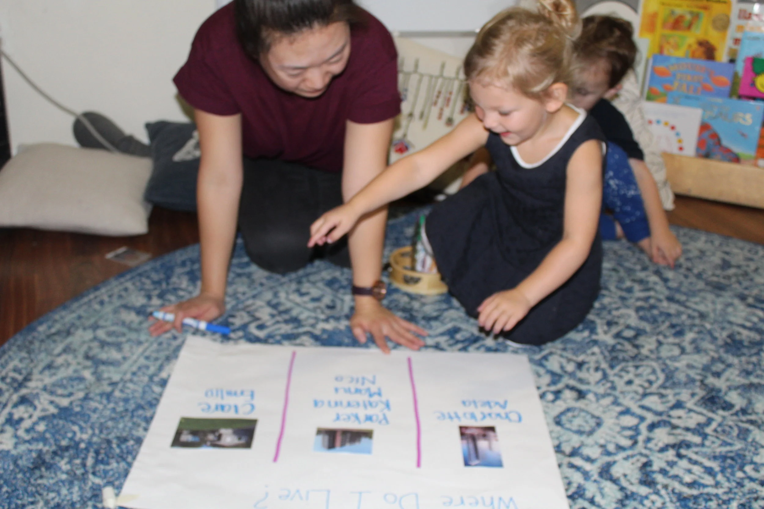 During our clay and blocks workshops a week ago, the 3A educators noticed that the children were interested in their homes. So we started asking the question "Where do I live?" We had a picture of a skyscraper, a low rise apartment building, and a house in order to give the children visual support. Some of our friends knew that they lived in a tall building (a skyscraper), while some said they lived in low rise building, and the rest said they lived in a house.