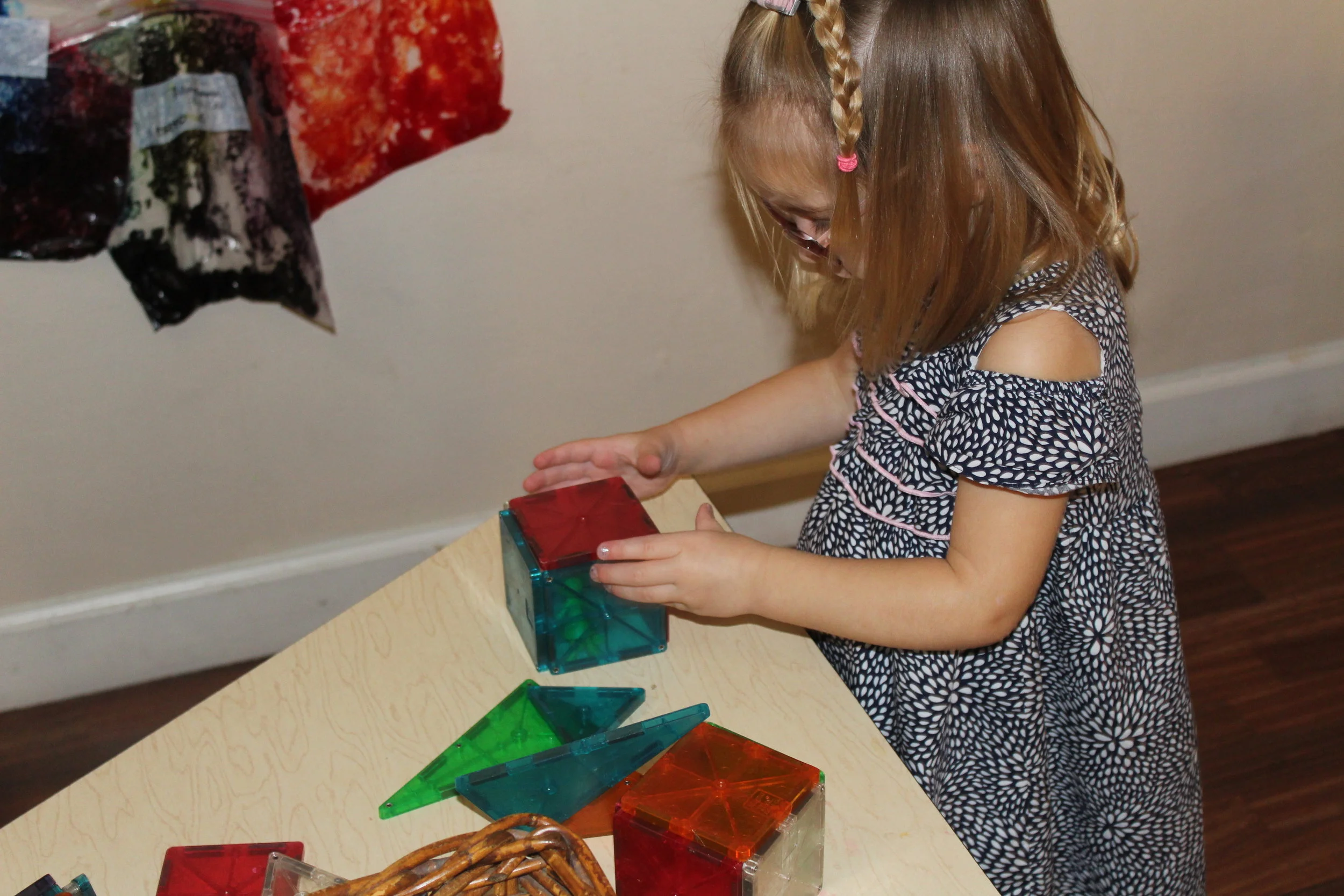 The children also showed their interest for homes through painting and playing with Magne-tiles and Legos. Nico said, "I have two house(s). This one is big and this one is small. They are people." Katerina said, "(This is) my house!" "(There are) toys!"
