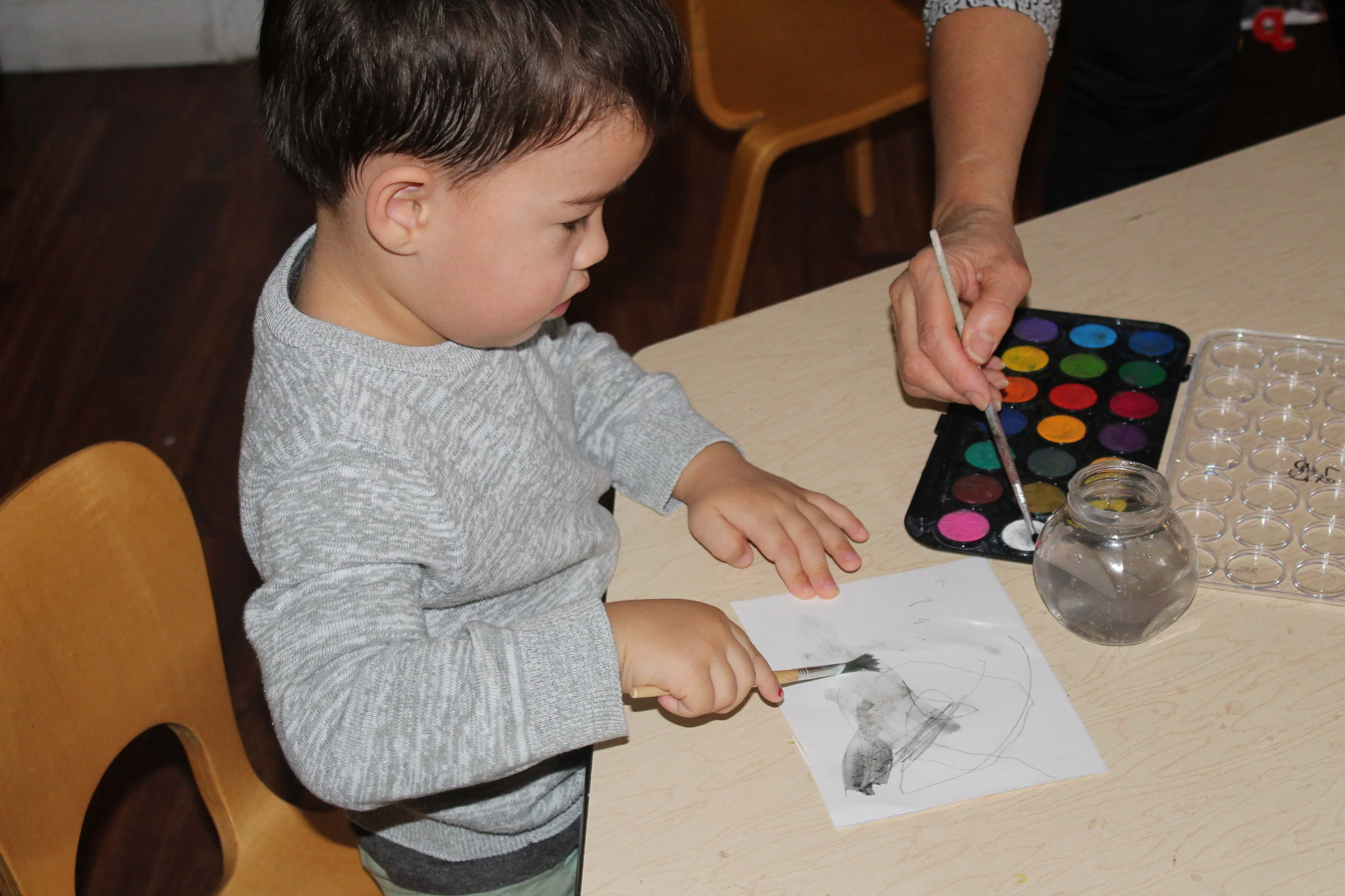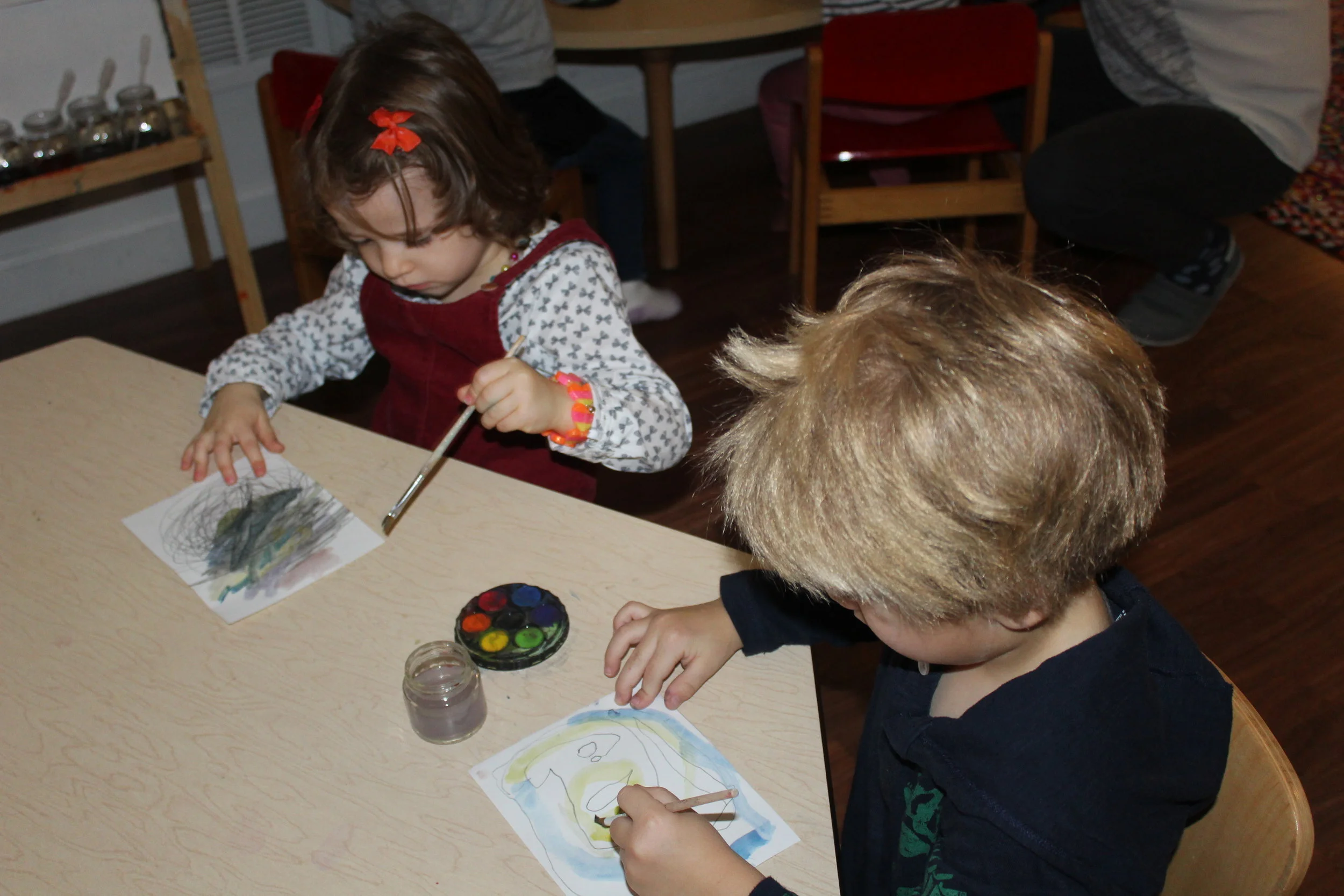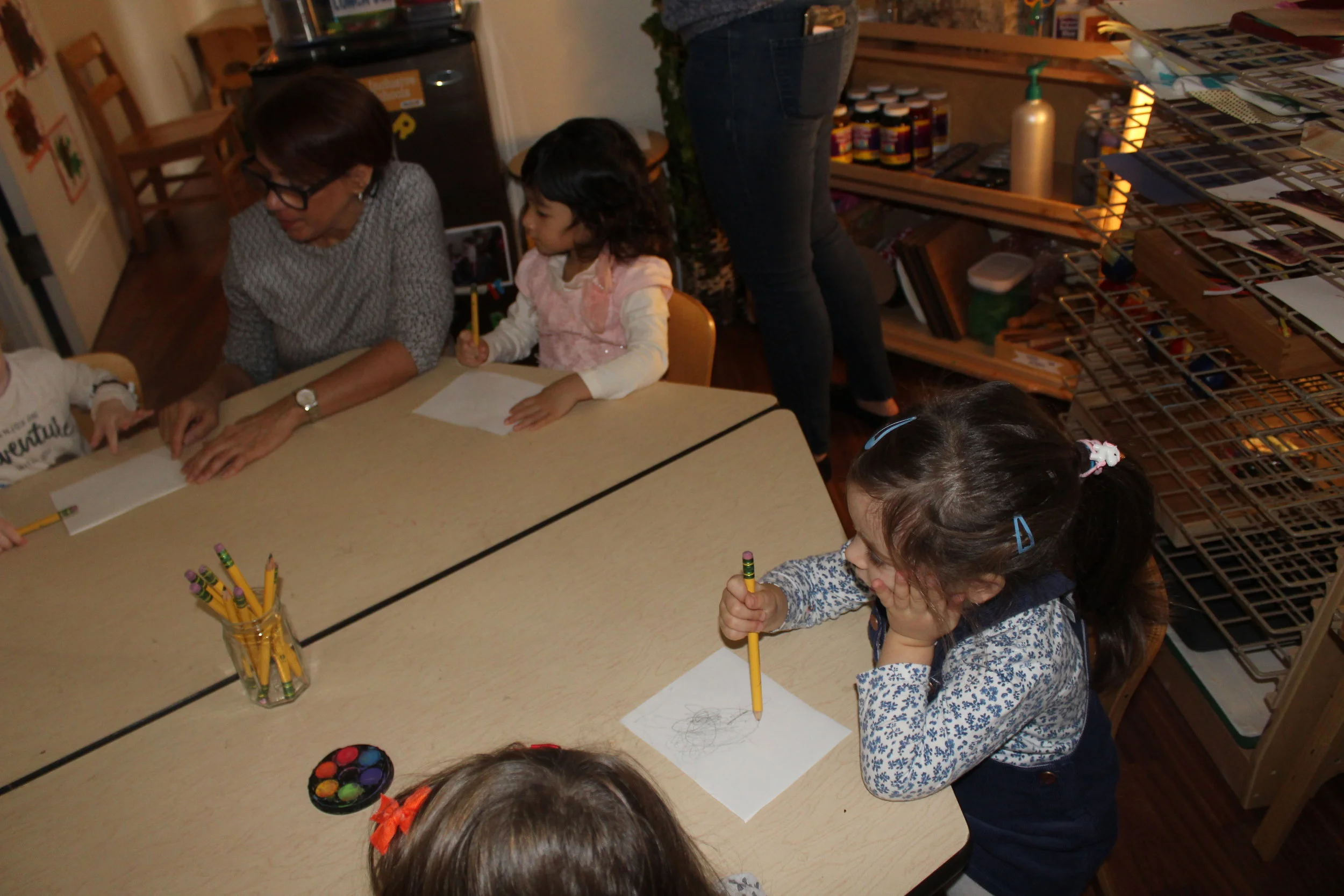 Then we drew a picture of what/whom we were thankful for on a piece of paper with a pencil. Once we were done sketching the picture, the children colored it with watercolor painting.