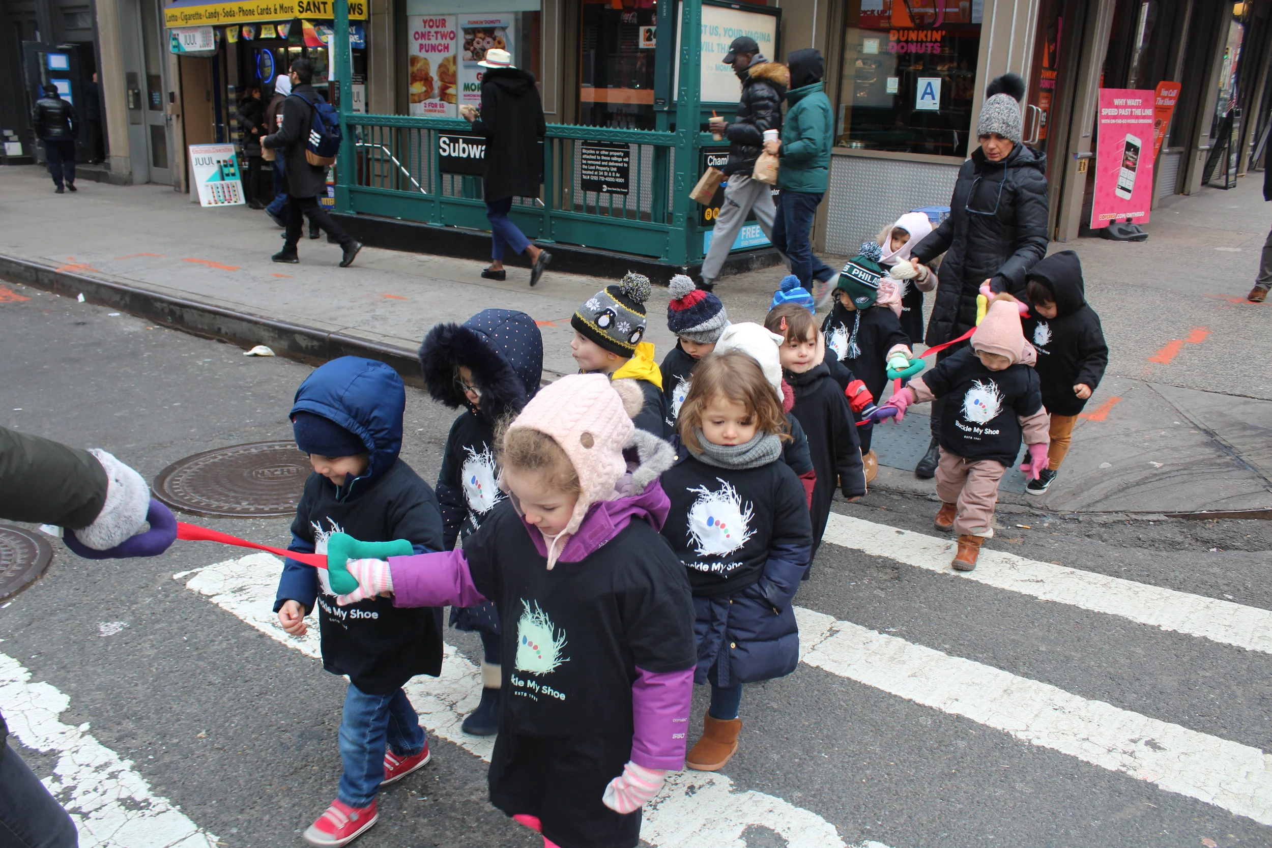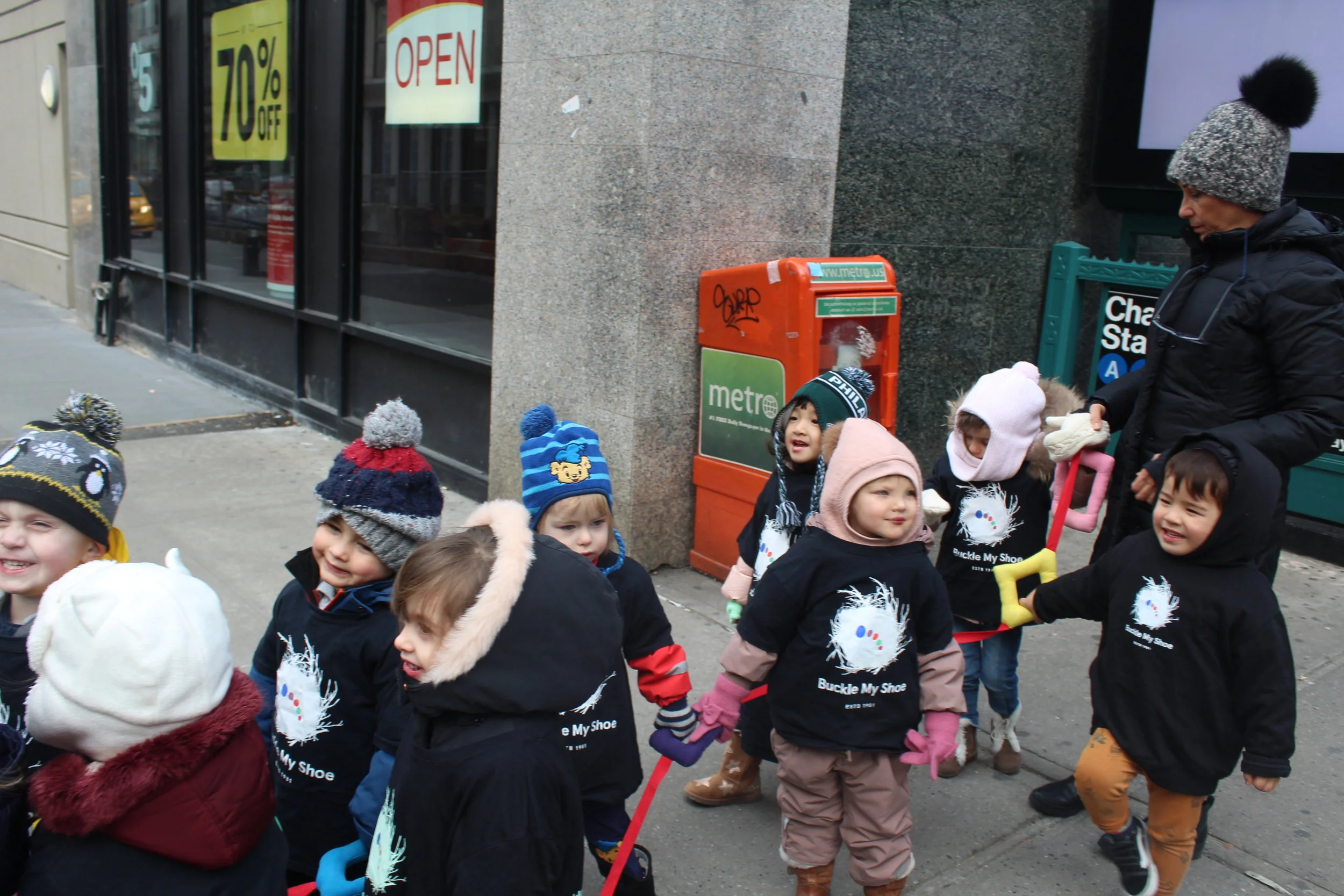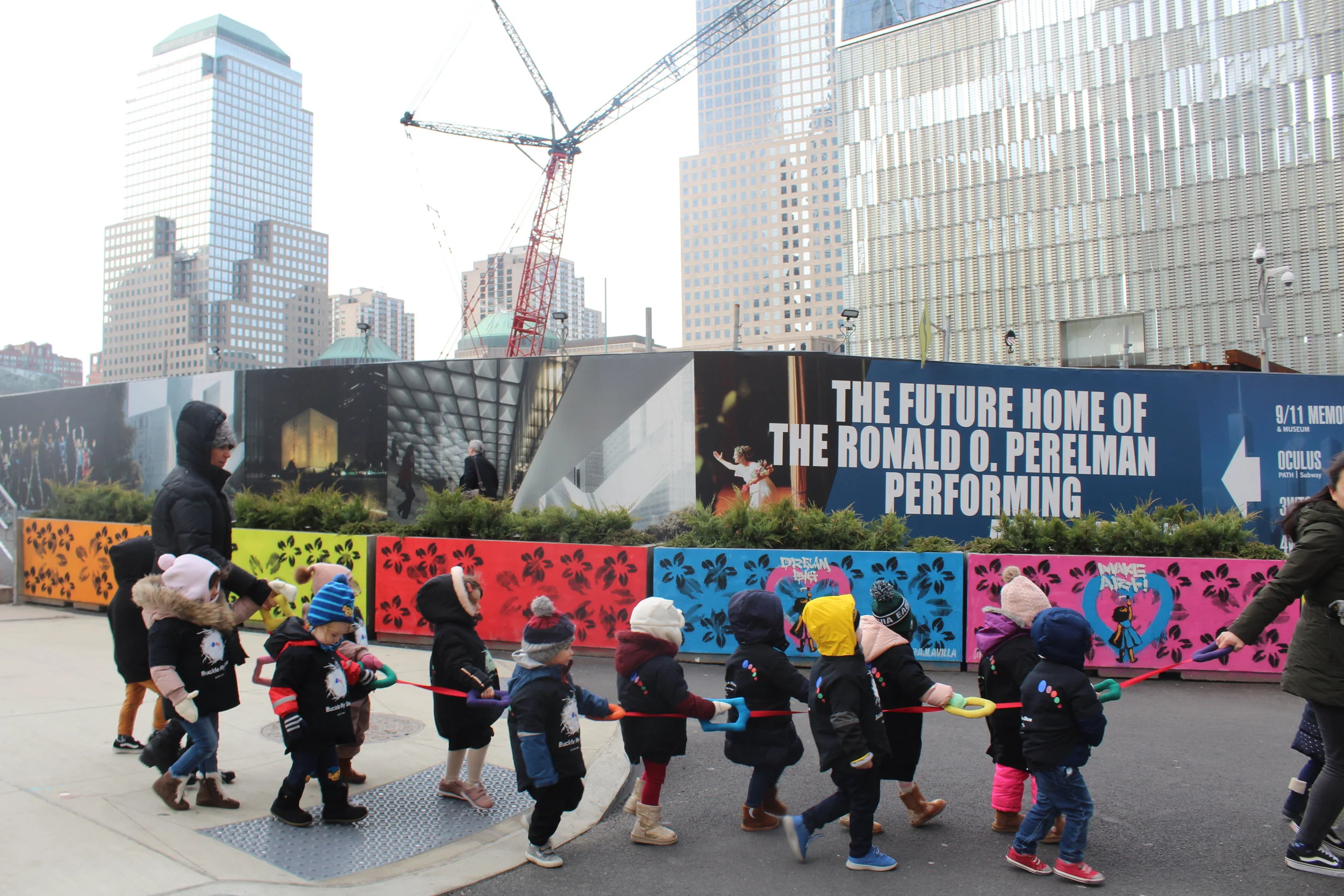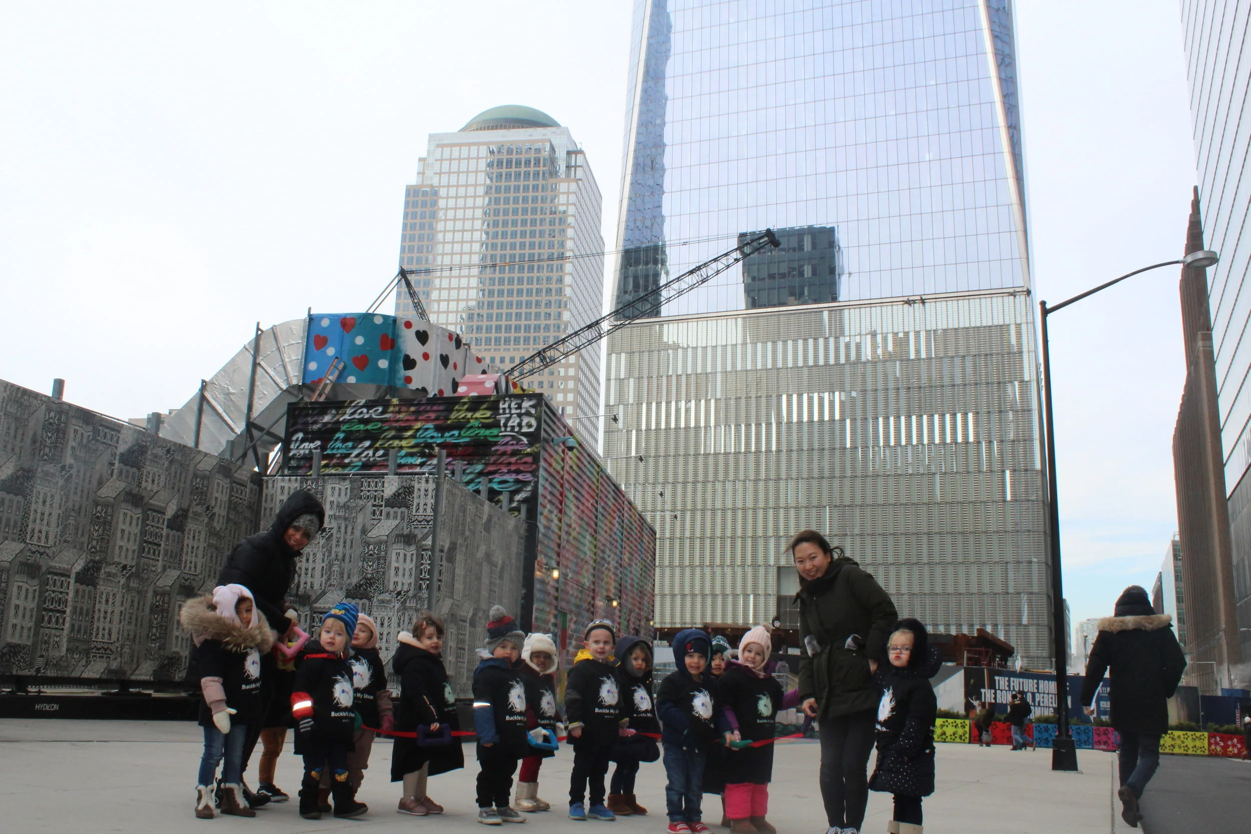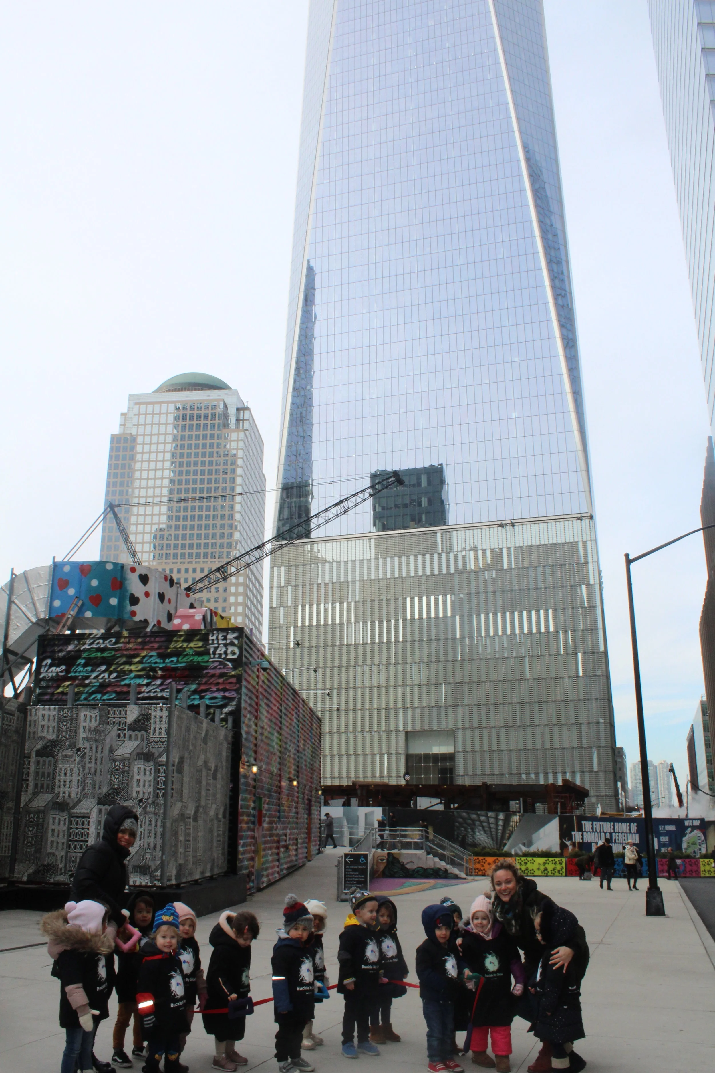 After calling our class building the 3A Freedom Tower, we wanted to check what the actual building looked like. On Thursday, the 3A class went on a walking field trip to the Freedom Tower. Although it was a cold and windy day, the children were excited to go make the trip. We bundled ourselves up in thick jackets, hats, and gloves, then walked out of Buckle My Shoe with a lot of joy. As soon as we stepped out of the school, the cold wind made our smiles disappear. However, we continued to walk bravely without giving up! When we finally arrived, the children shouted "The Freedom Tower!" Even though we had seen it many times before, the achievement of getting there as a class was great. One thing we noticed that was new was the pointy top of the Tower. Charlotte said, "it's a needle." The children also noticed that there were a lot of windows and they were colored blue. We also saw many people around the Freedom Tower.