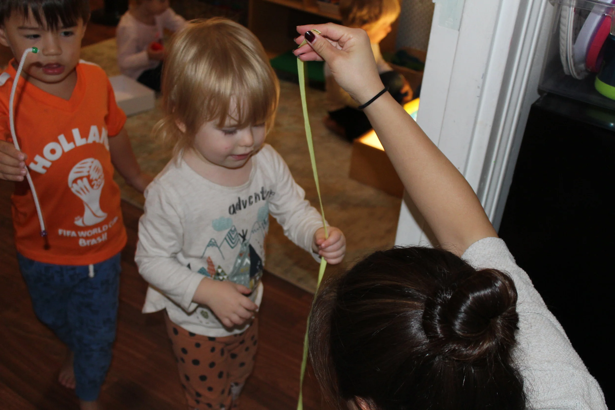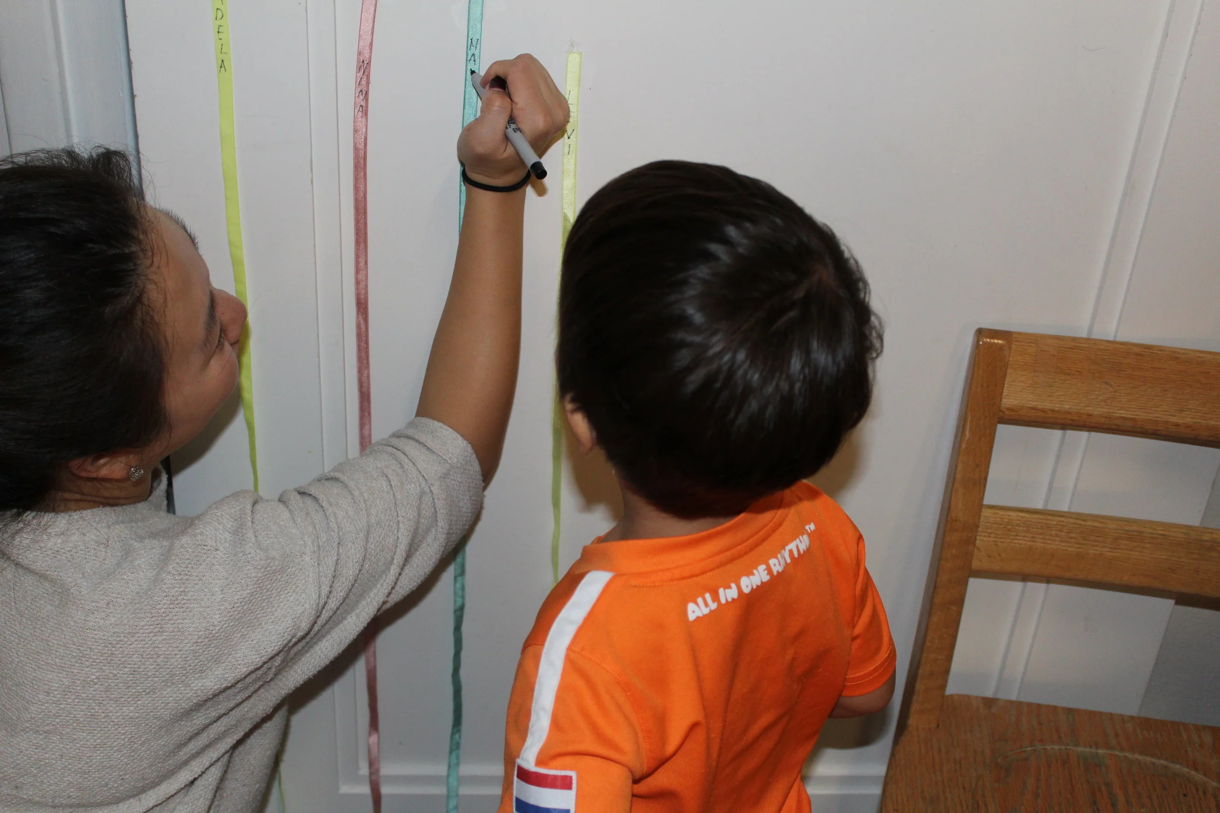 On Tuesday, we explored how tall we were by measuring our height with unit blocks and colorful strings. We were so excited to see how tall and big we were becoming!