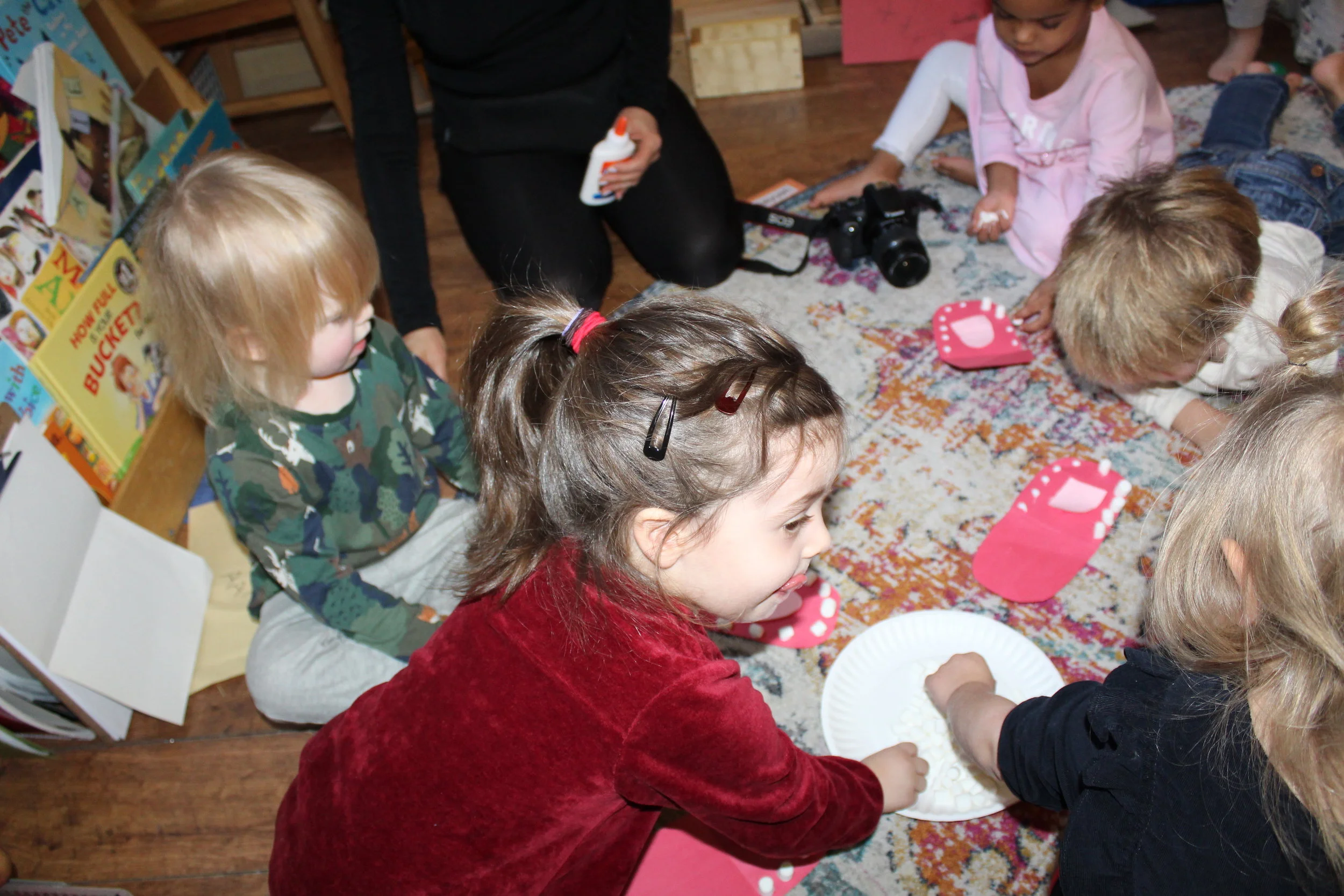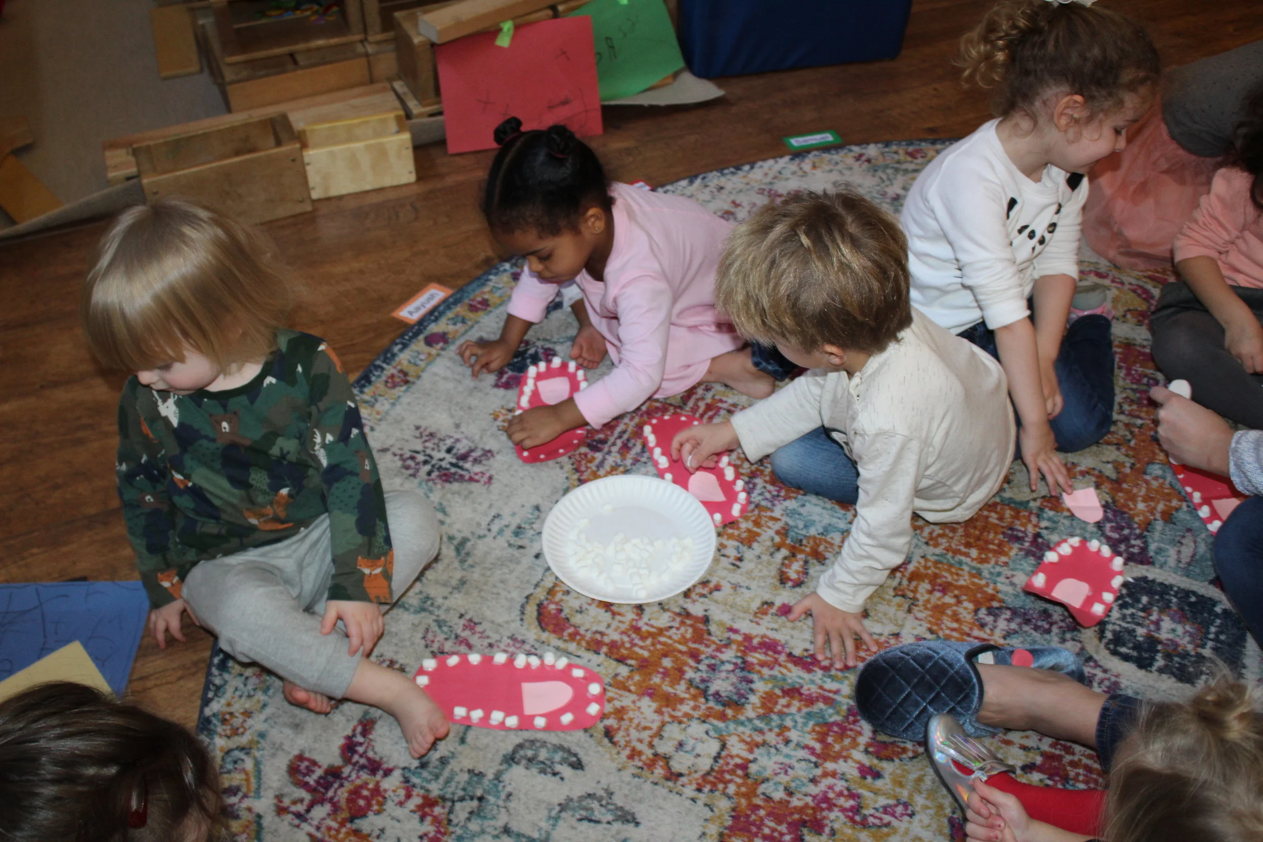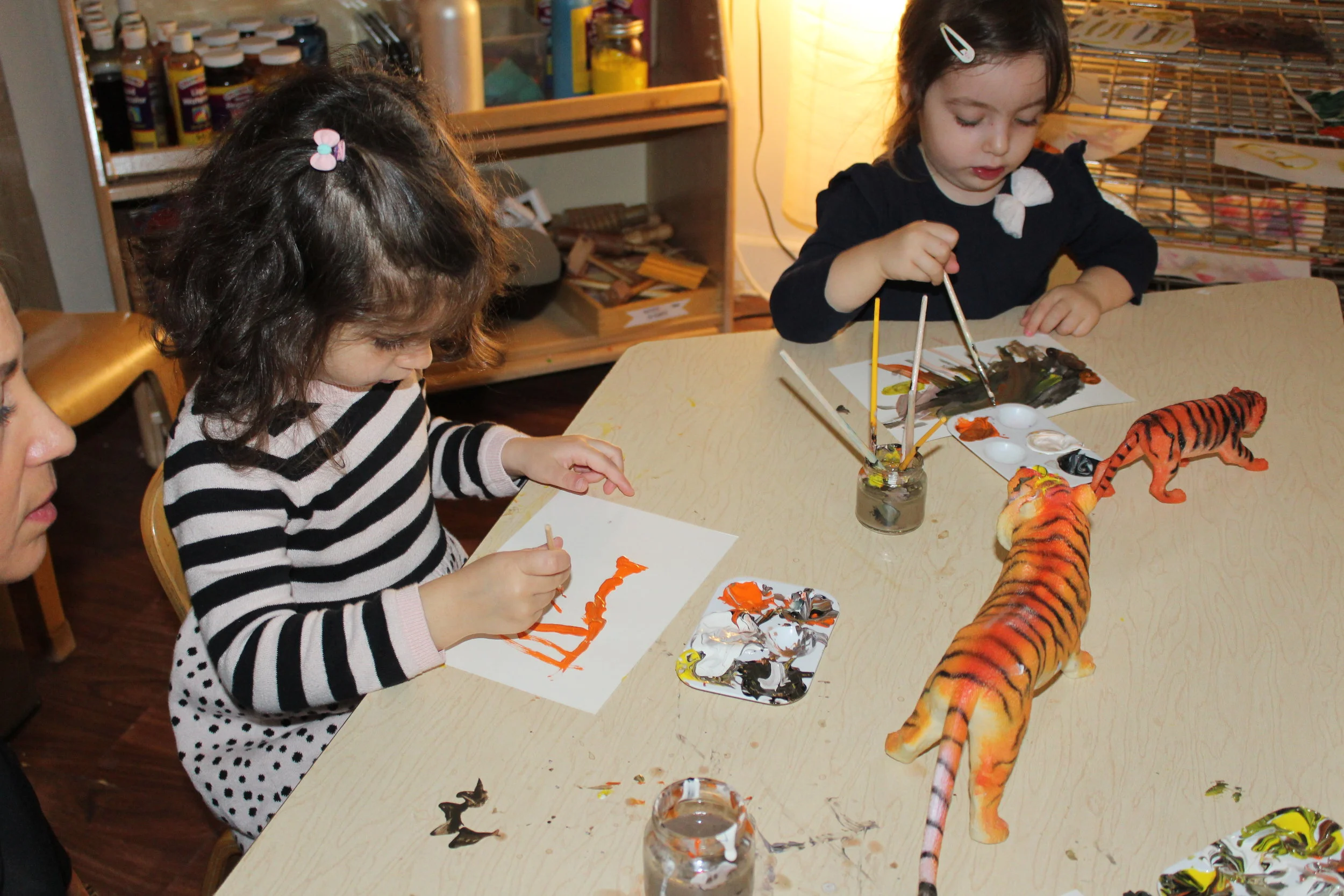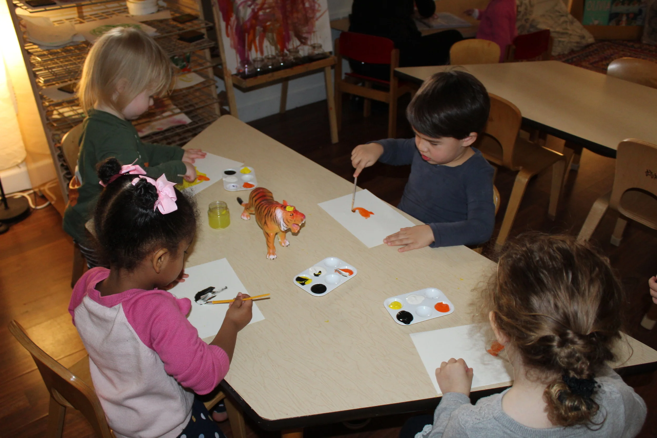 This week, the children continued to study animals by exploring different activities. We used paint and paintbrushes to depict what a tiger looked like in their eyes. Some of the children looked closely at a Tiger's stripes. They showed distinct styles of stripes depending on how they saw the tiger. Other children looked at other parts of the tiger. Mia painted the tiger and said, "Tiger has legs and a mouth." Charlotte said, "I'm doing a tail" as she was painting the tiger. Some other children expressed their own understanding of a tiger in their paintings.
