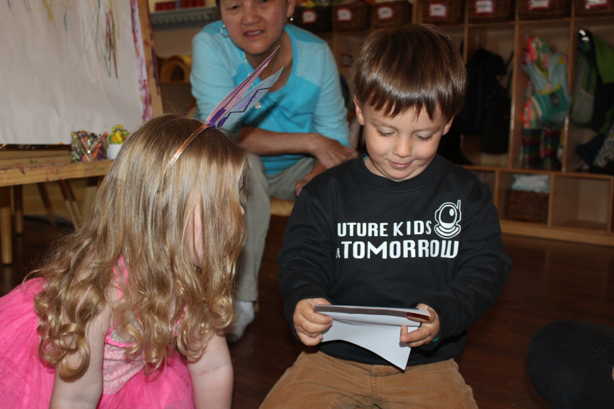 A few weeks ago, we found a seesaw in the gym. The 3A children immediately knew what to do and took turns going on the seesaw. As we were having so much fun bouncing up and down, a question popped in our heads. What makes us go up and down on a seesaw? This investigation helped the 3A educators come up with a topic for the Buckle My Shoe Science Fair. Weight! After speaking with our science fair mentor, Deborah, (Alexandra's mom in our class) we realized weight = mass x gravity. Since gravity is constant on Earth, we were able to find the mass of objects (how heavy things are)!