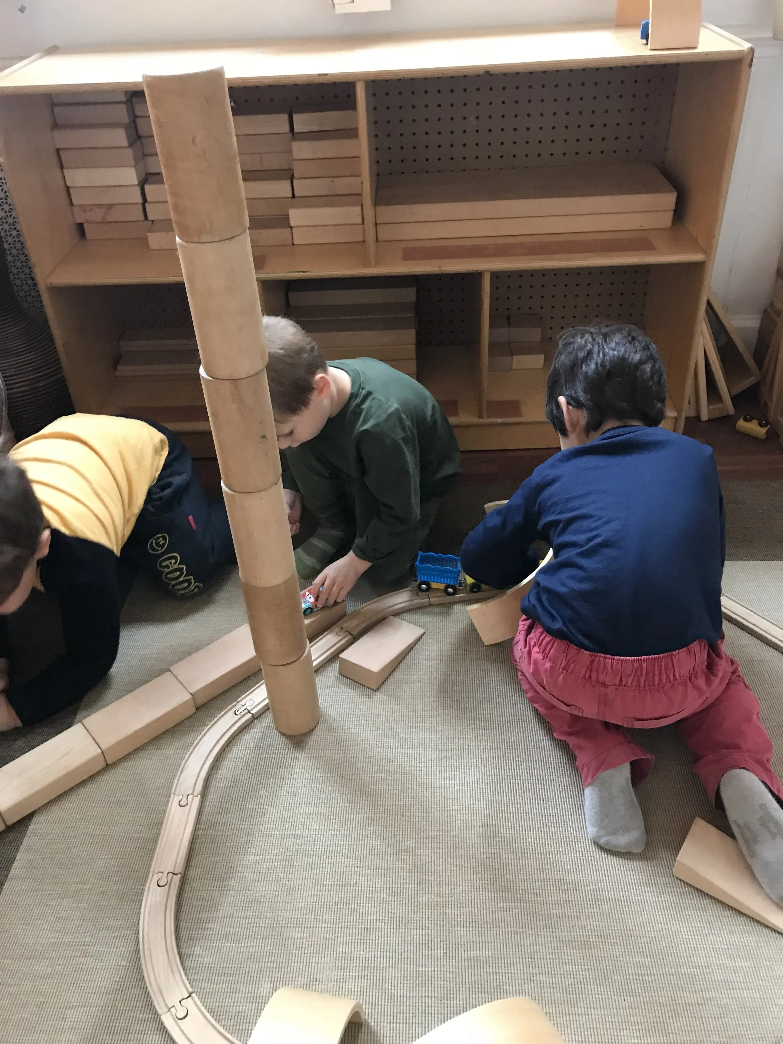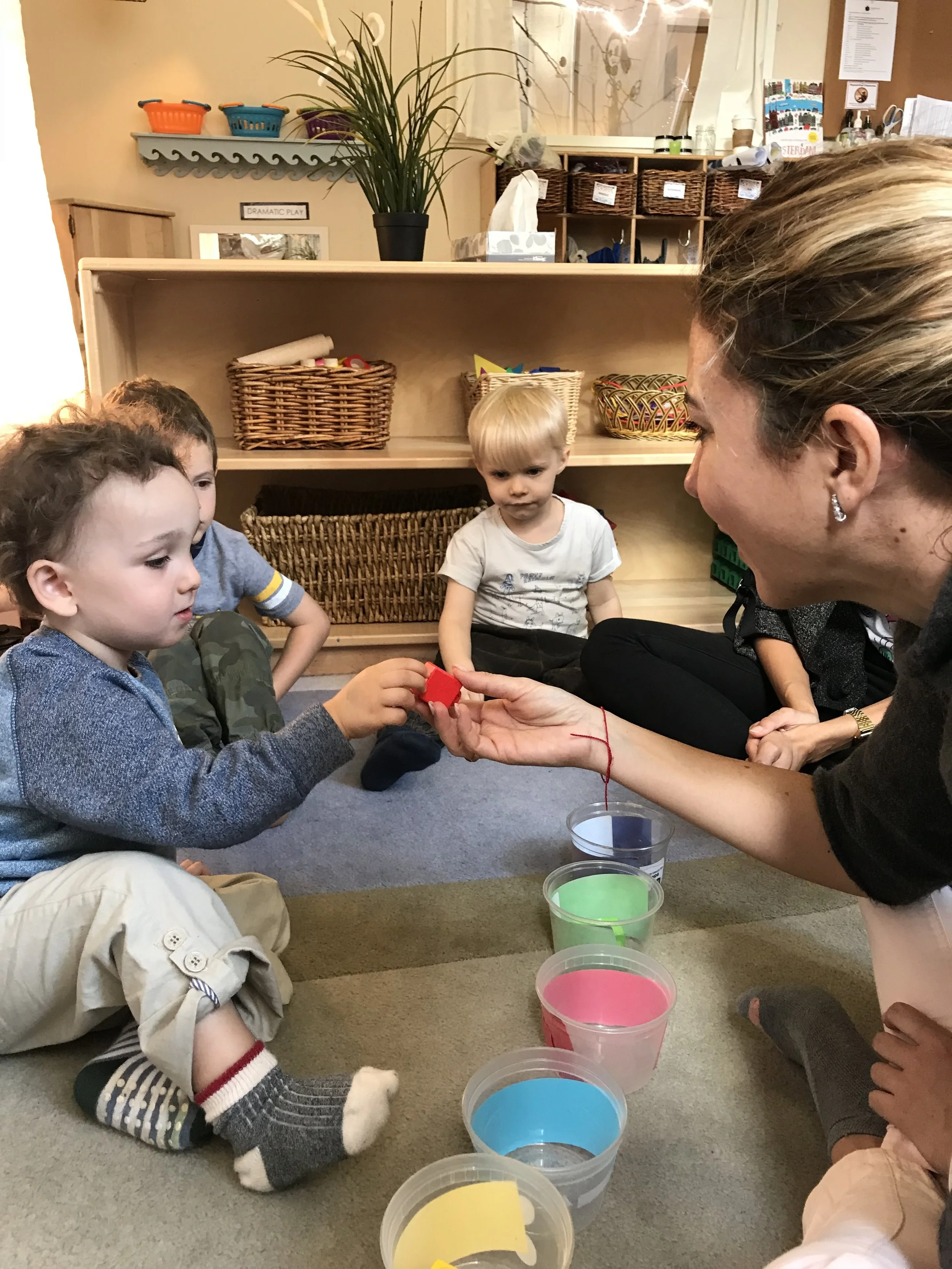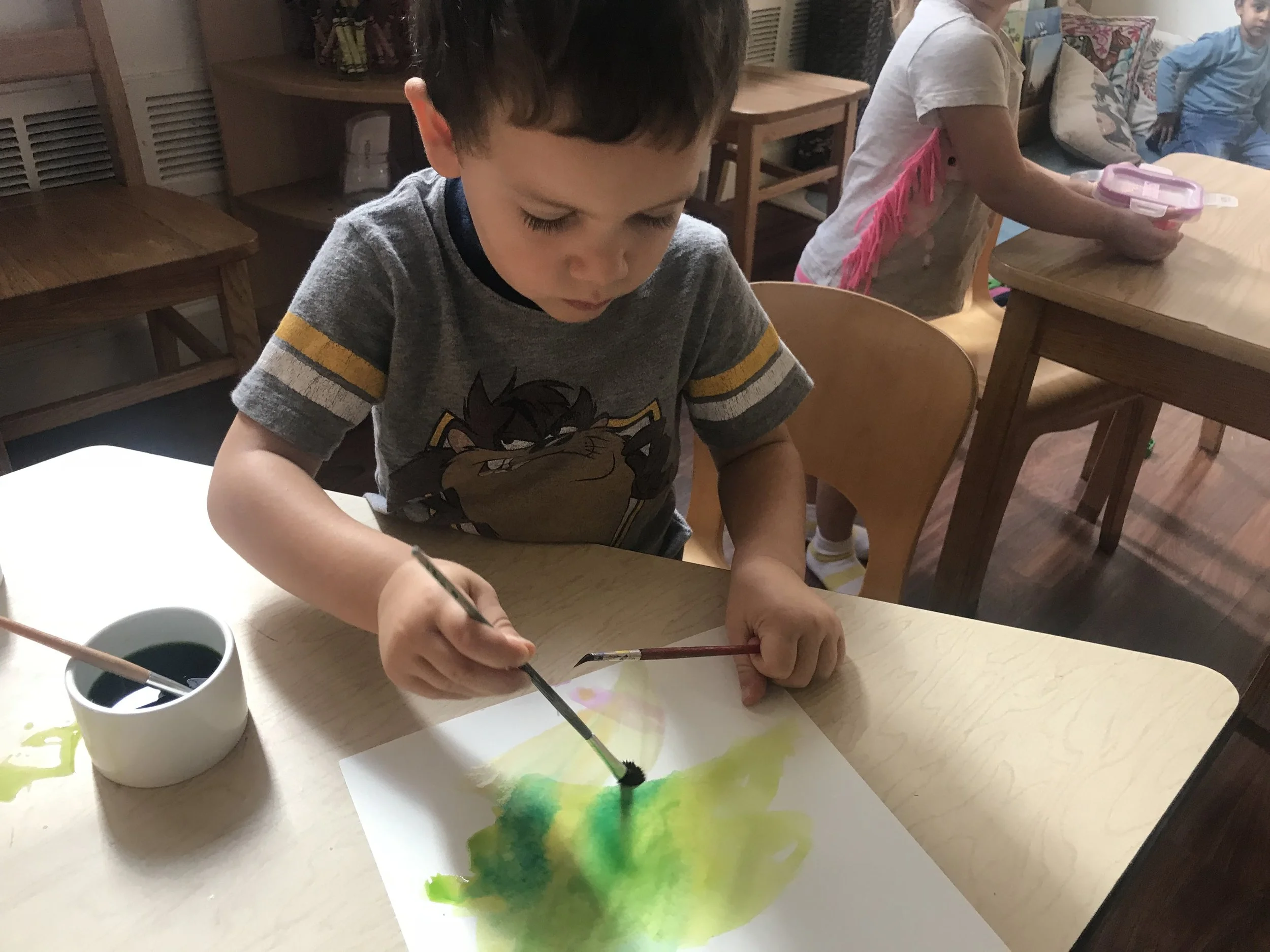 On Friday we started our day with shared snack. Angelo brought in goldfish crackers and apples. Then we set up two activities for the children: marble painting and a drawing prompt (googly eyes glued to a piece of paper). The children loved the activities. We also continued our child identity study where we asked the children what they are great at doing. Something we have noticed developing this week is how the children identify themselves according to the first letter in their name or any of the letters in their name. To foster this interest, we graphed how many children had the letter A in their name. We discovered that two children have two A's, four children have one A in their name, and two children have 0 letters in their names. We will continue graphing and discussing letters as the weeks go on. Lastly, William and Milo worked together to build a house for our stuffed animal bunny. (More pictures will be added on Tuesday from today)