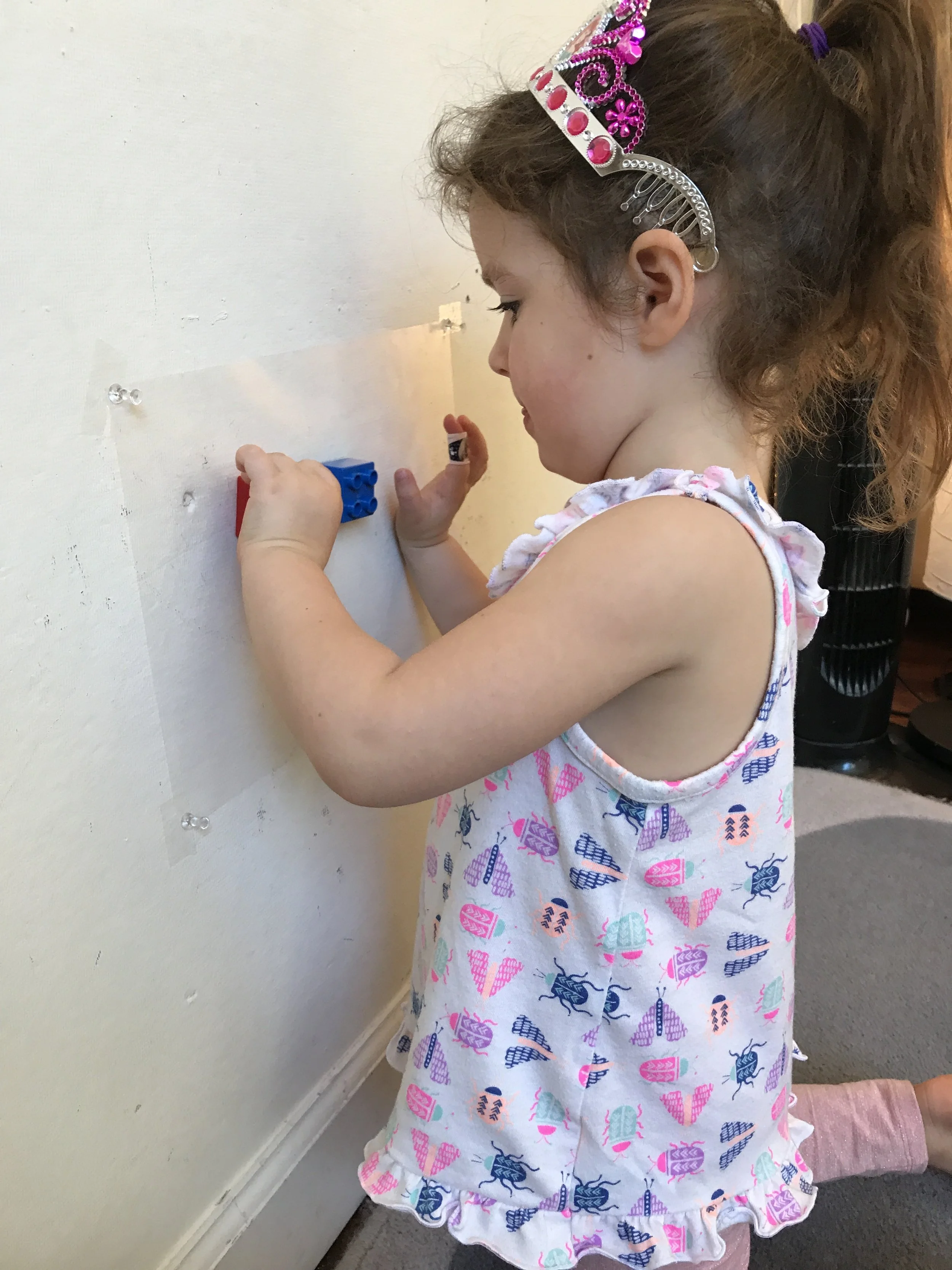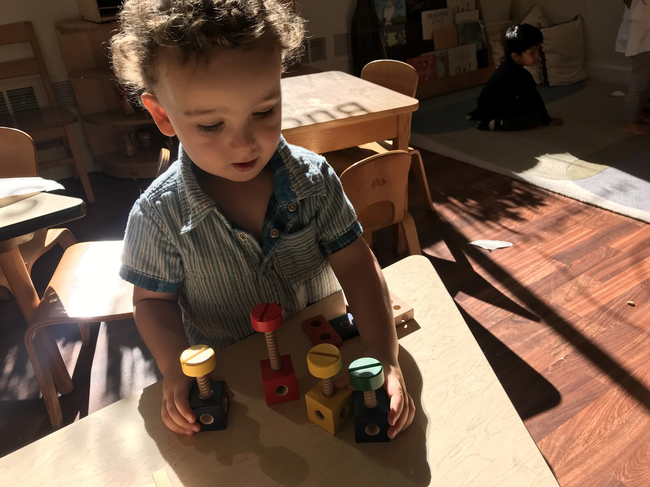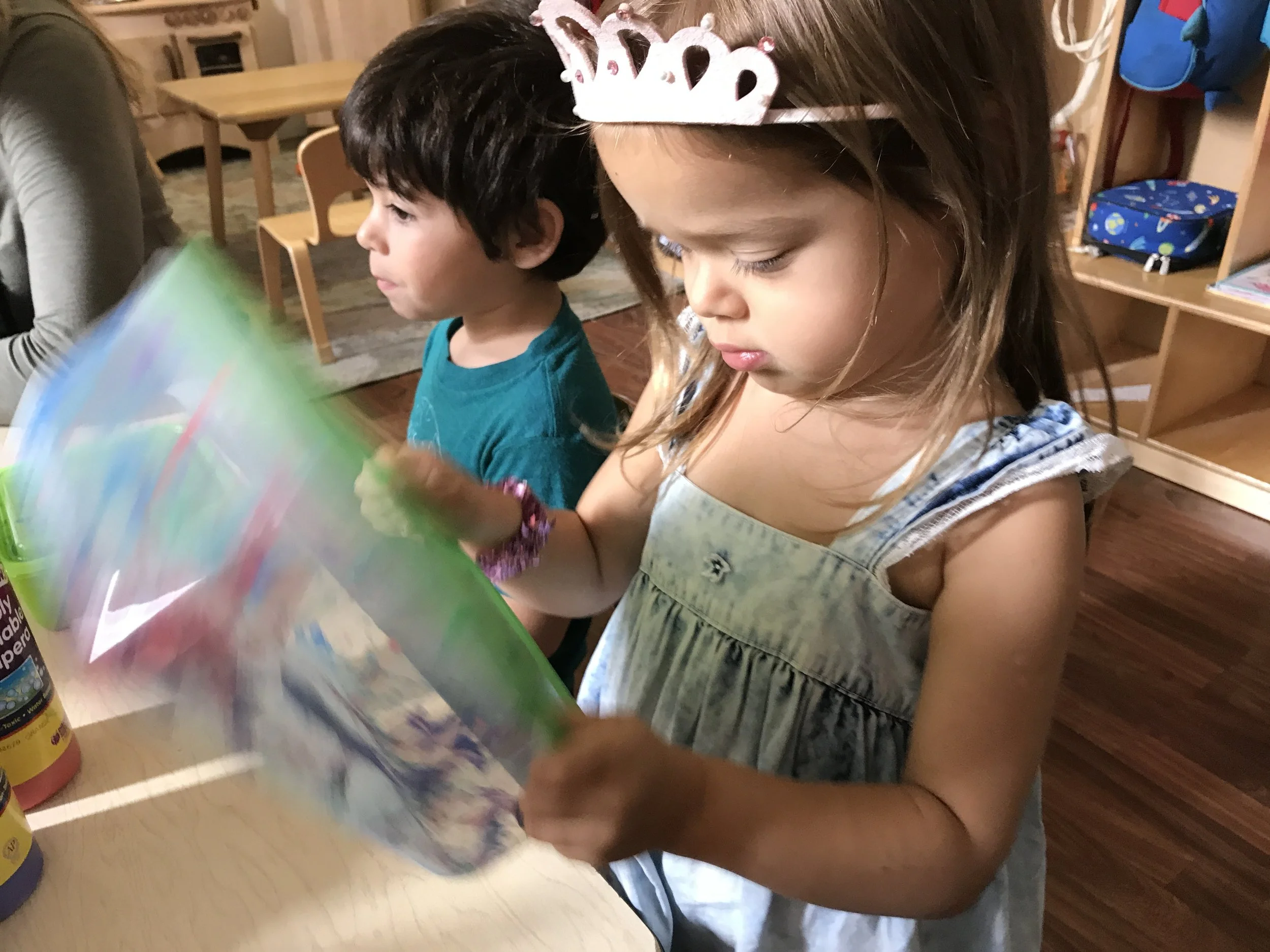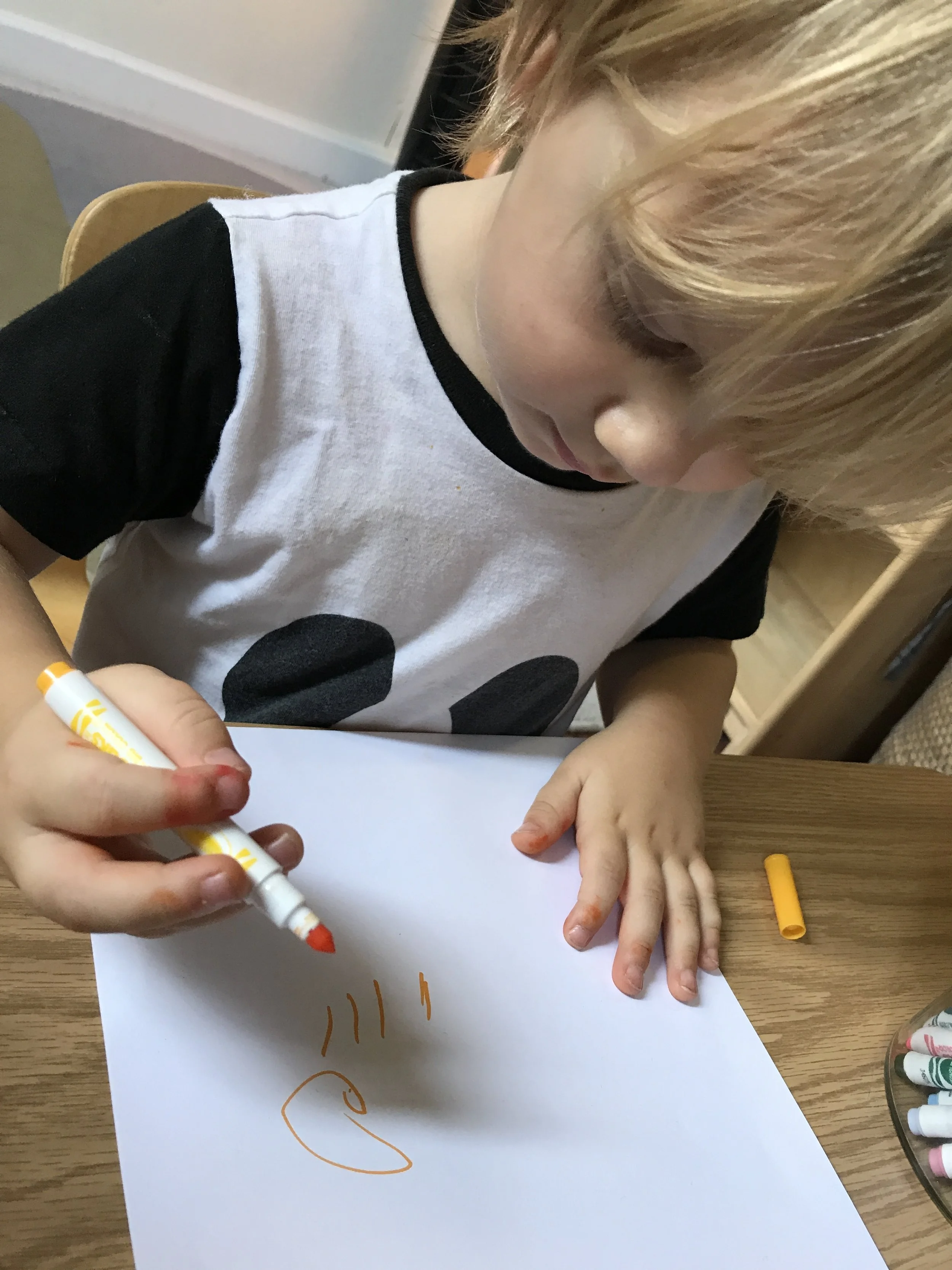 On Friday we started our day with shared snack. Angelo brought in goldfish crackers and apples. Then we set up two activities for the children: marble painting and a drawing prompt (googly eyes glued to a piece of paper). The children loved the activities. We also continued our child identity study where we asked the children what they are great at doing. Something we have noticed developing this week is how the children identify themselves according to the first letter in their name or any of the letters in their name. To foster this interest, we graphed how many children had the letter A in their name. We discovered that two children have two A's, four children have one A in their name, and two children have 0 letters in their names. We will continue graphing and discussing letters as the weeks go on. Lastly, William and Milo worked together to build a house for our stuffed animal bunny. (More pictures will be added on Tuesday from today)