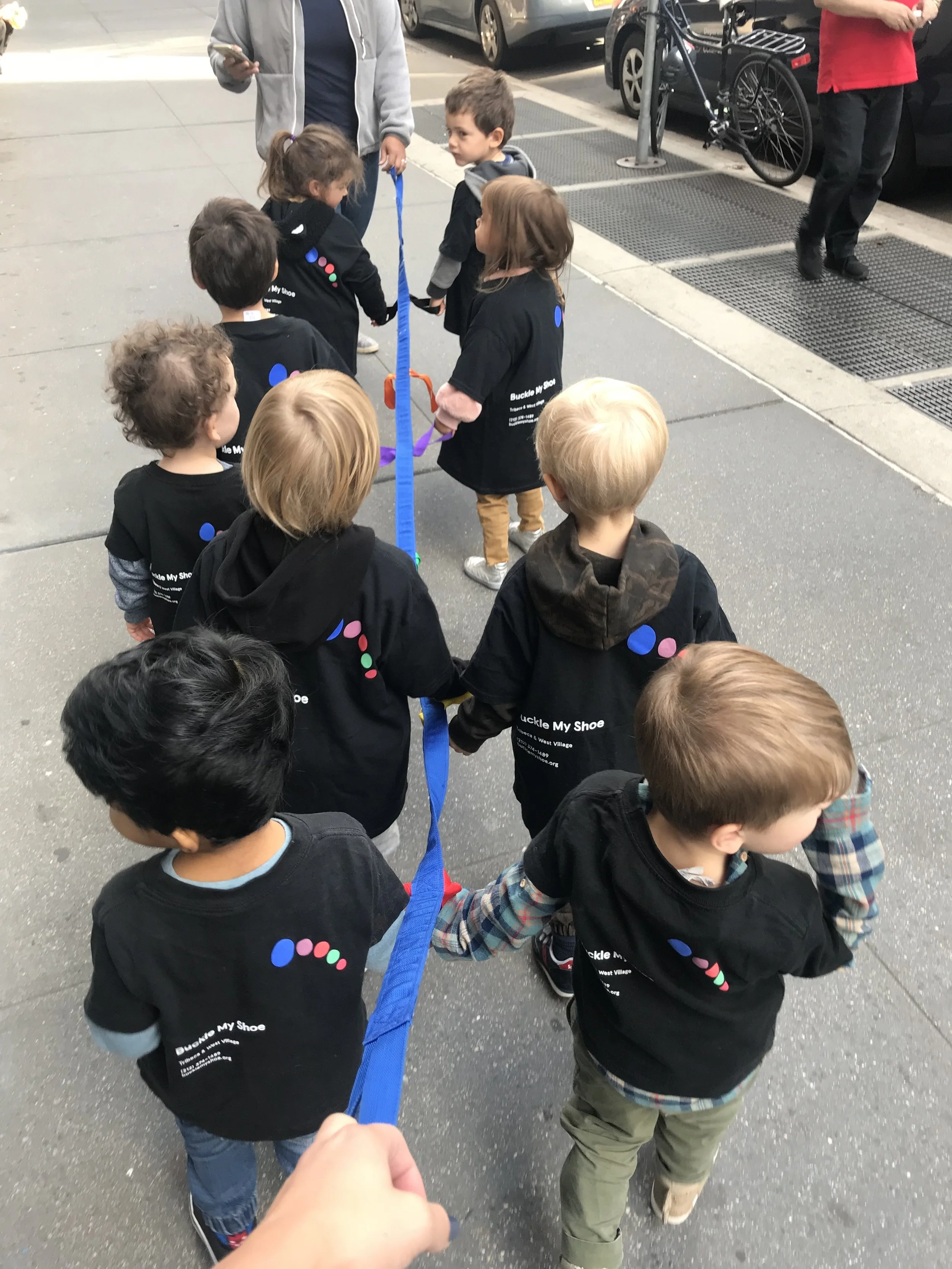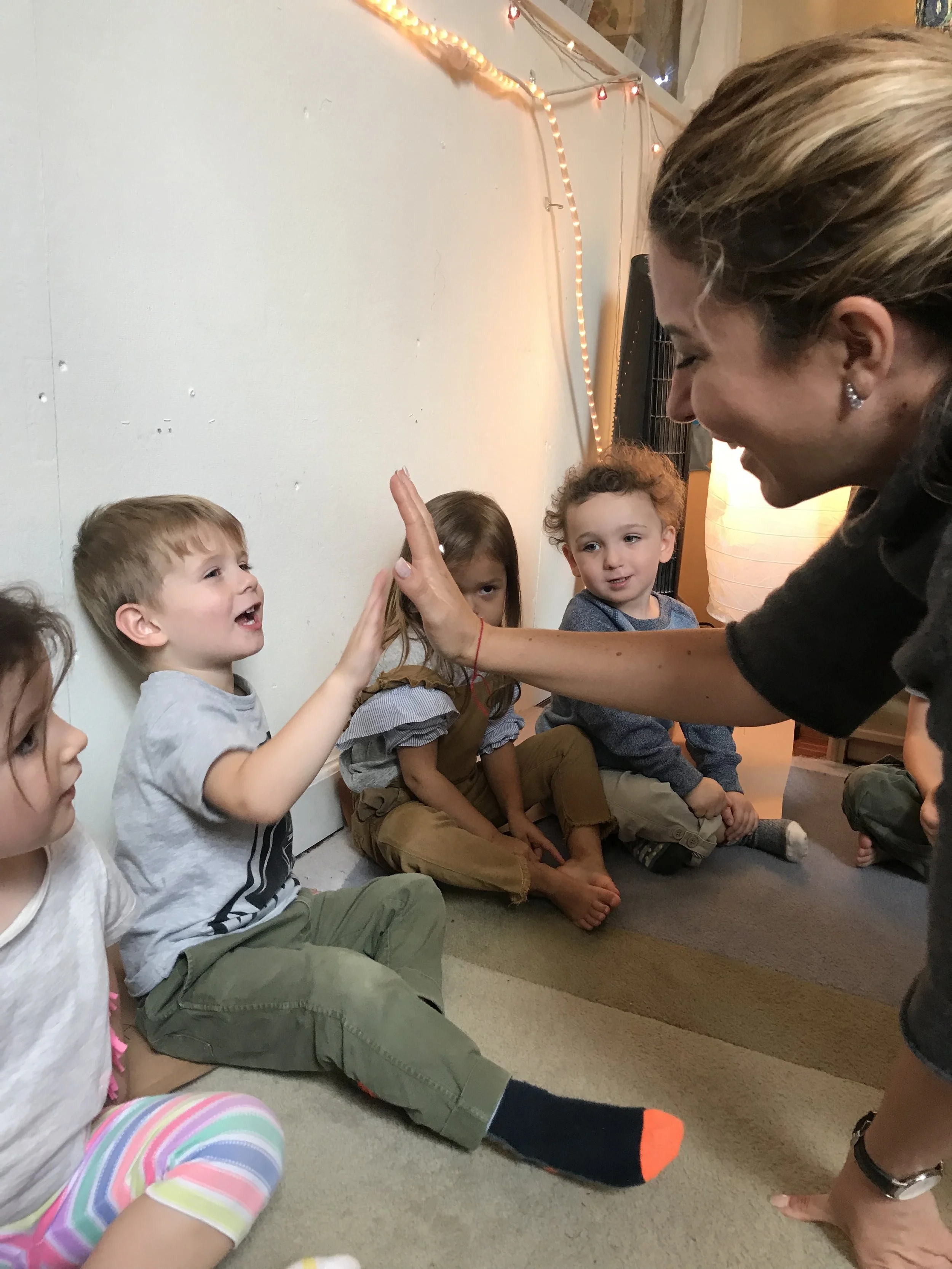 On Monday, for our music/movement theme, we played a new game with the children. While music was playing, the children would dance around the room. When the music stopped, they had to find a hoop to stand in. Each time the music stopped, a hoop was taken away, causing the children to share their hoop with other friends. We also went for our first walk around the block!