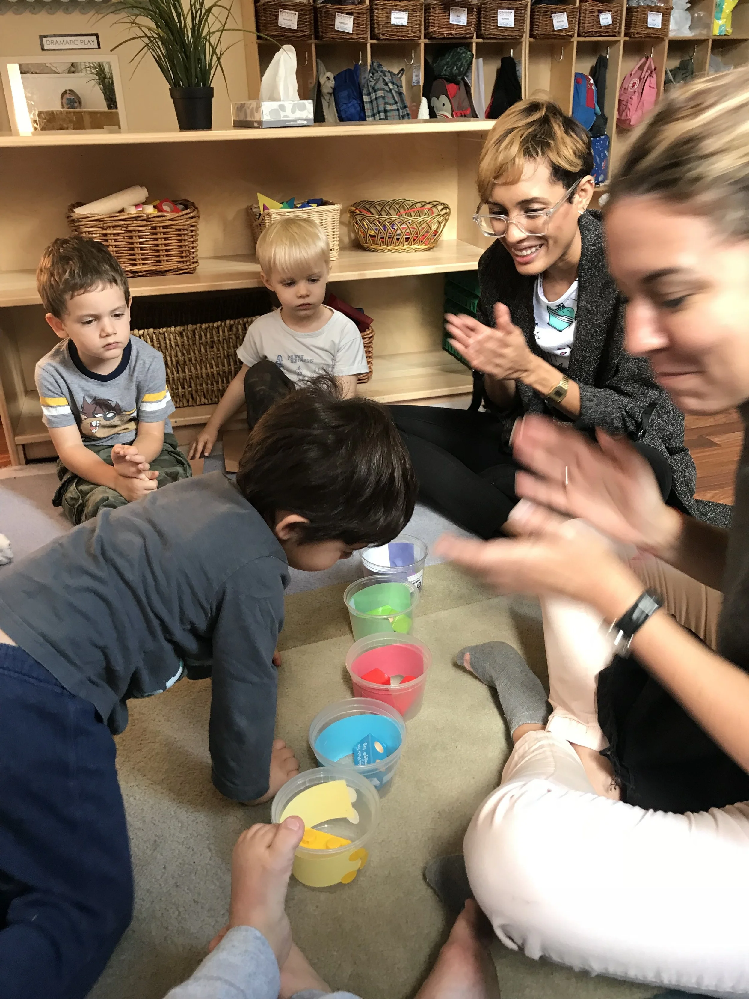 On Tuesday we had our first Spanish class. The children learned words for hands, feet, head, slow, fast, yellow, blue, green, purple, orange, hello, good-bye, thank you, and high five. The teachers, Michelle and Mimi, were great and keeping the children engaged with lots of interactive songs.