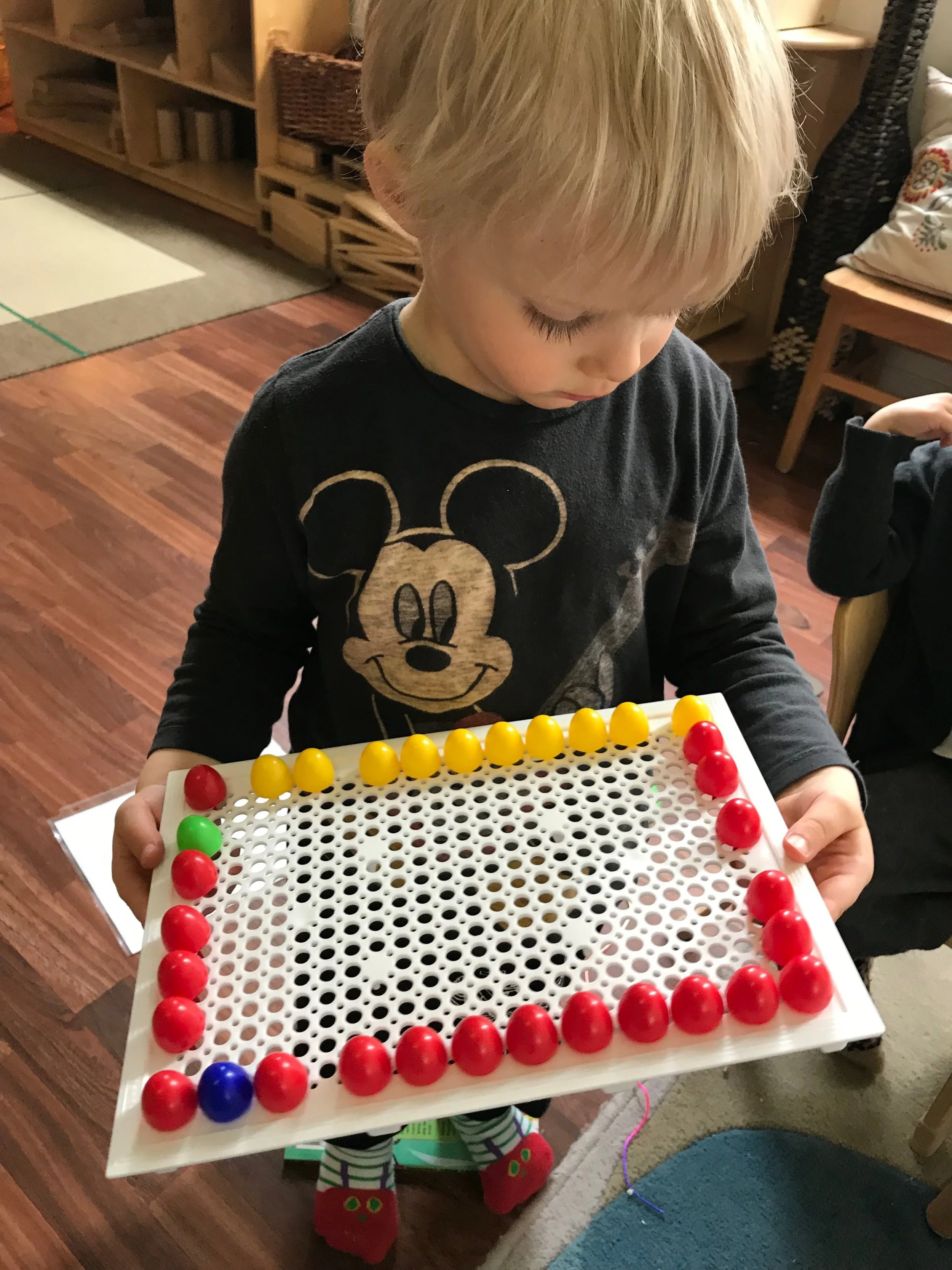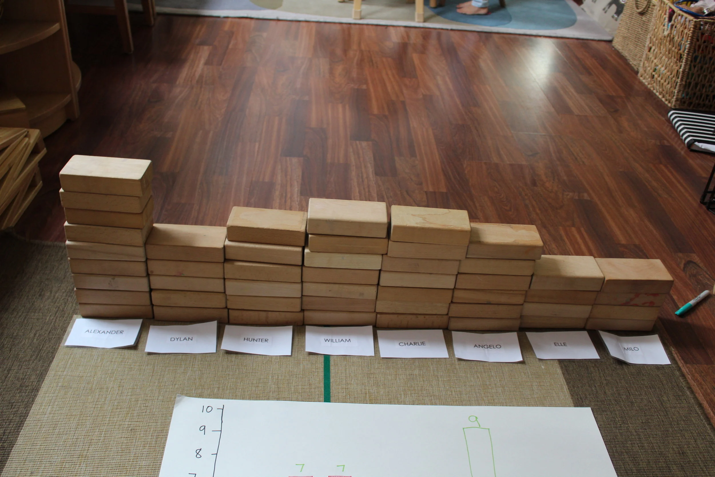 On Monday we created a graph representing the number of letters in everyone's names. While working, and later when we were finished, the children pointed out the children who had the least number of letters, the most number of letters, and the same. This activity was very interesting for Milo. During free choice, he used one of the manipulatives to create his own graph.