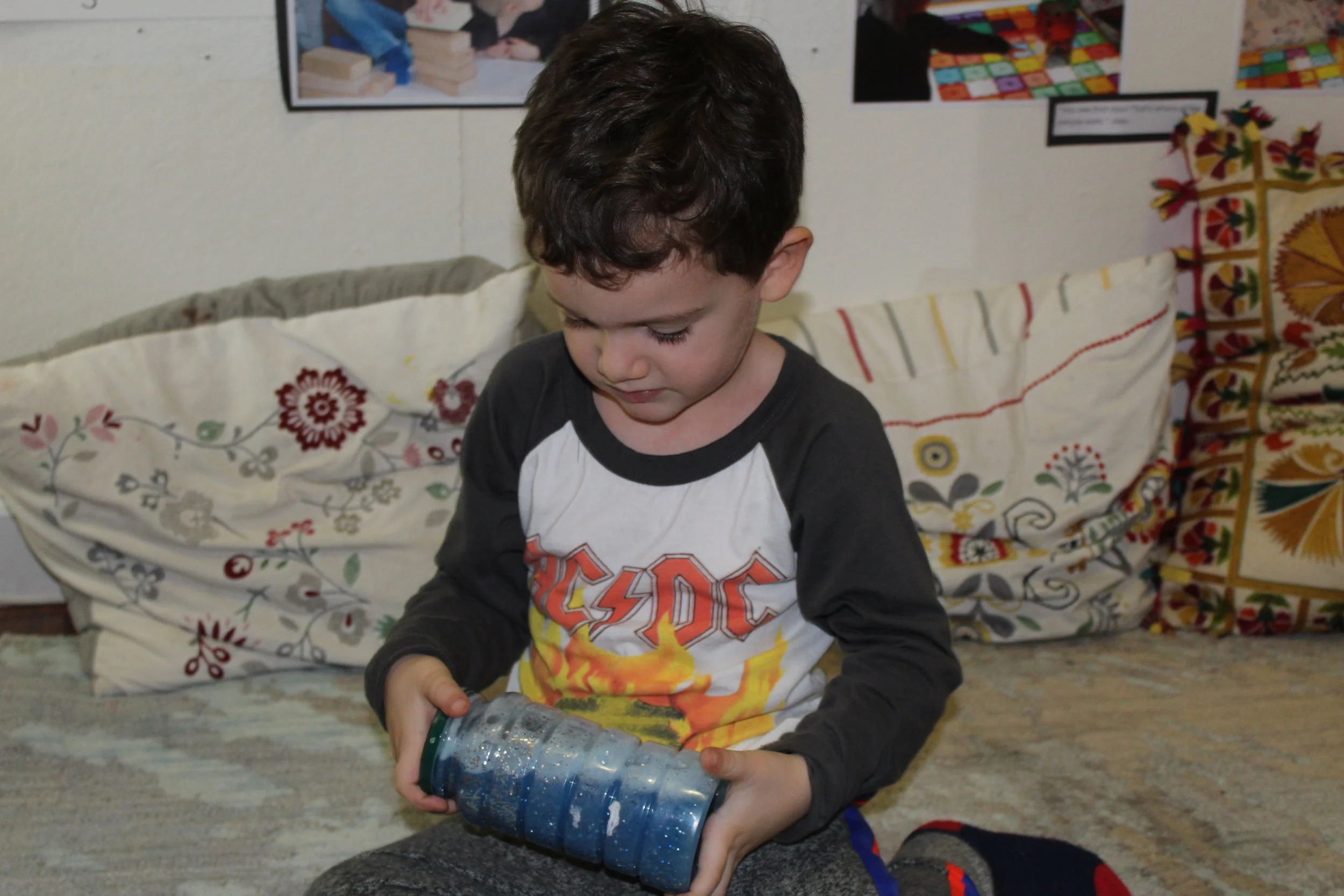 We introduced the children to the quiet corner on Friday. So far it is filled with pillows and a calm down jar (recipe at the end of this post). When asked what else we may need in the area, the children suggested more pillows and more calm down jars (different colors). The rule for the quiet corner is one person at a time. We also talked about, and practiced, taking deep breaths. We will be adding fabric to the area to make it cozier.