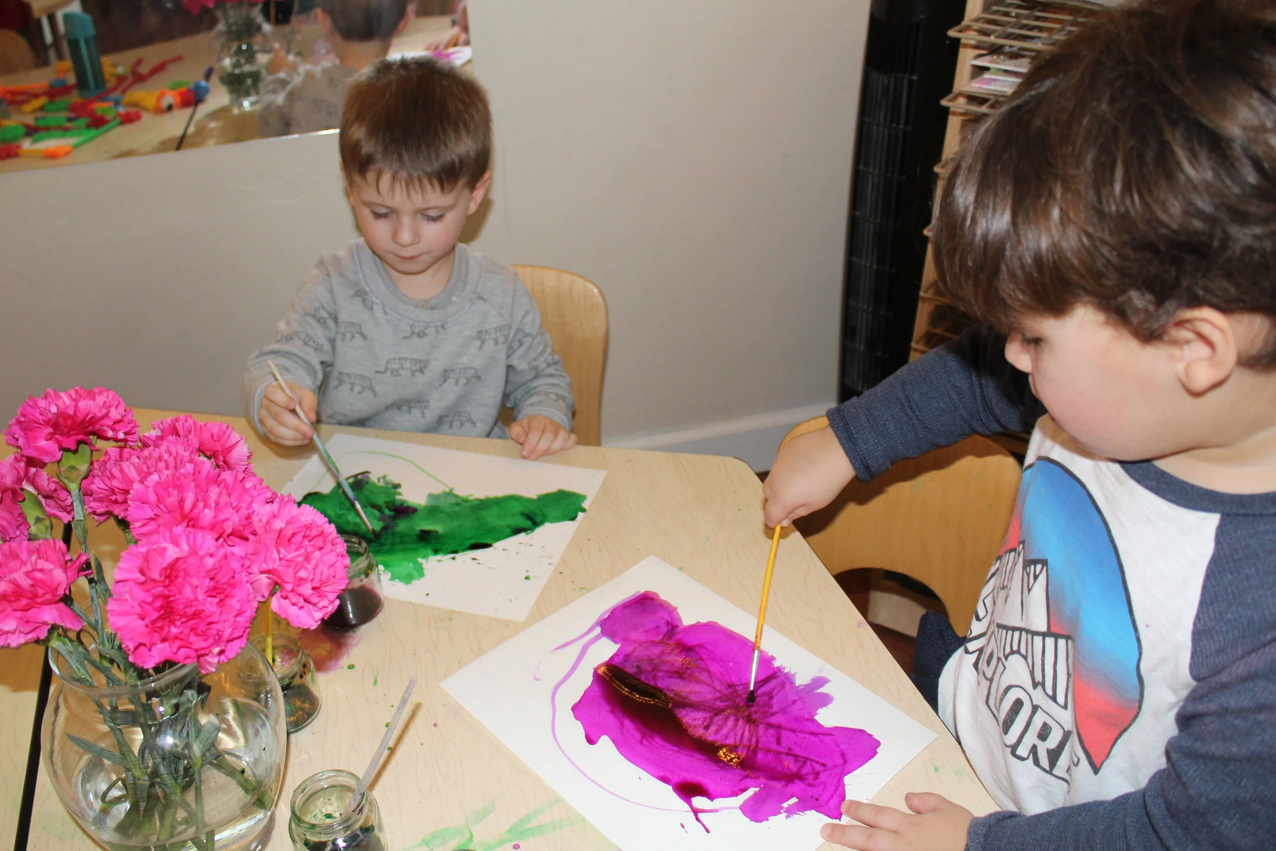 There has been a lot of art going on this week as well. The children have been experimenting with watercolor palettes (figuring out the paint to water ratio to obtain desired depth of color), and observational paintings (great for getting the children to slow down and focus on details).