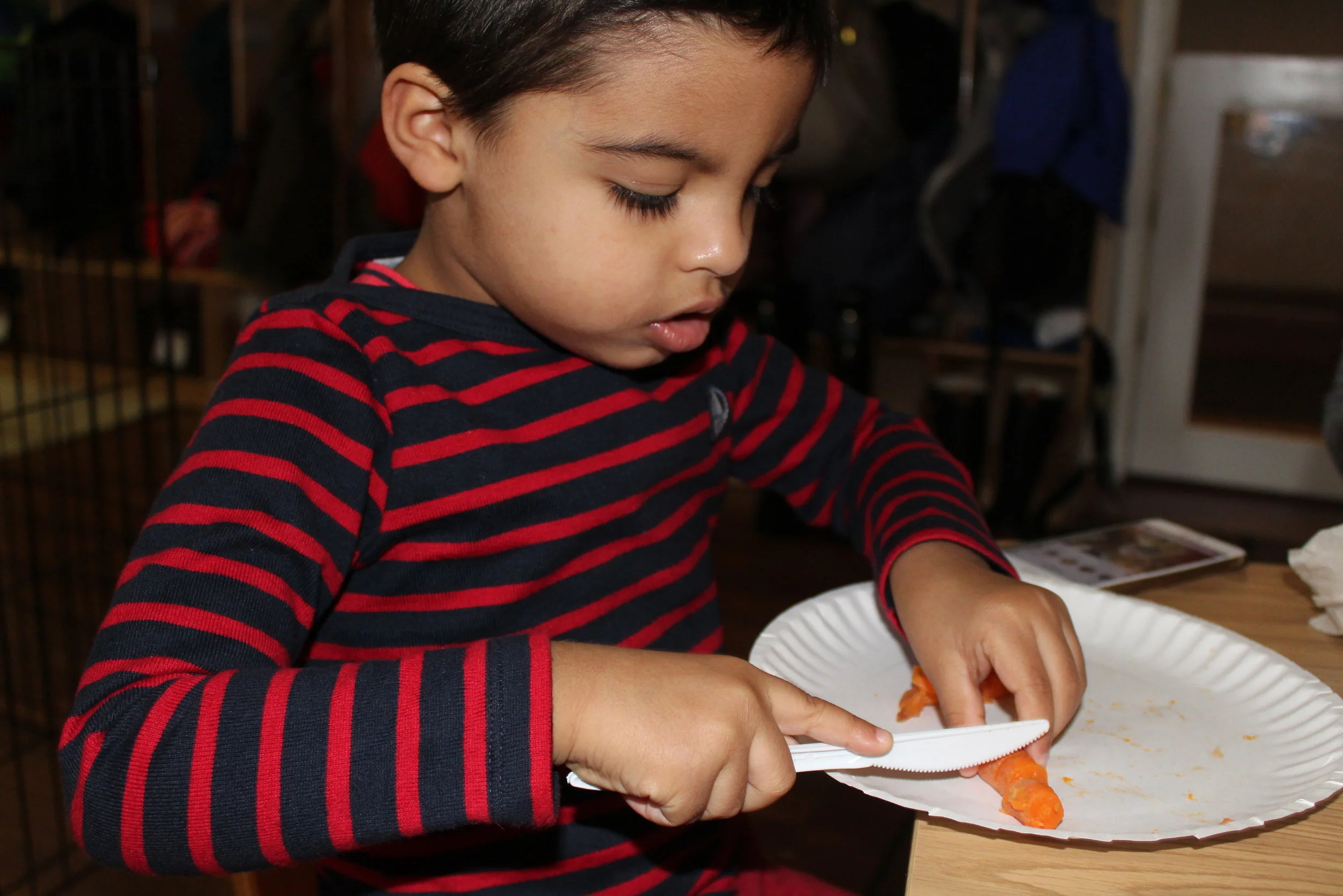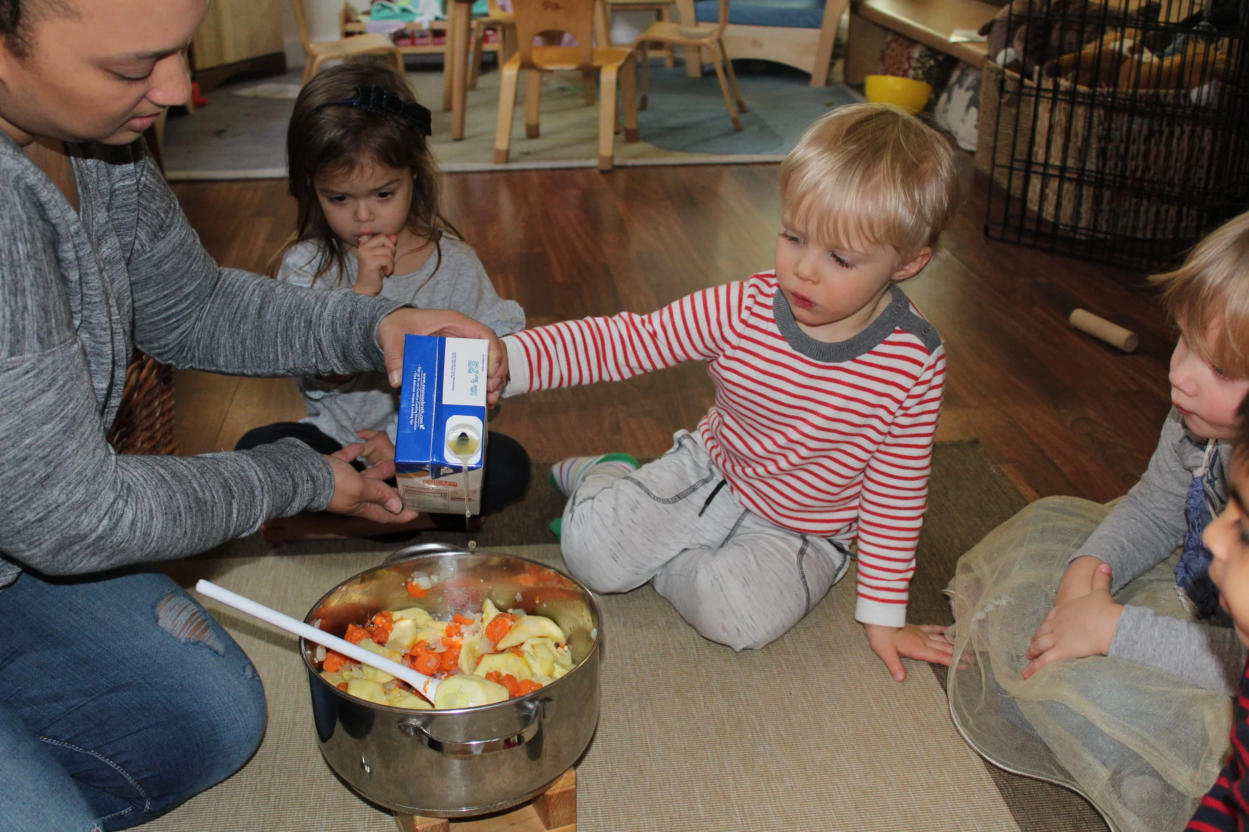 On Friday we cooked carrot squash soup for Milo and his family. The children helped cut up the carrots, and poured and stirred the broth into the pot. The entire class was very excited about making this meal. We hope Milo and his family enjoyed the soup!