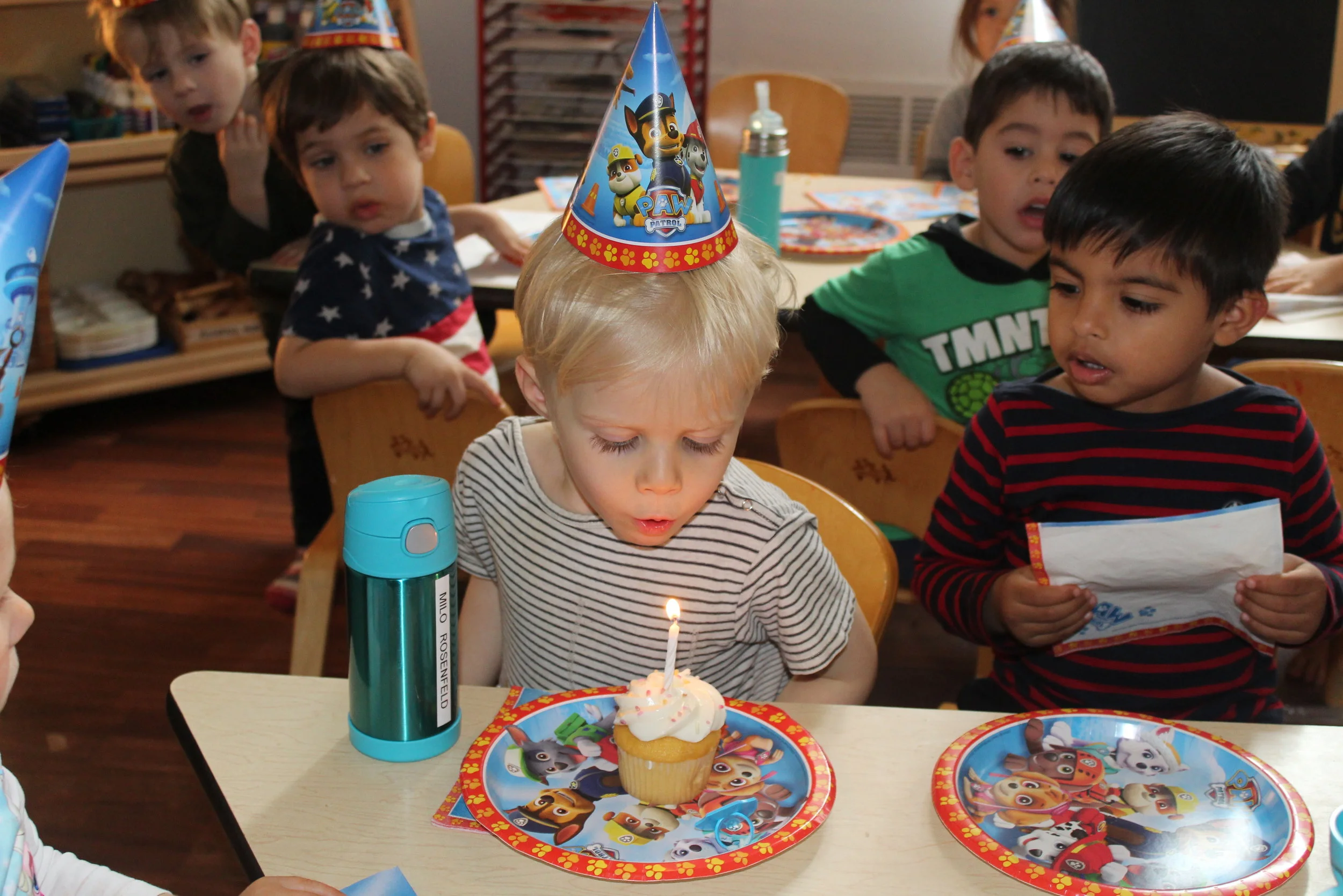 Friday was a busy day. We started the day with shared snack: our apple pie that we made with Diane yesterday. The children were busy playing in the dramatic play area: they played car, played with the babies, and acted out the role of construction worker. For art they painted with orange and red paint, and explored clay. After class, in gym, we set up an obstacle course and the children loved getting their energy out in a new way. At the end of the day we celebrated Milo's birthday. Him mom and grandmother came in to read From Head to Toe and Little Quack's Hide and Seek. Afterwards we had lunch and then celebrated with cupcakes. Happy Birthday Milo!