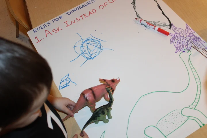 Dinosaurs have been popular in our room since the beginning of the year but as of a couple days ago some of the 3B children came into the classroom being dinosaurs, we knew right away that we should go deeper into that theme. We saw a passion and curiosity.