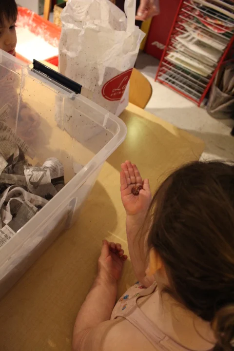 We are in the process of learning what kinds of table scraps and paper products they can eat in order to produce nutrient rich soil (worm poop). In addition to all of that happening at the up-close look we will learn about decomposition process along side.